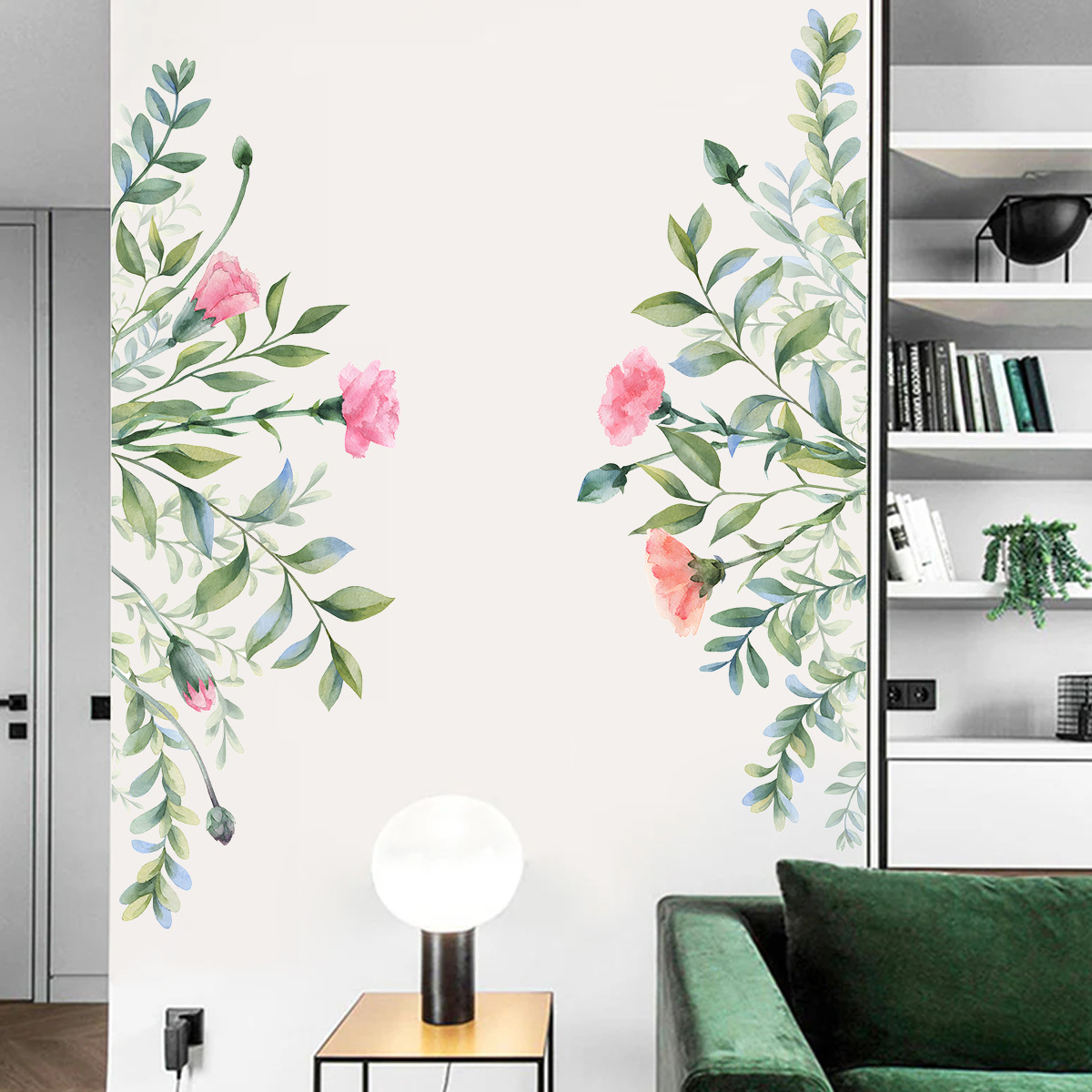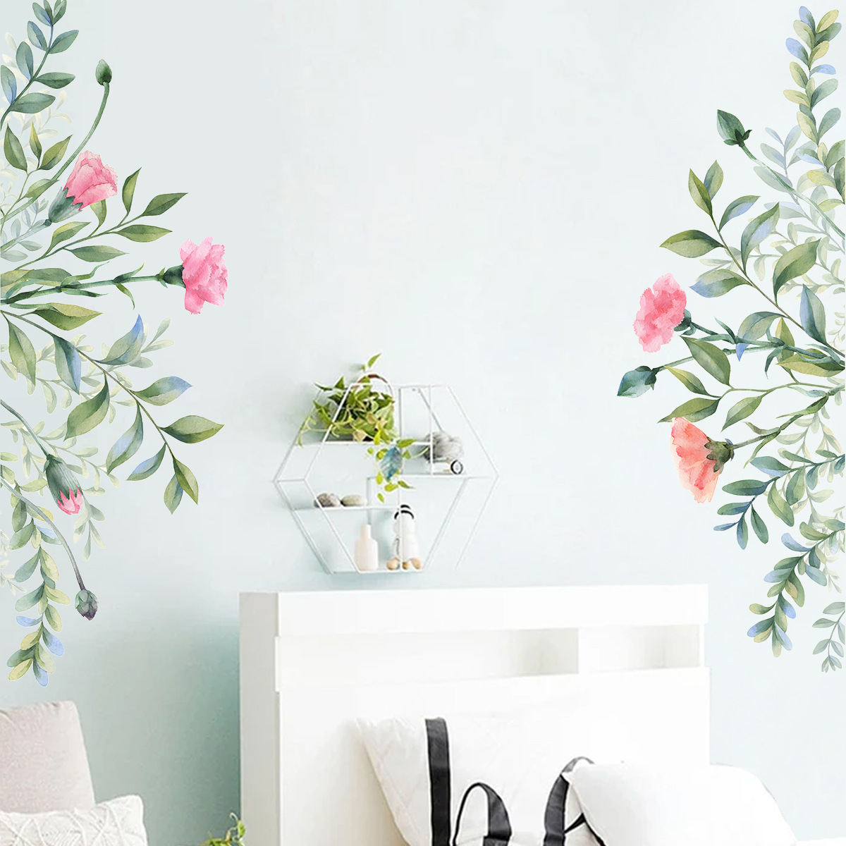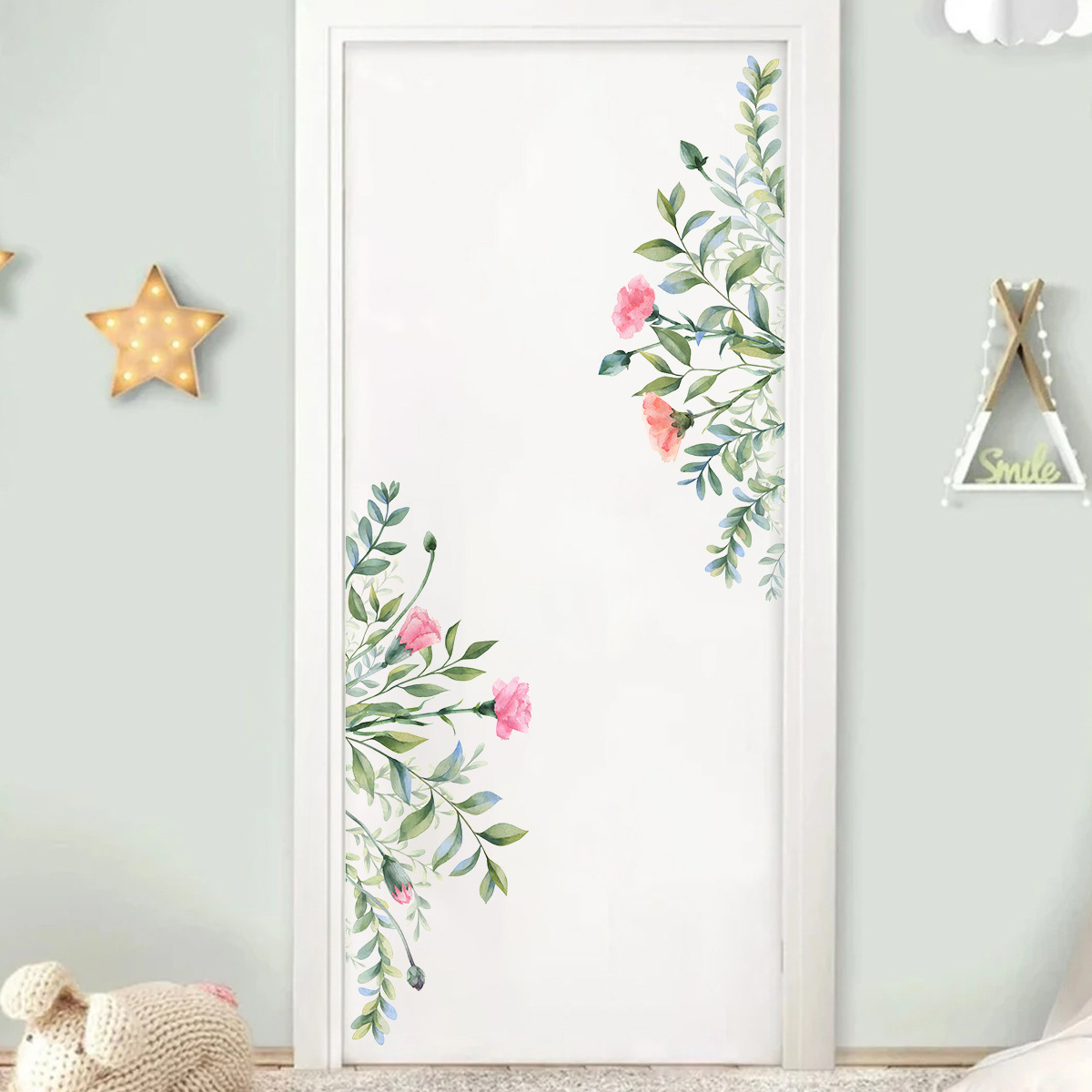 만화 수채화 식물 동백 꽃 문 스티커 자기 접착 벽 스티커 목가적 인 스타일 방 거실 장식 스티커 BR0997E스토어 가기