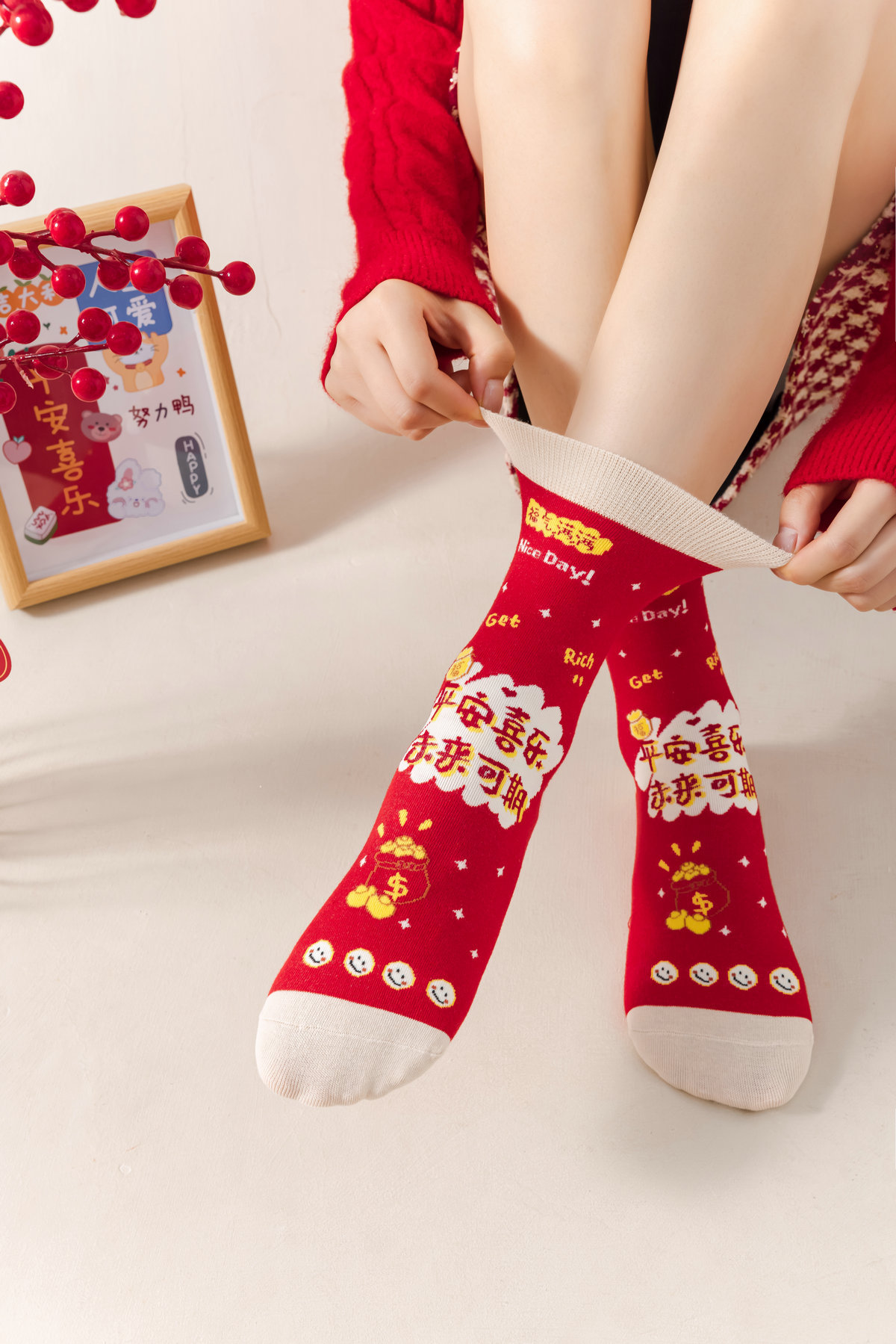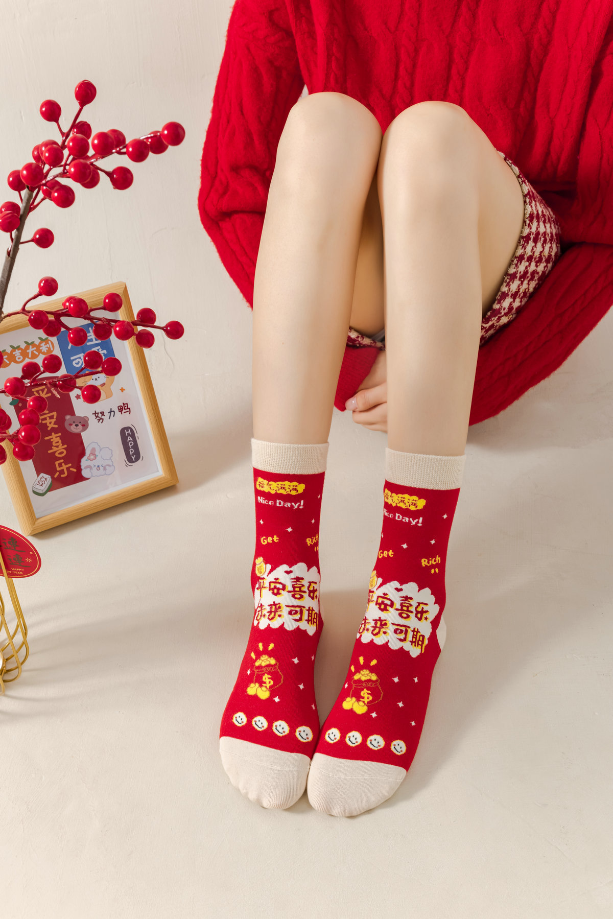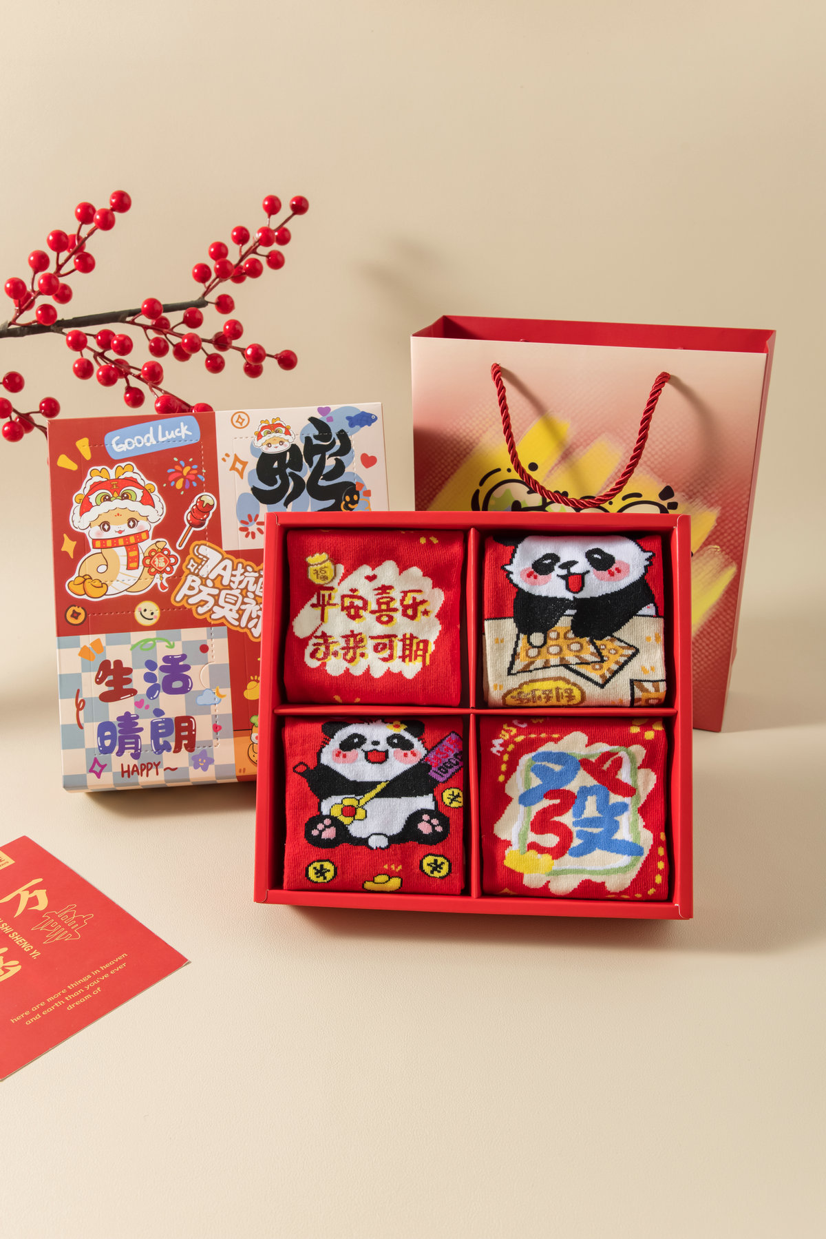 7A 항균 탈취제 양말 올해의 레드 양말 여성 선물 상자 뱀 크리스마스 굿 럭 스타킹의 가을과 겨울 년