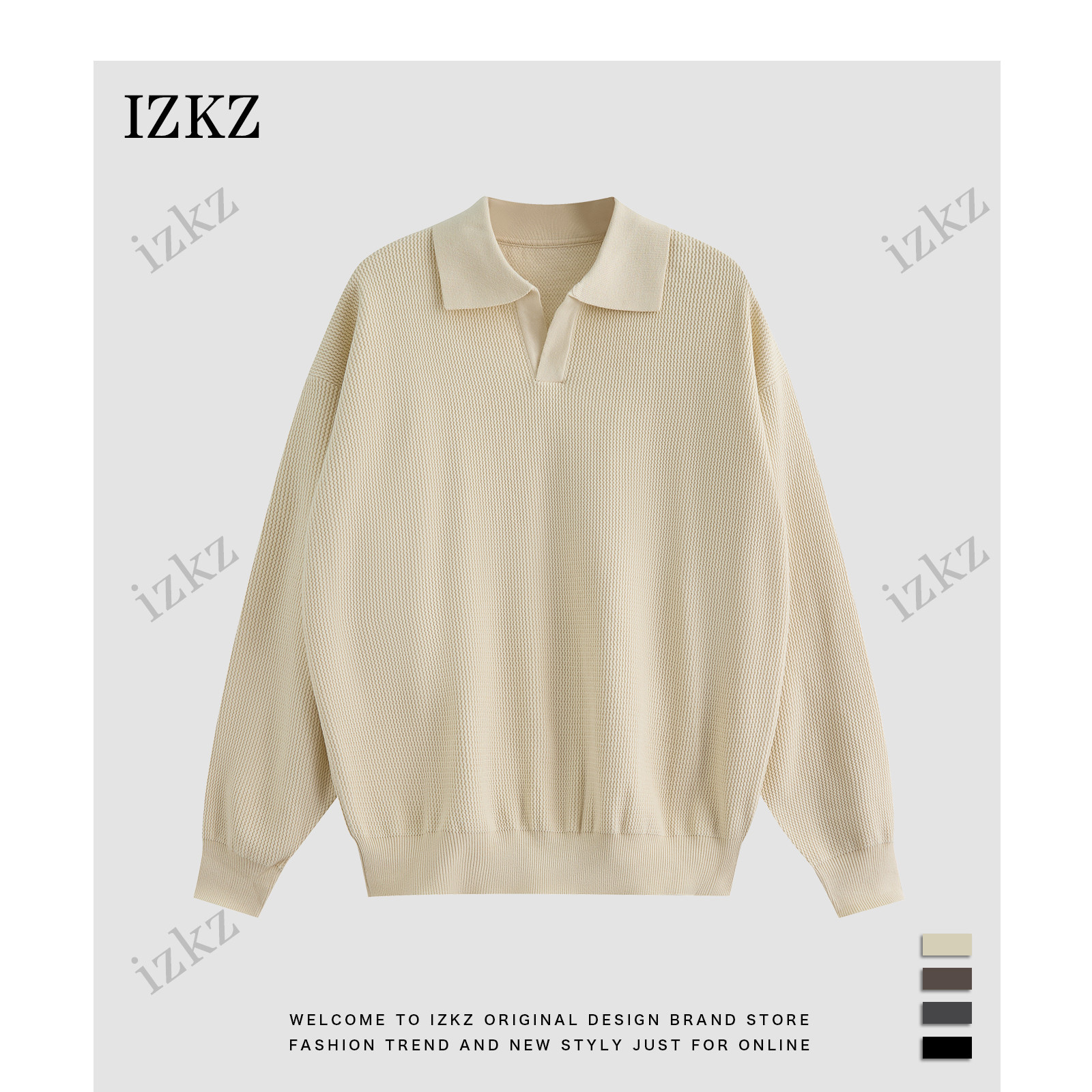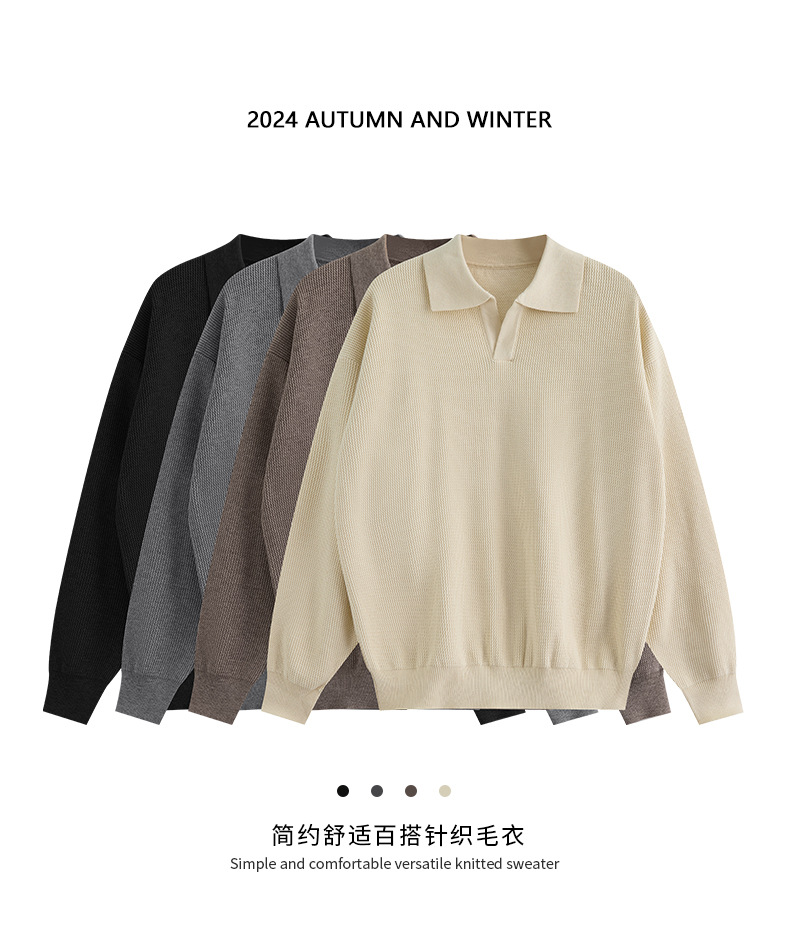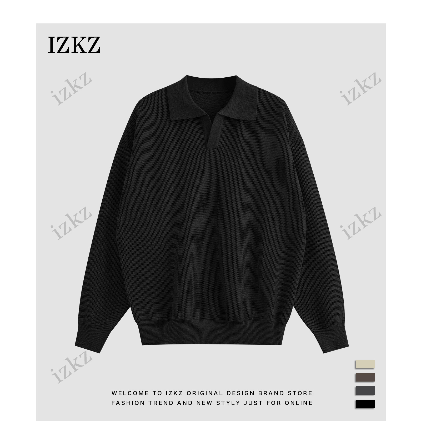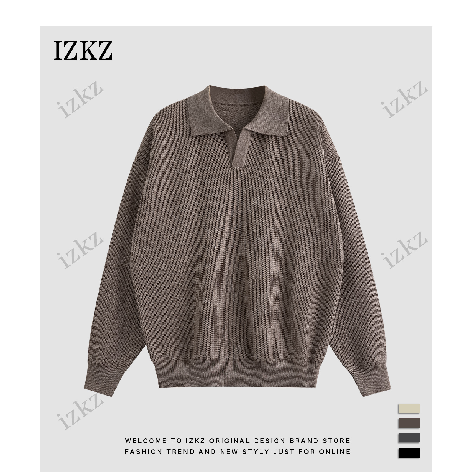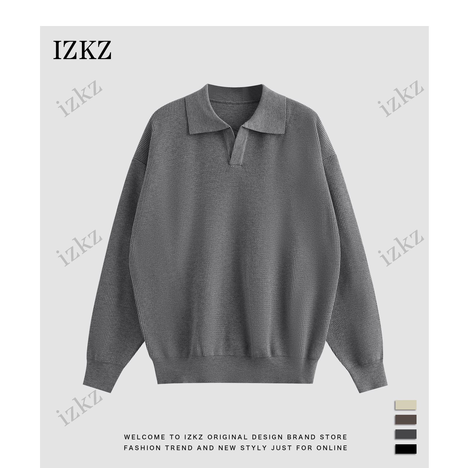 남자 긴팔 니트 스웨터 가을과 겨울 새 옷깃 풀오버 고급 간단한 스웨터 느슨한 게으른 남자 탑