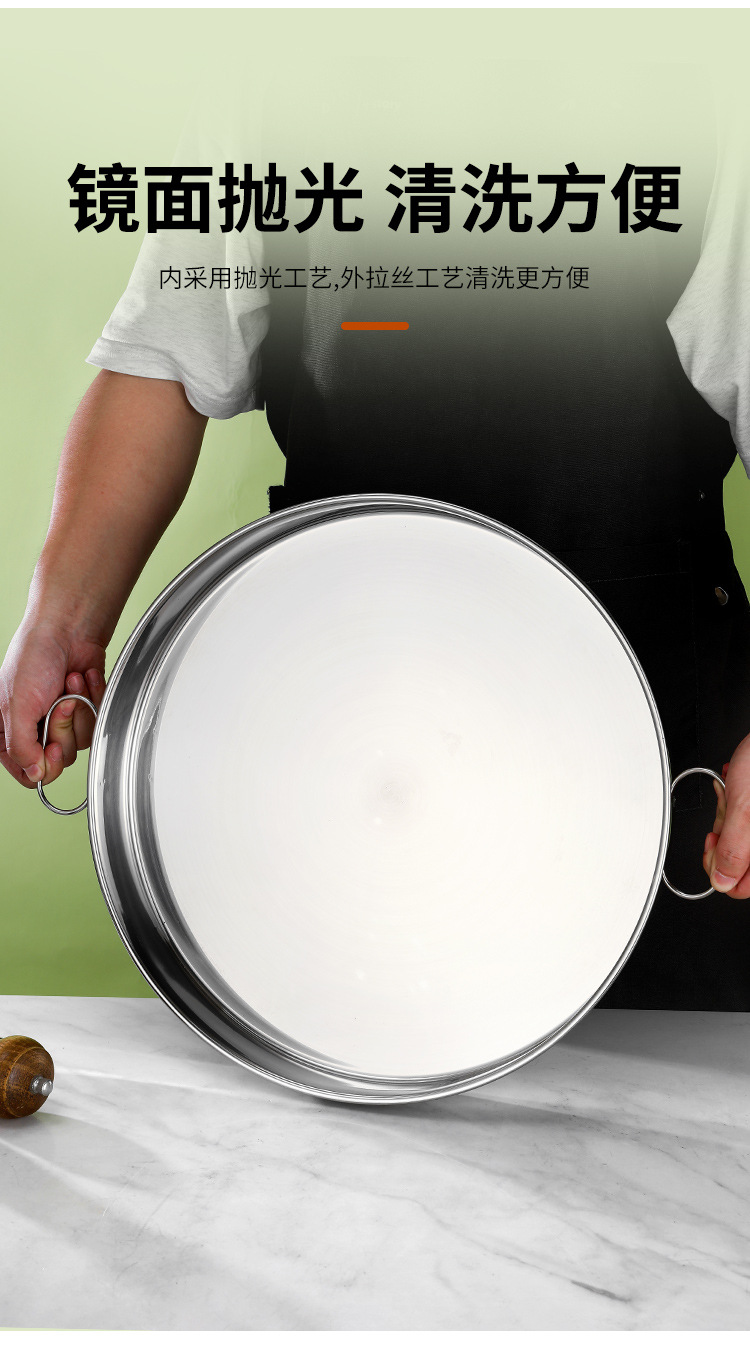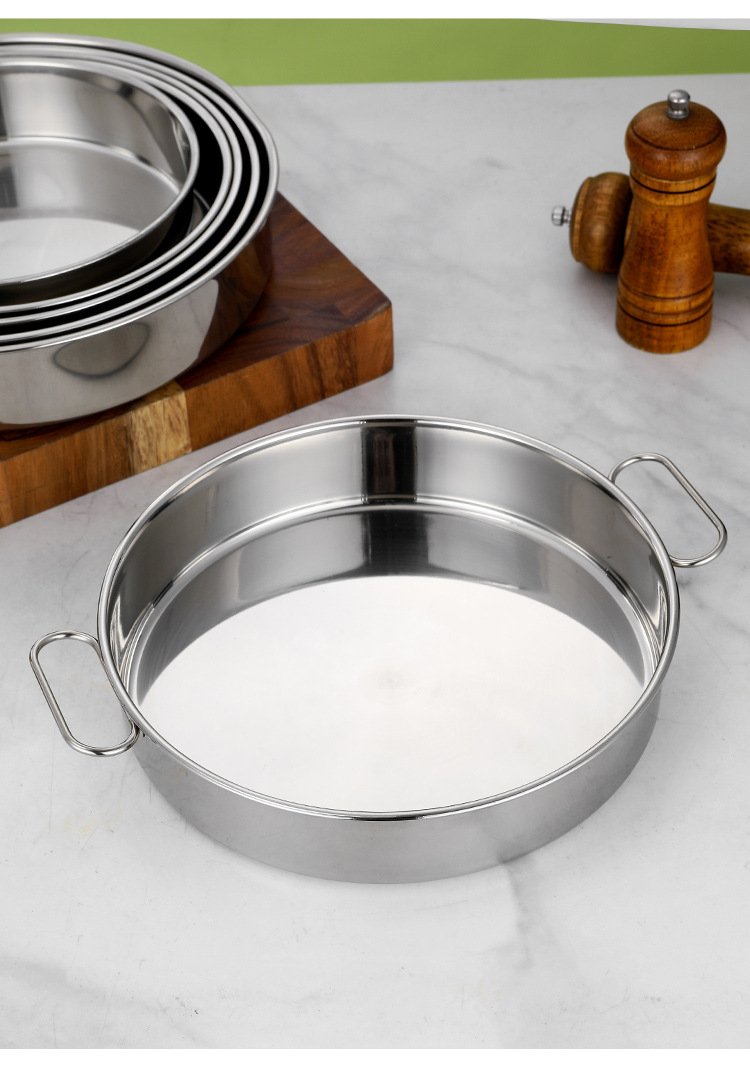 304 스테인레스 스틸 플랫 하단 찐 케이크 플레이트 상업용 핸들 쿨 스킨 공 케이크 플레이트 플랫 하단 트레이 딥 플레이트 디스크 플레이트스토어 가기