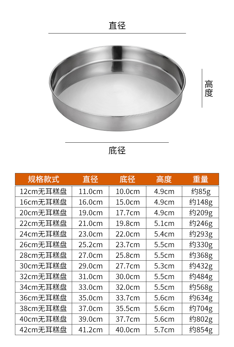 304 스테인레스 스틸 플랫 하단 찐 케이크 플레이트 상업용 핸들 쿨 스킨 공 케이크 플레이트 플랫 하단 트레이 딥 플레이트 디스크 플레이트