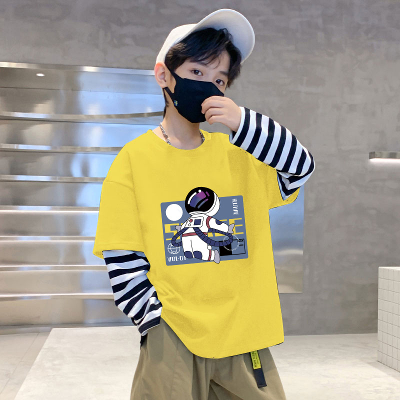 G2088 # 소년의 긴 소매 티셔츠 순면 봄과 가을 어린이 백업 셔츠 2 피스 캐주얼 탑 티셔츠 타이드