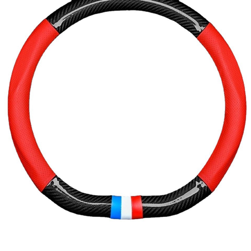 사계절용 스티어링 휠 커버, 광택 카본 파이버 핸들 커버, 초박형 통기성 미끄럼 방지, 남녀 공용, 원피스 배송