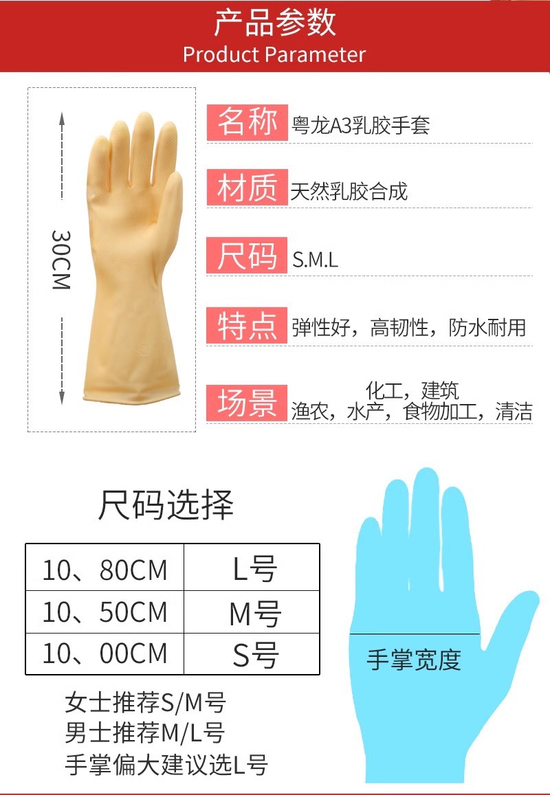 광동 용롱 A3 두꺼운 라텍스 장갑, 소가죽 고무, 산 및 알칼리 저항, 산업용 설거지, 가정용 주방, 노동 보호 라텍스 장갑스토어 가기