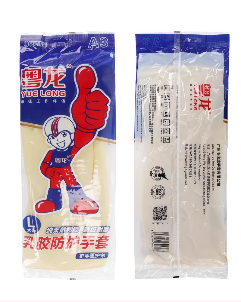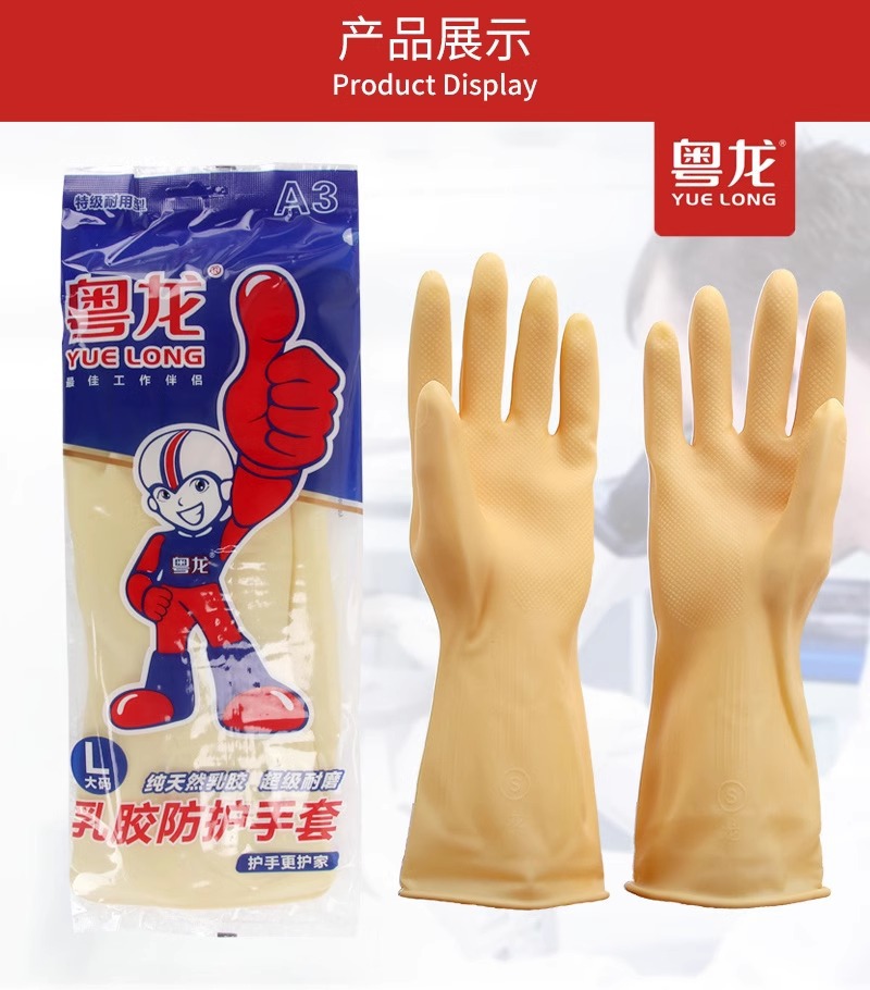 광동 용롱 A3 두꺼운 라텍스 장갑, 소가죽 고무, 산 및 알칼리 저항, 산업용 설거지, 가정용 주방, 노동 보호 라텍스 장갑