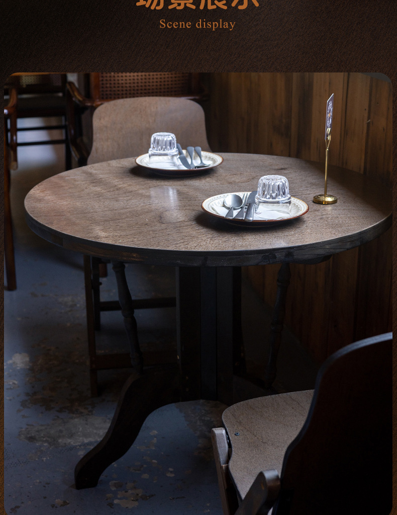 빈티지 솔리드 우드 아메리칸 스타일 큰 라운드 다이닝 테이블 접이식 의자 홈 거실 발코니 다이닝 테이블 커피 테이블 다이닝 커피 테이블