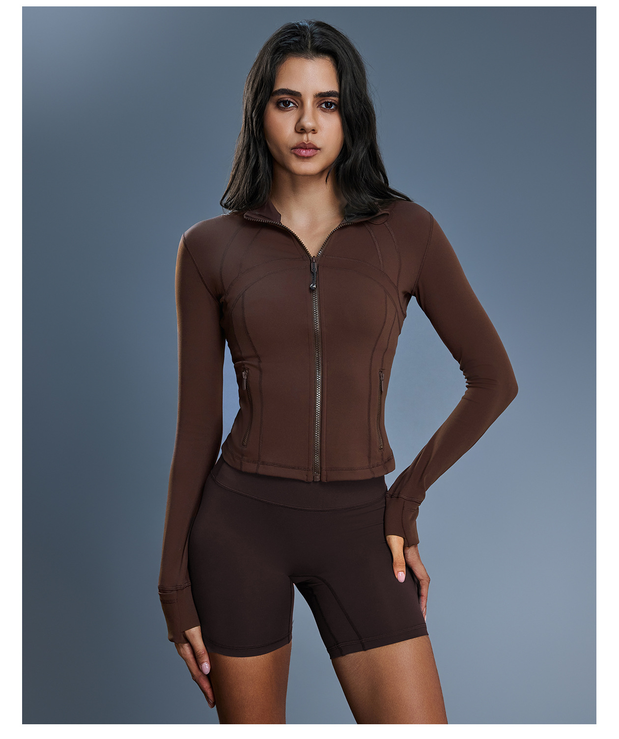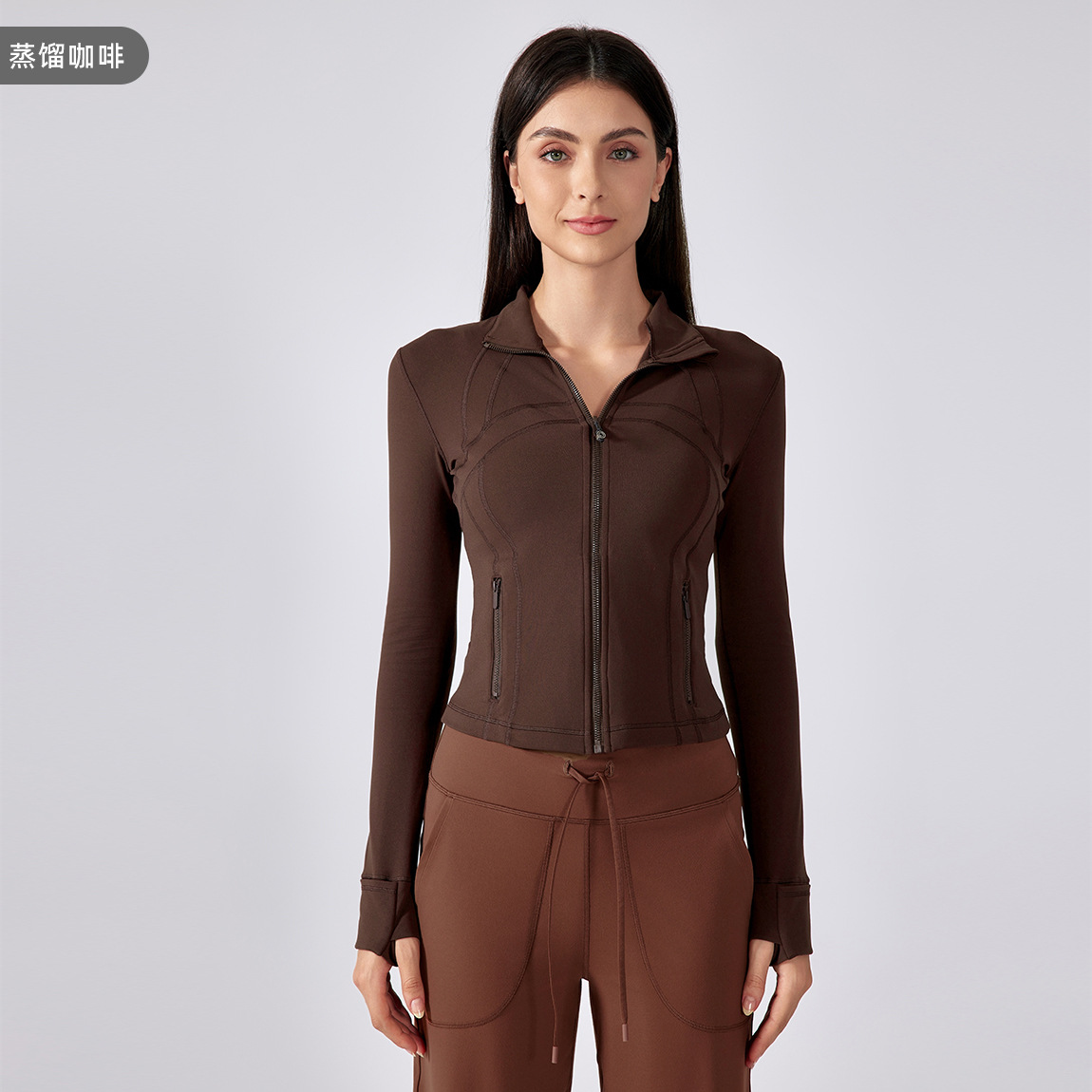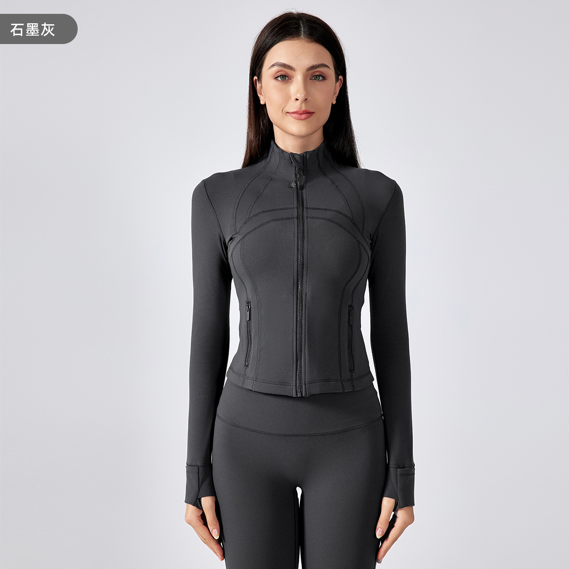 가을과 겨울 하이 엔드 요가 세트 코트 여성용 짧은 슬림 핏 슬리밍 스포츠 긴팔 러닝 피트니스 세트 DAW177스토어 가기