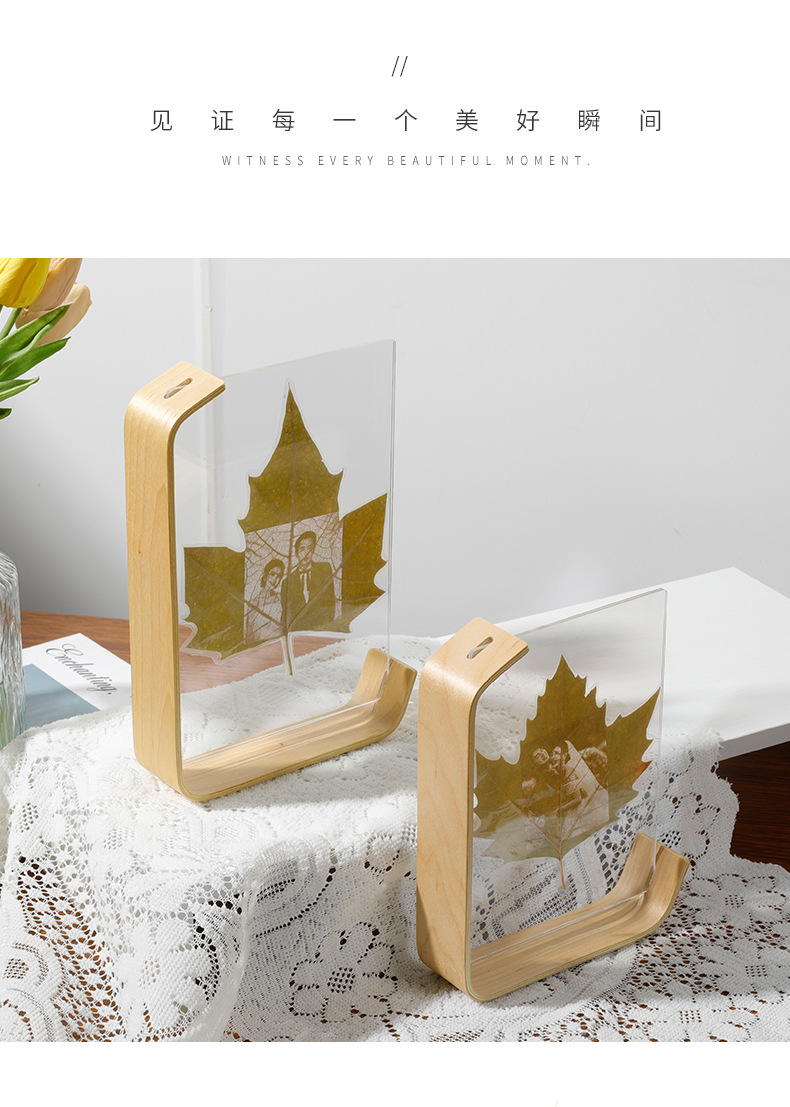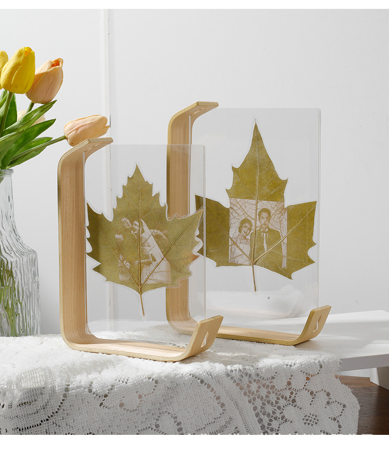 잎 조각 사진 프레임 양면 투명 아크릴 종이 컷 그림 프레임 테이블 단단한 나무 데스크탑 식물 표본 공장 도매