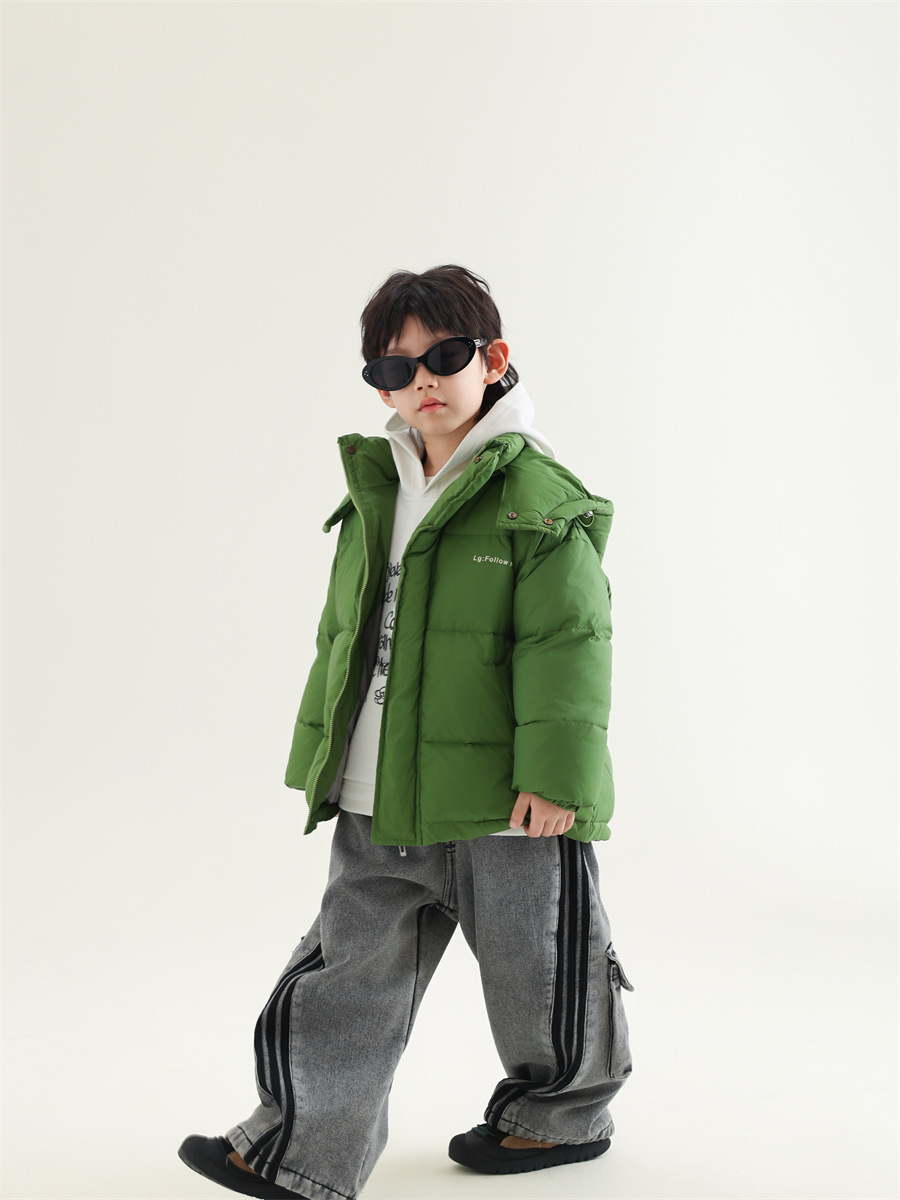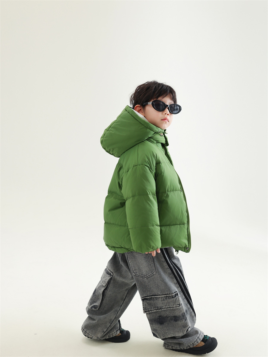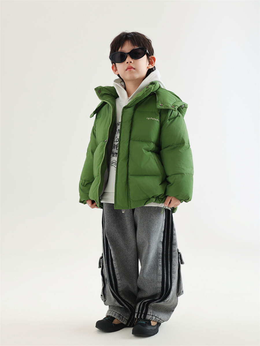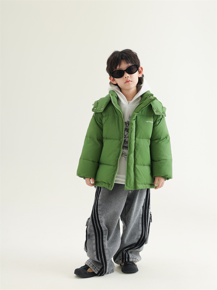 면소재 겨울 보온 화이트 덕다운 재킷 스키복 남아용 한국 스타일 아동복 2025 신상 브레드 다운 재킷스토어 가기