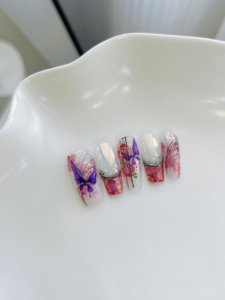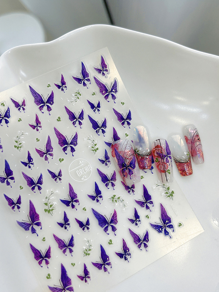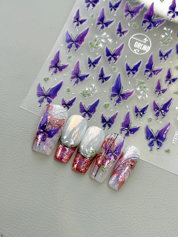 YITU 개미 그림 보라색 액체 나비 네일 아트 스티커 접착 스테레오 네일 장식 스티커 YT3791
