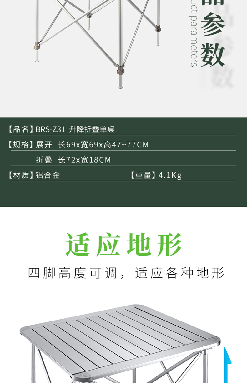 BRS-Z31 야외 접이식 테이블 캠핑 피크닉 바베큐 테이블 휴대용 높이 조절 알루미늄 에그롤 테이블
