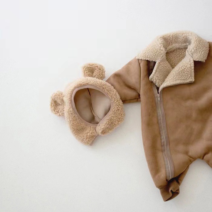 한국식 겨울 아기 아동복 아기 원피스 벨벳 등반 세트 두꺼운 점프 수트 옷깃 아기 기모 등반 세트스토어 가기