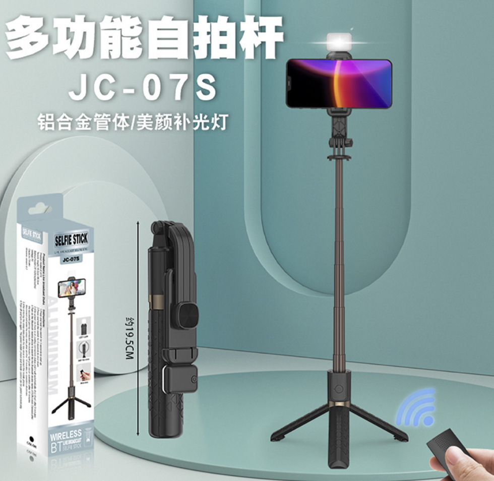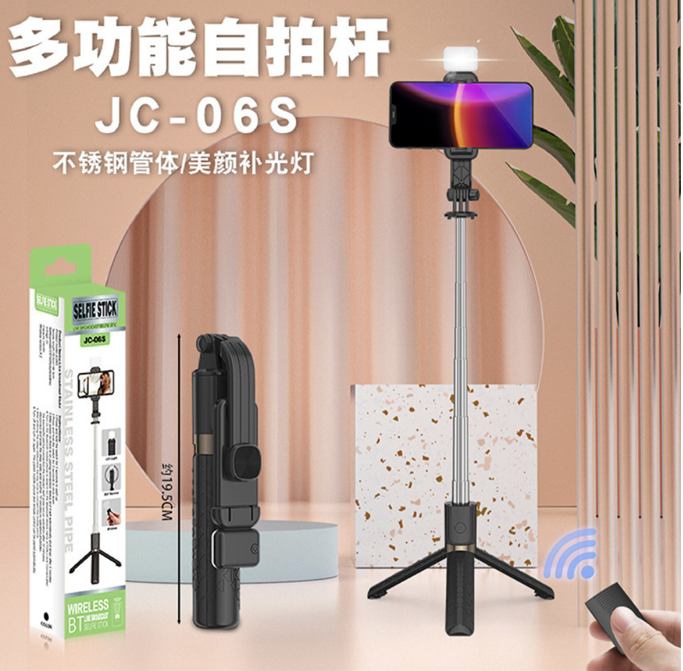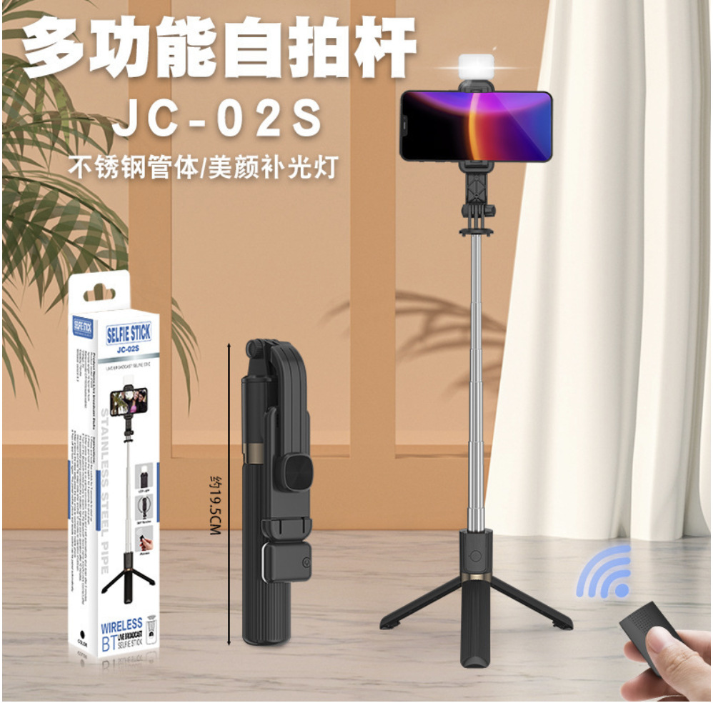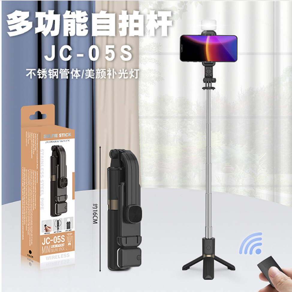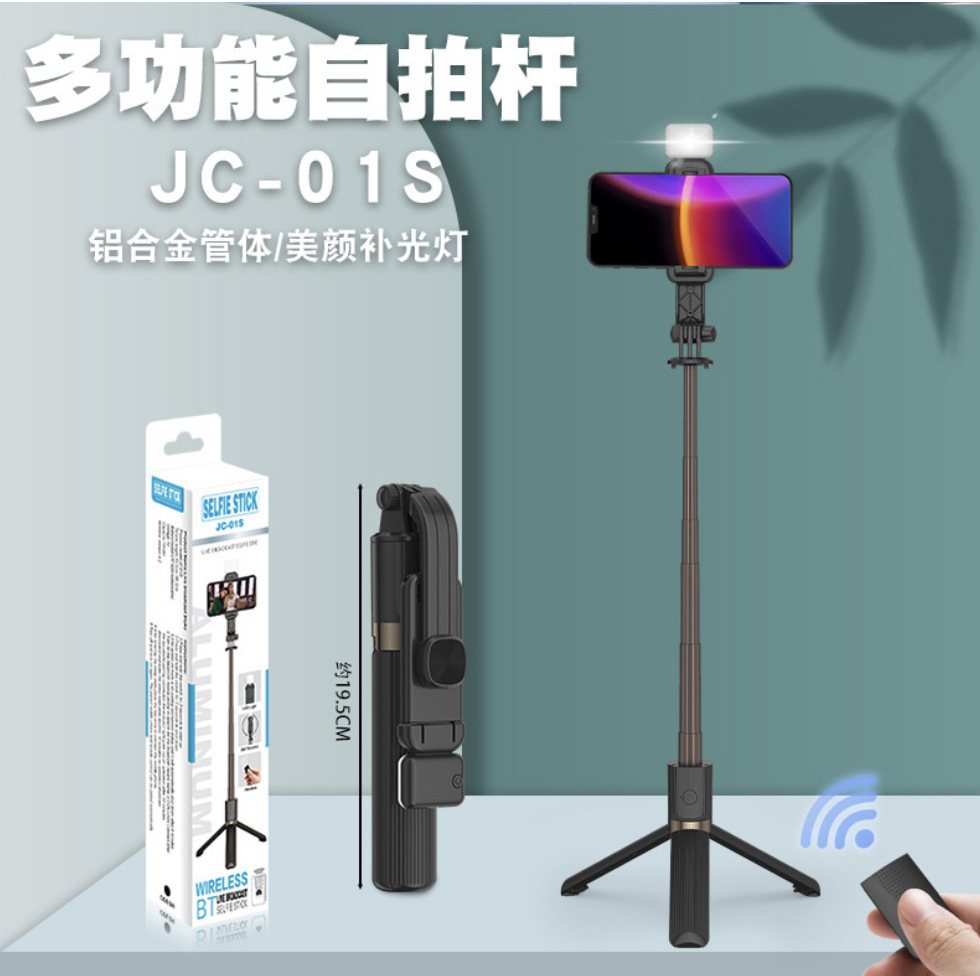JC 시리즈 블루투스 셀카 스틱 휴대 전화 라이트 채우기 셀카 유물 범용 미니 삼각대 다기능 카메라 스틱