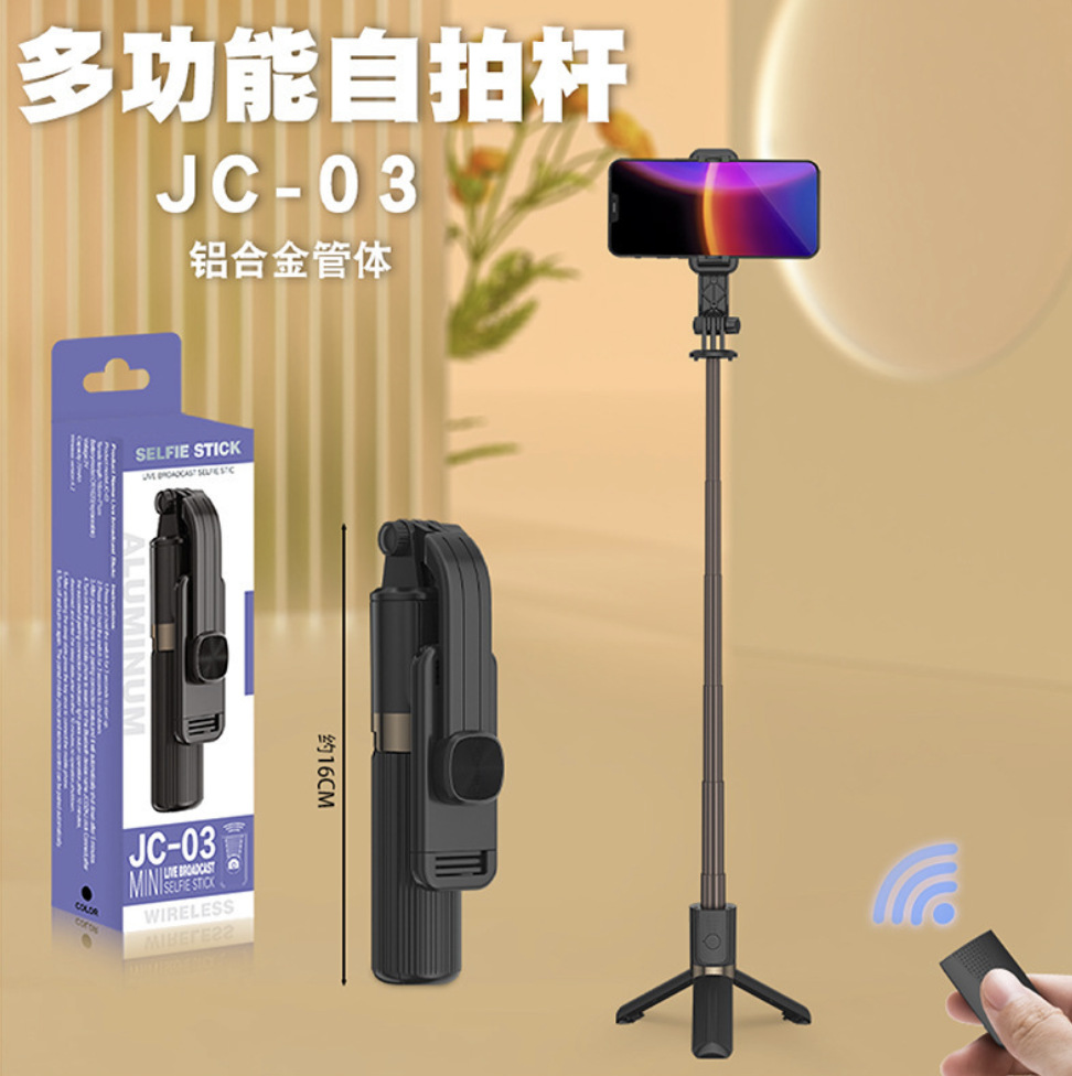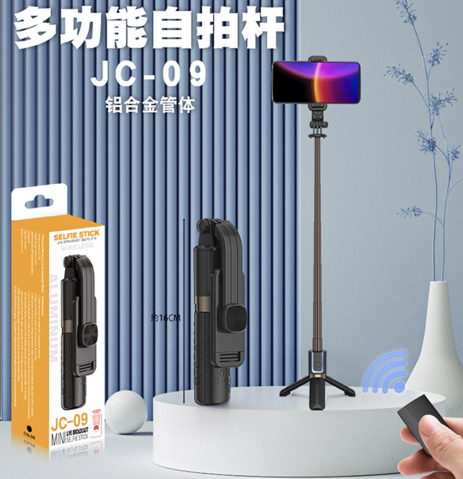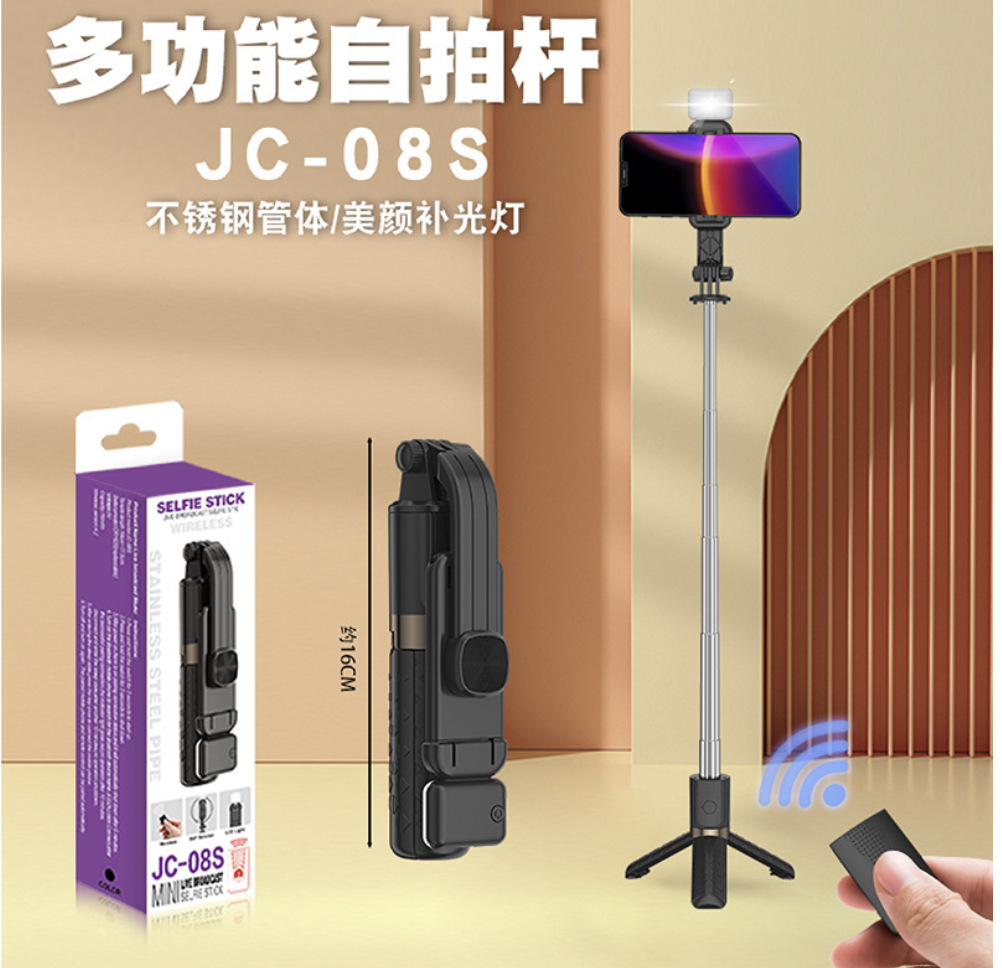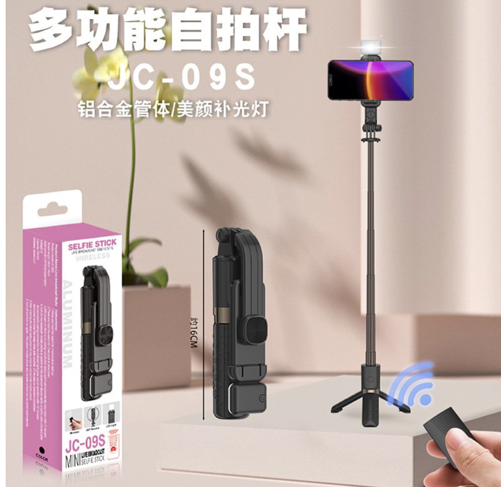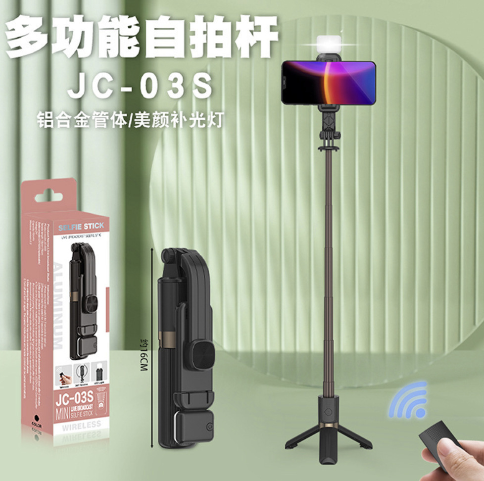 JC 시리즈 블루투스 셀카 스틱 휴대 전화 라이트 채우기 셀카 유물 범용 미니 삼각대 다기능 카메라 스틱