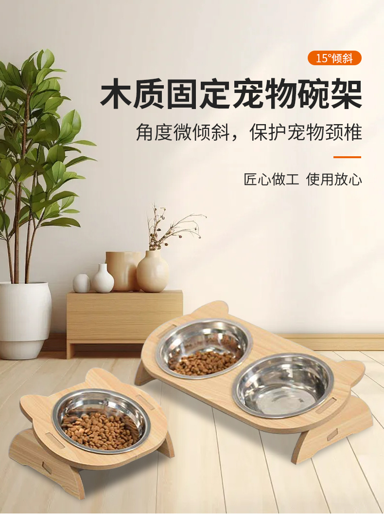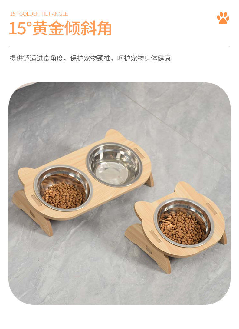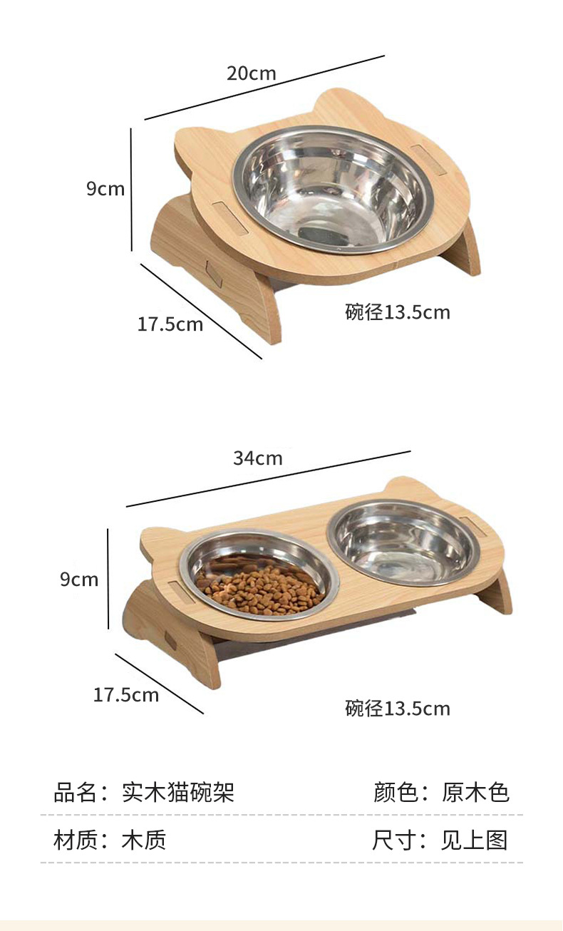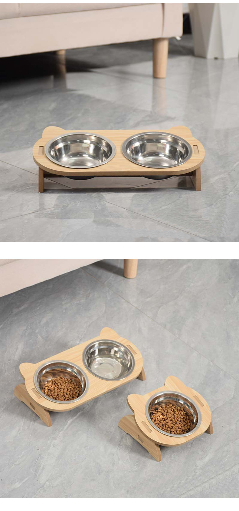 고양이 음식 분지 고양이 그릇 음식 분지 안티 노크 목 보호 더블 그릇 높은 다리 고양이 목 보호 작은 개 단단한 나무 음식 분지