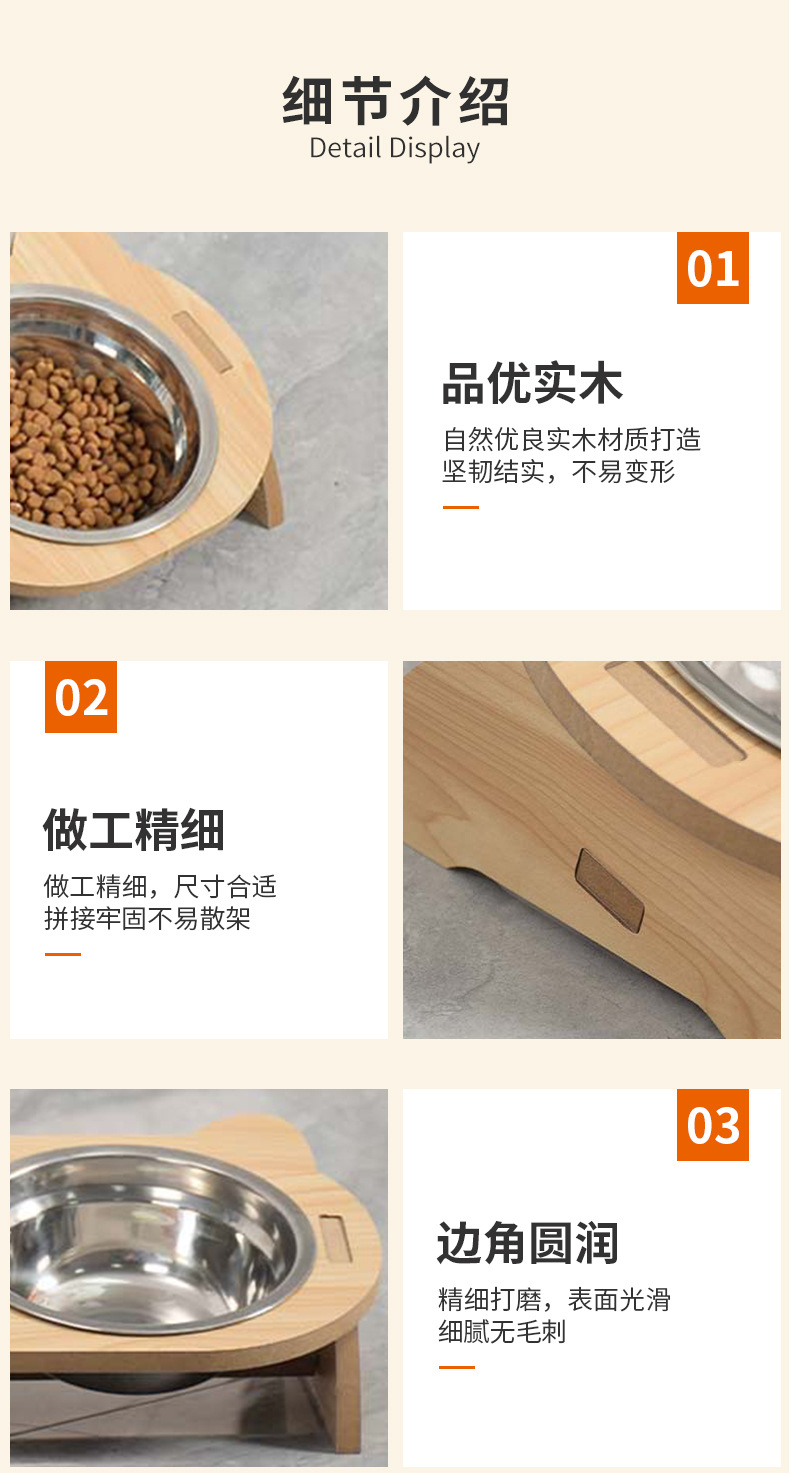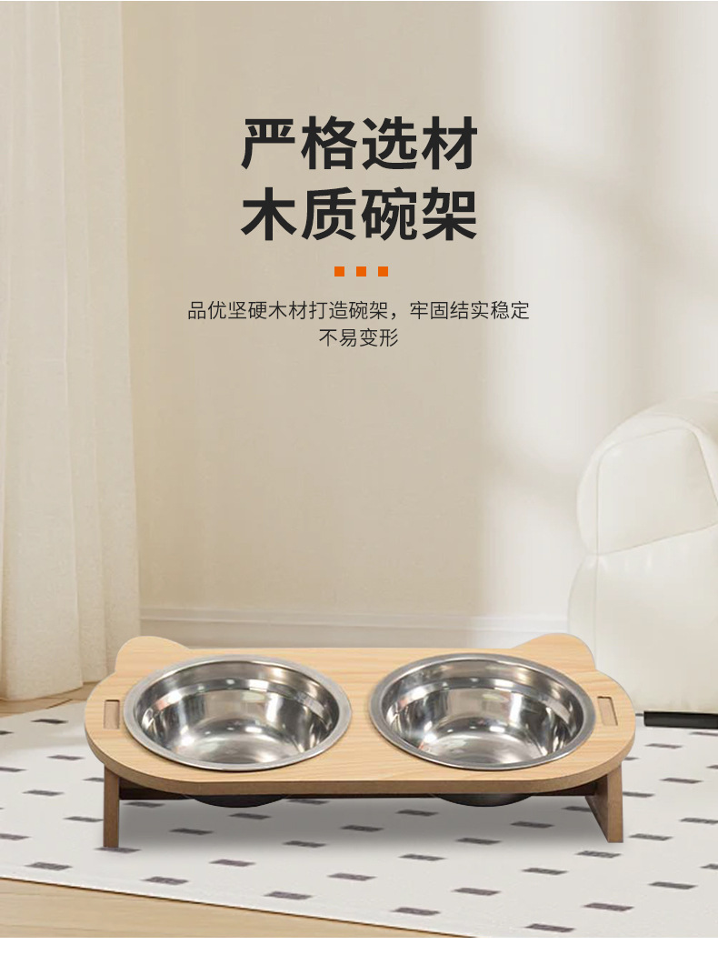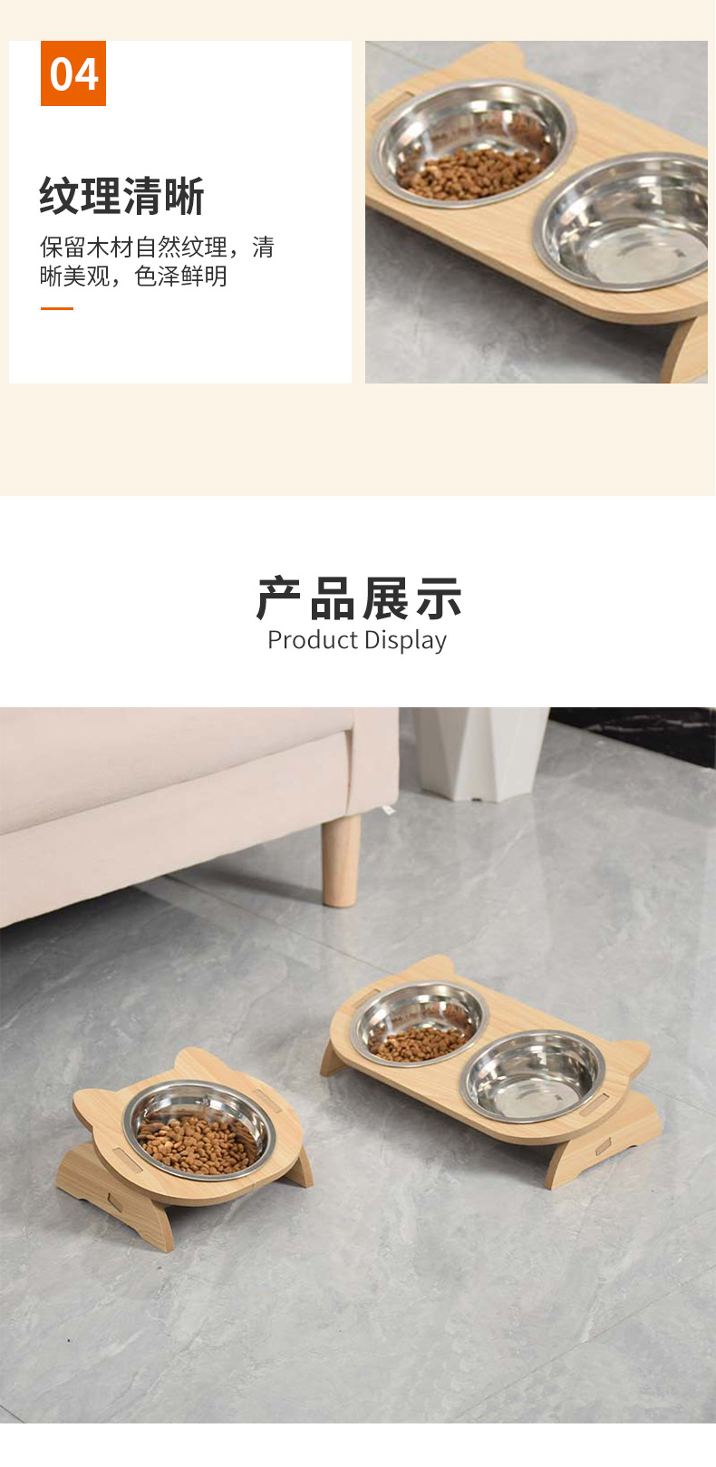 고양이 음식 분지 고양이 그릇 음식 분지 안티 노크 목 보호 더블 그릇 높은 다리 고양이 목 보호 작은 개 단단한 나무 음식 분지