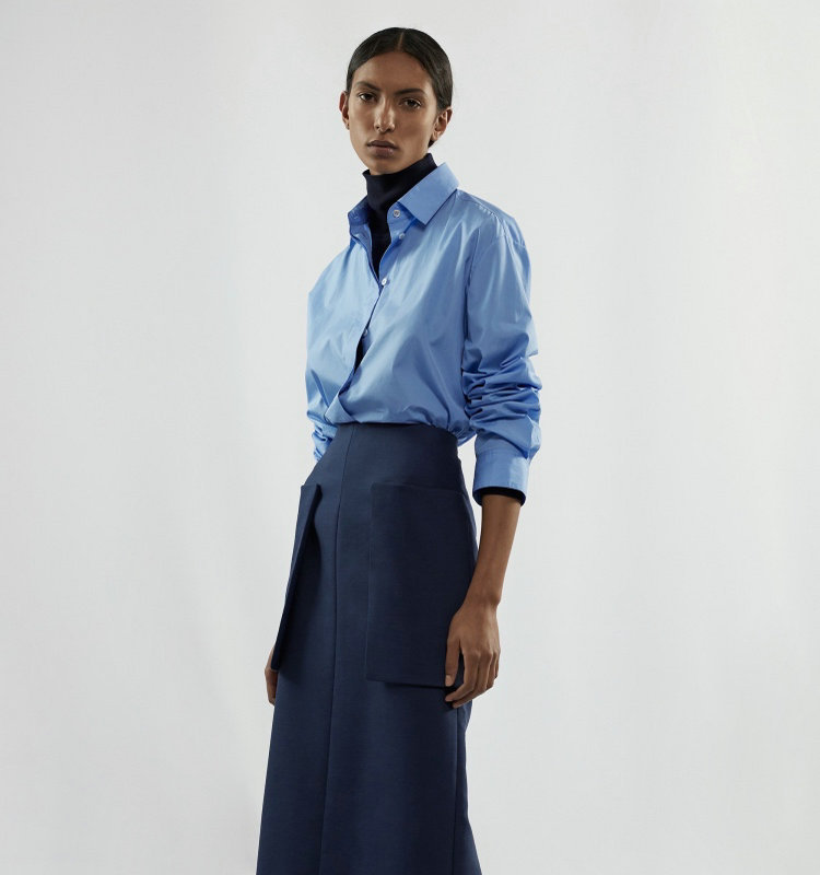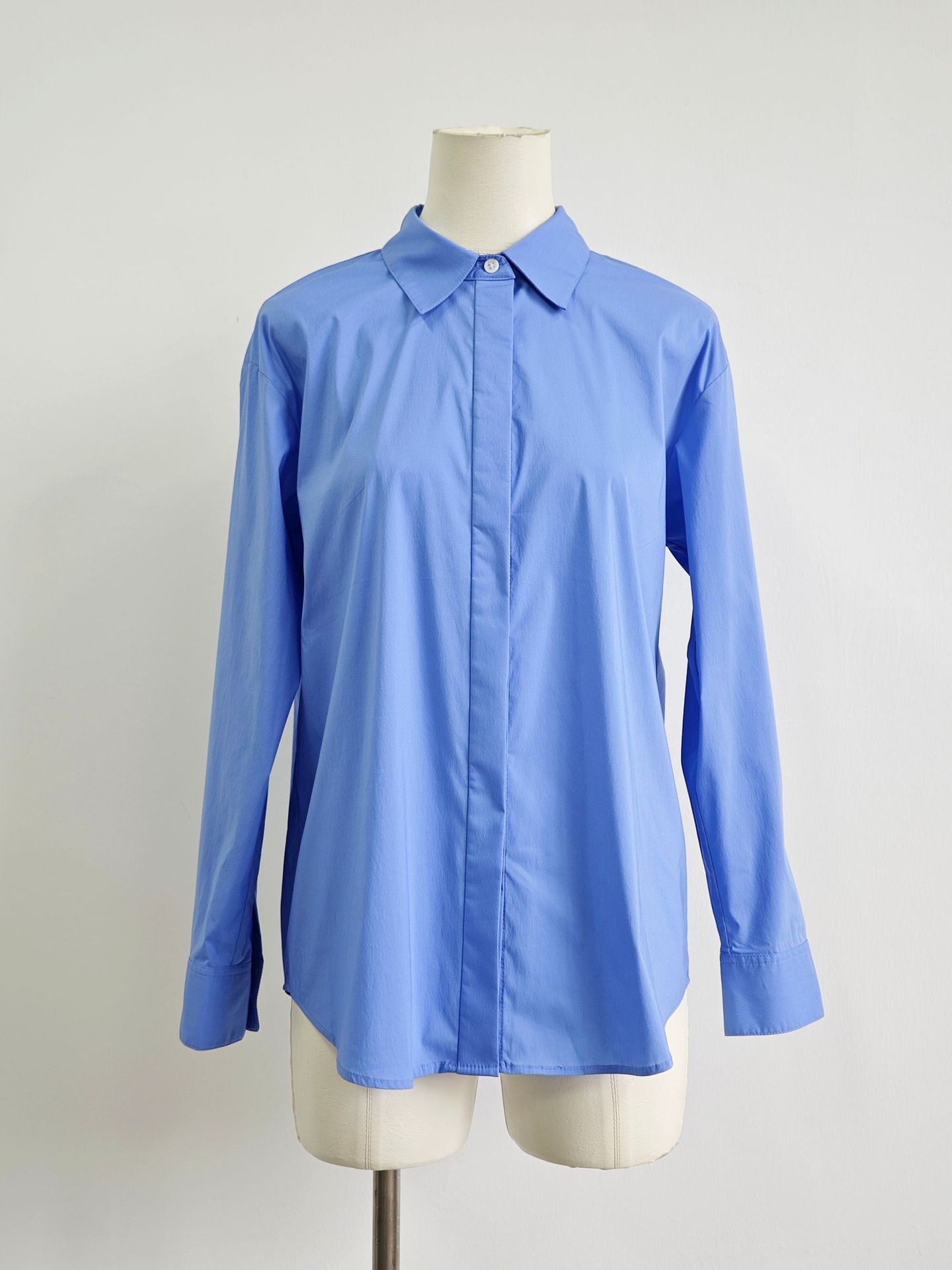 로우 스타일 여성 가을 셔츠, 고급스러운 디자인, 독특하고 다재다능한 디자인, 심플한 블루 셔츠스토어 가기