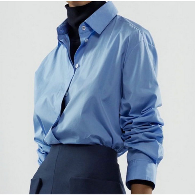 로우 스타일 여성 가을 셔츠, 고급스러운 디자인, 독특하고 다재다능한 디자인, 심플한 블루 셔츠