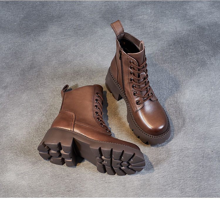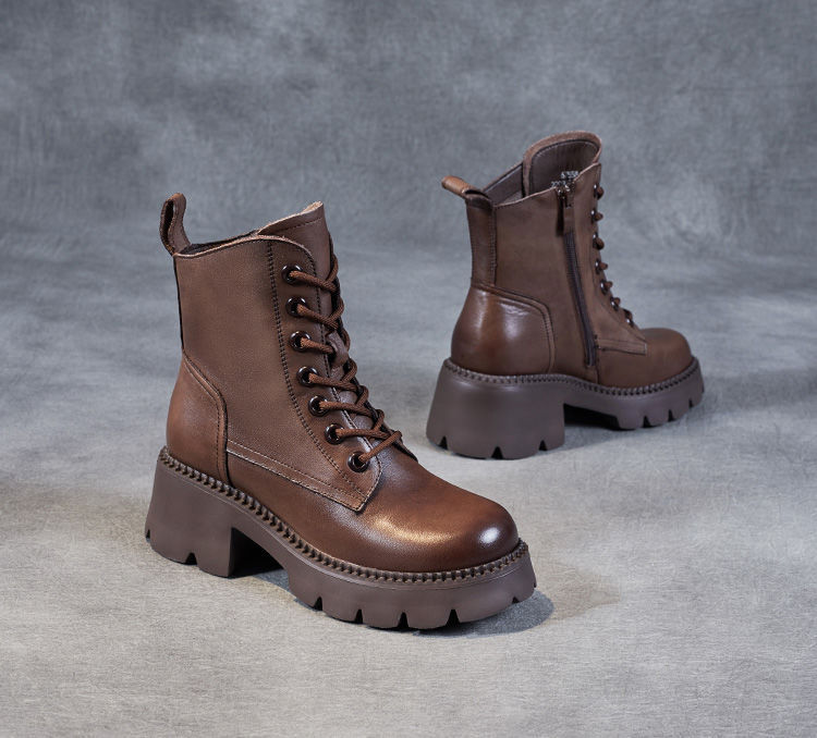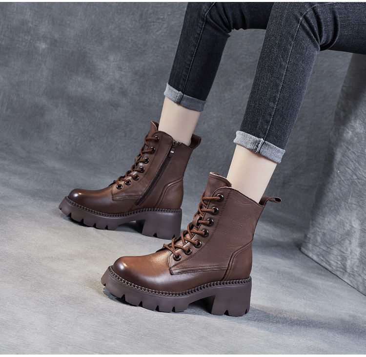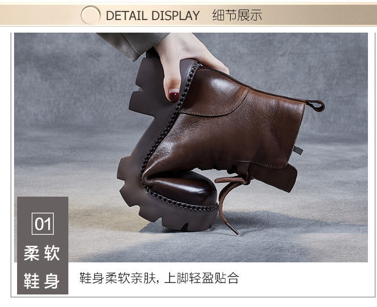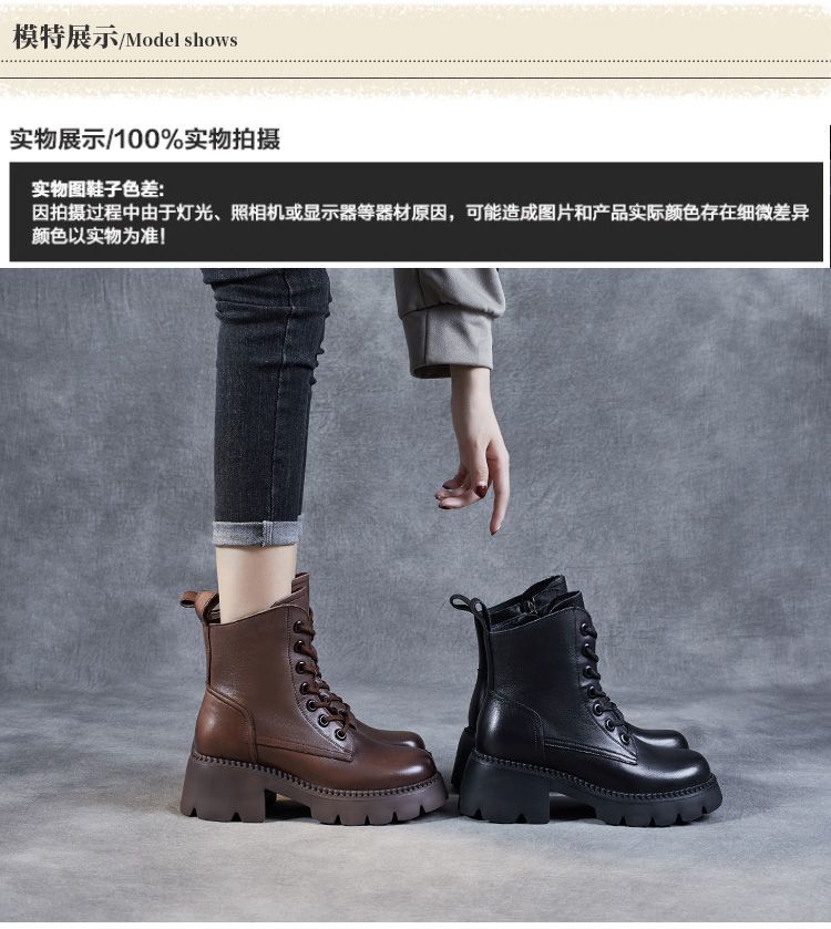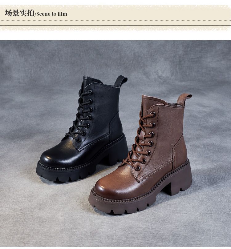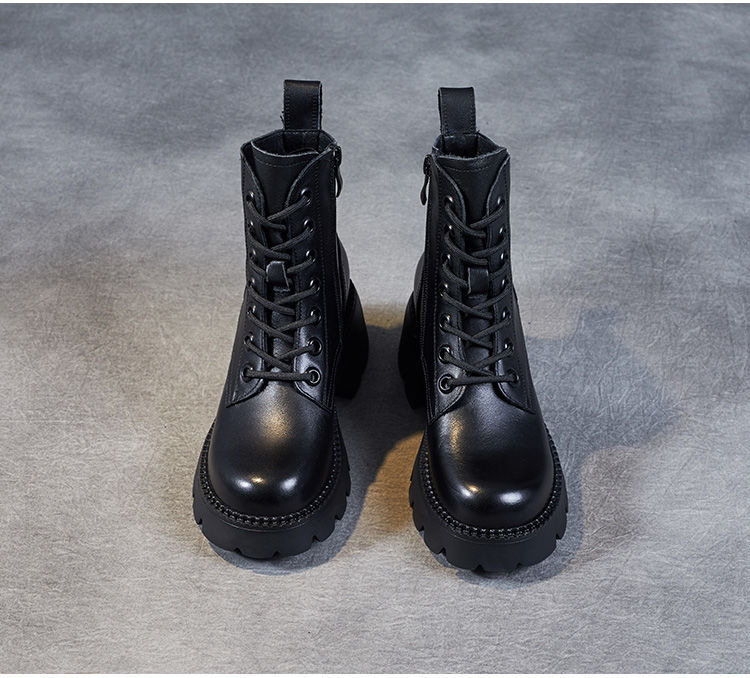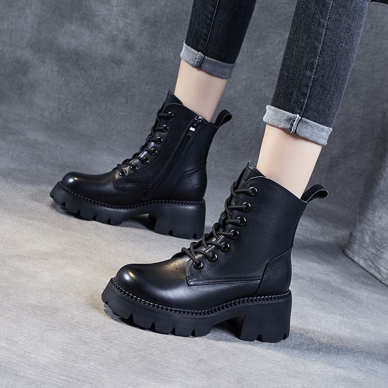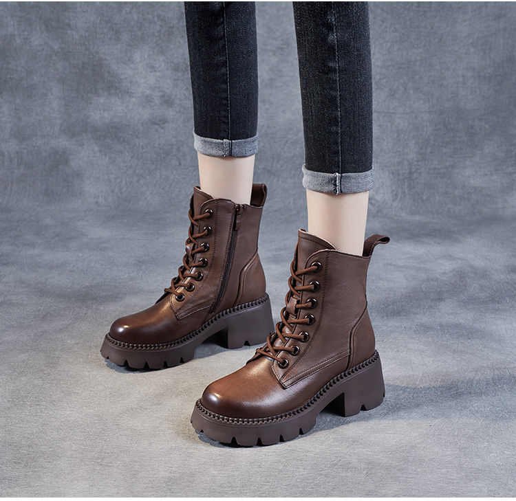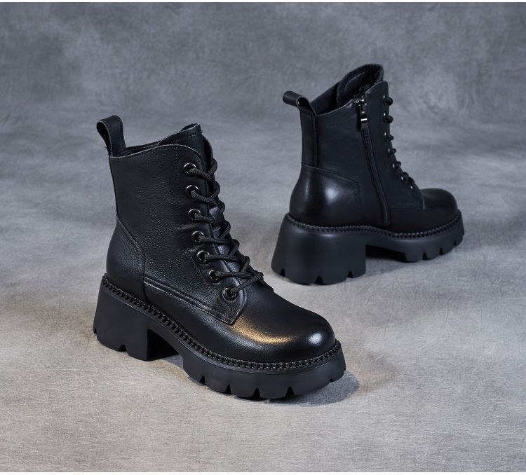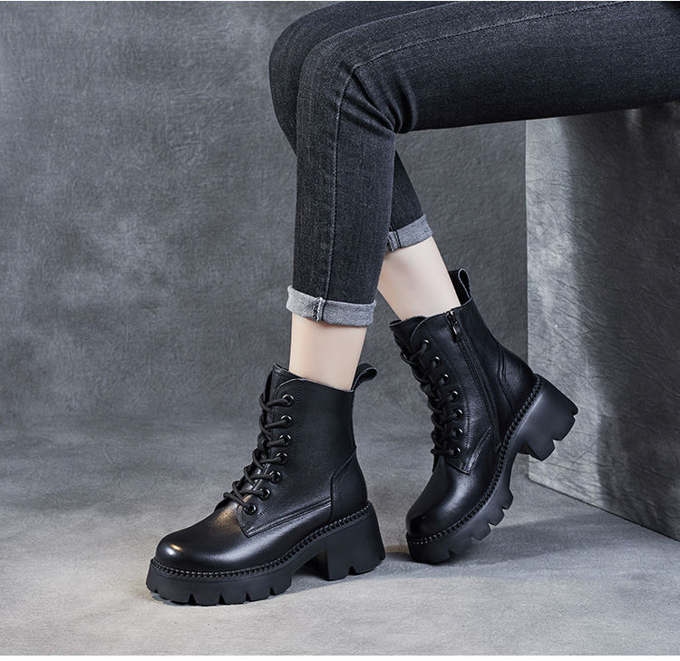 부츠 여성용 부드러운 가죽 2024 가을 및 겨울 새 코튼 신발 두꺼운 단독 중간 배럴 마틴 부츠 작은 높이 부츠 하이힐