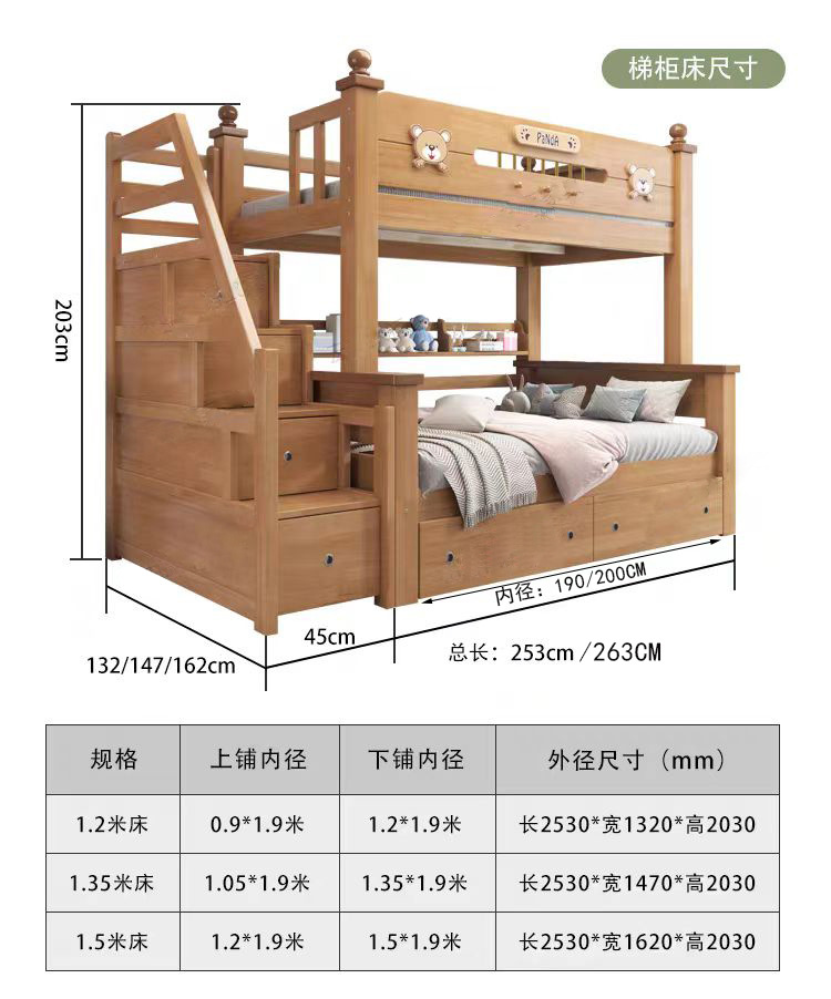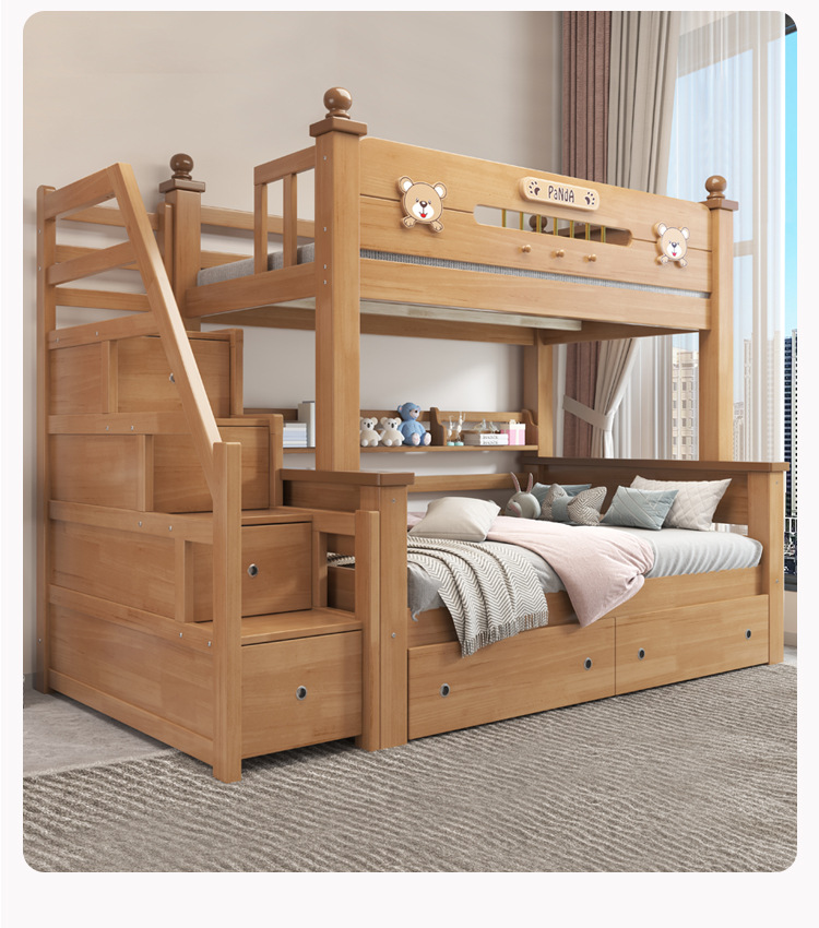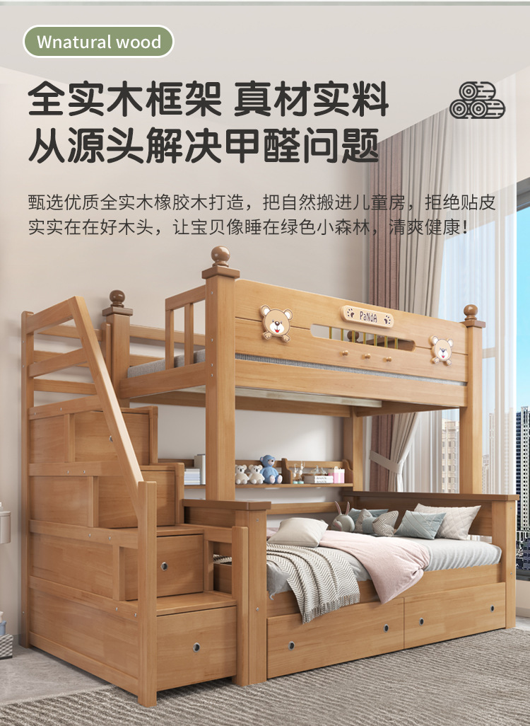 풀 솔리드 우드 더블 레이어 오크 엄마와 아이 침대 상하 이층 침대 어린이 높고 낮은 작은 아파트 더블 2 층 청소년