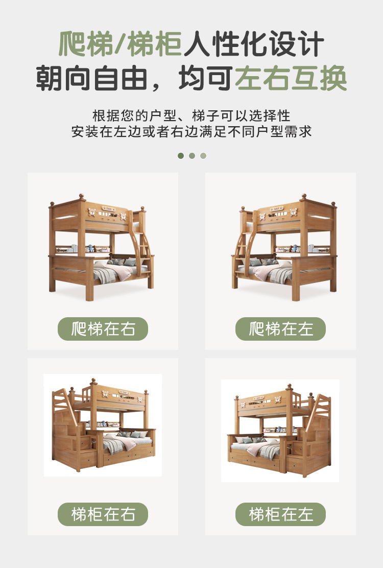 풀 솔리드 우드 더블 레이어 오크 엄마와 아이 침대 상하 이층 침대 어린이 높고 낮은 작은 아파트 더블 2 층 청소년스토어 가기