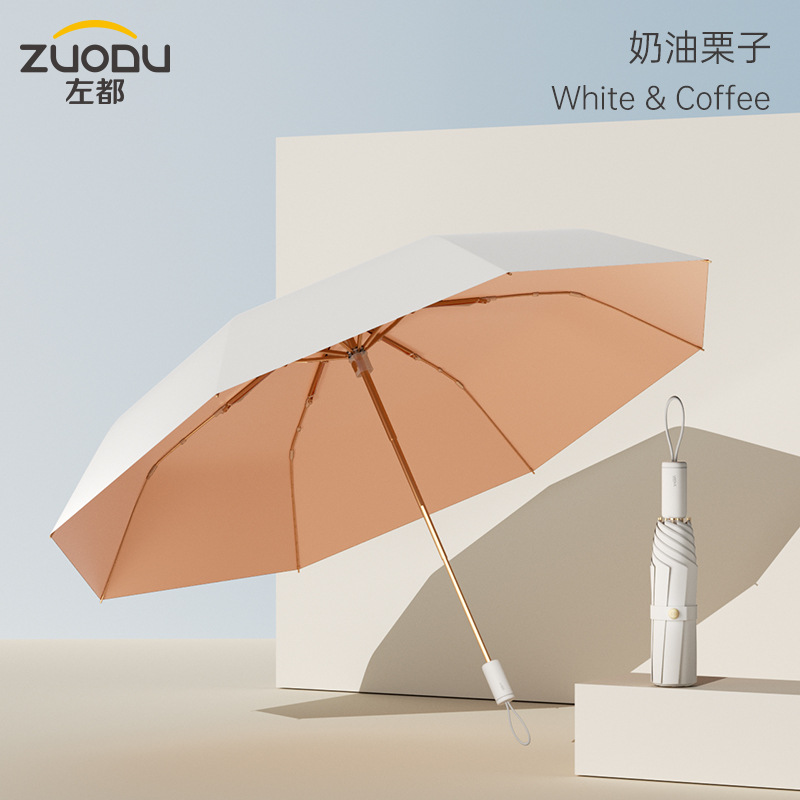 Zuodu 컬러 접착제 햇빛 우산 햇빛 및 비 이중 사용 여성 태양 보호 UV 보호 소형 휴대용 5 배 우산 태양 우산