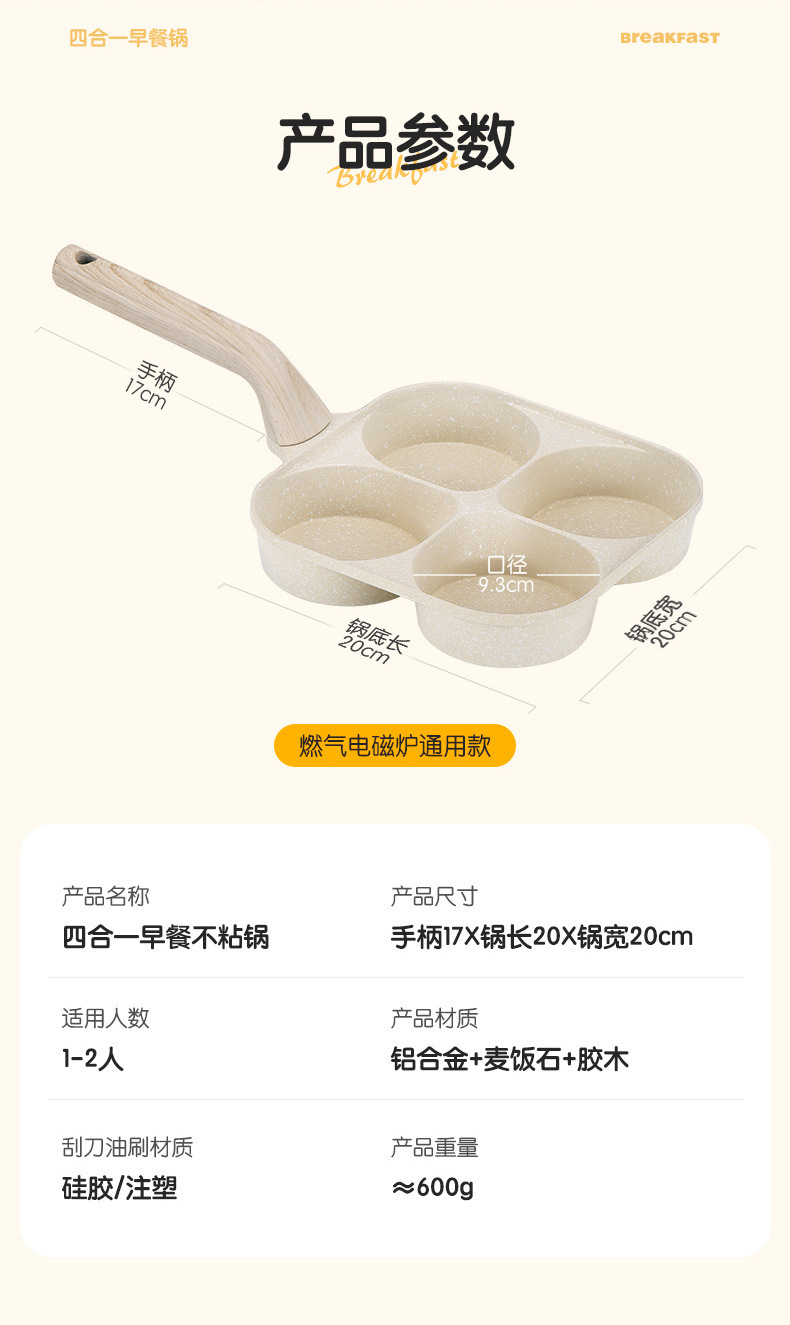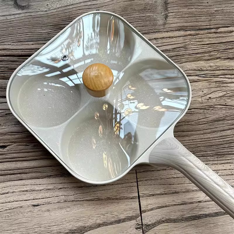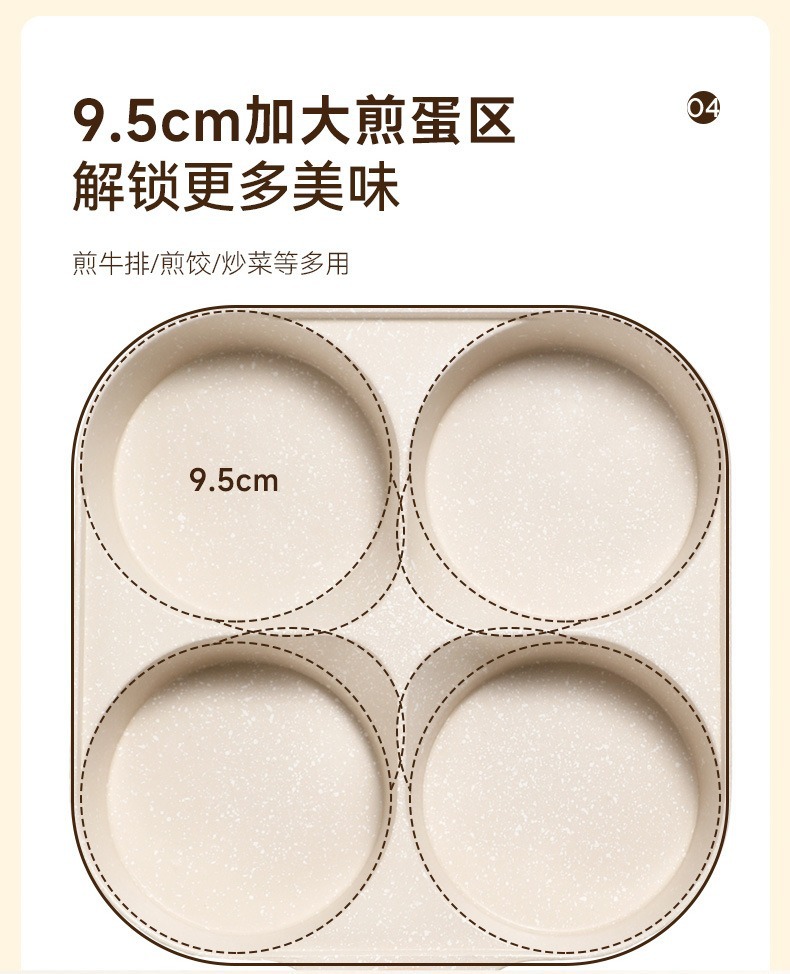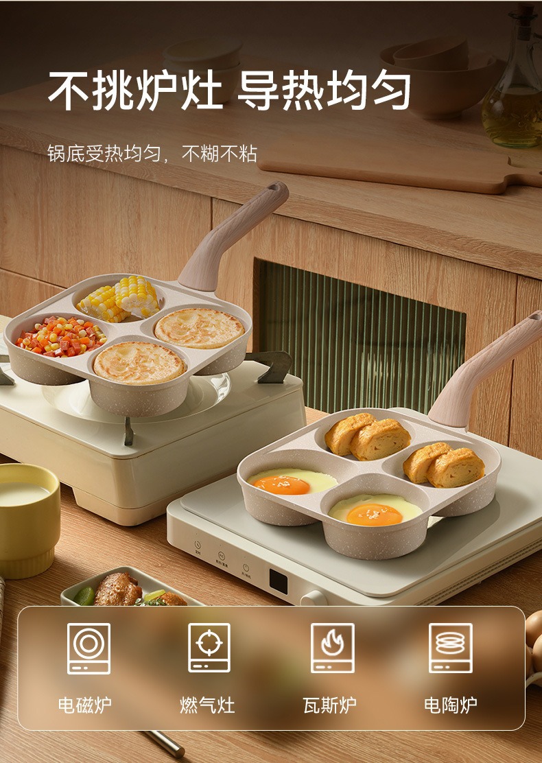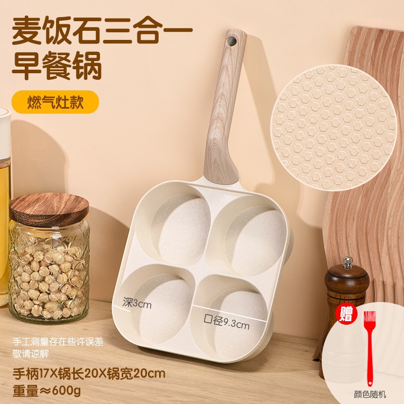 두껍고 깊은 오믈렛 팬, 4구 특수 아침 식사 팬, 마이크로 화강암 논스틱 가정용 계란 버거 몰드 프라이팬스토어 가기