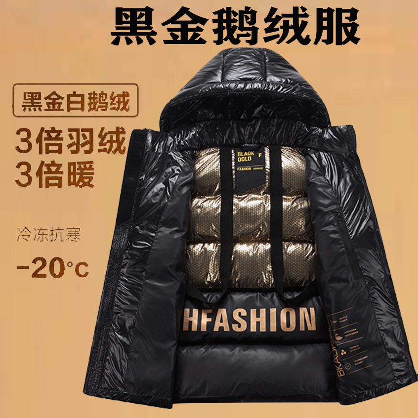 남성과 여성을위한 새로운 블랙 골드 화이트 구스 다운 재킷 커플 짧은 코트 오버 더-무릎 겨울 두꺼운 하이 엔드 캐주얼 웨어