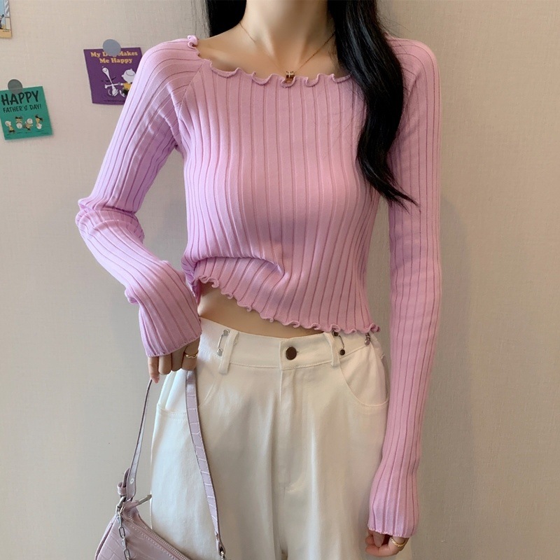 가을과 겨울 달콤한 나무 귀 스웨터 여자 올 매치 톱 얇은 외국식 기본 레이어 셔츠