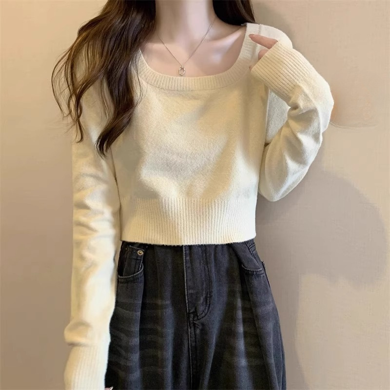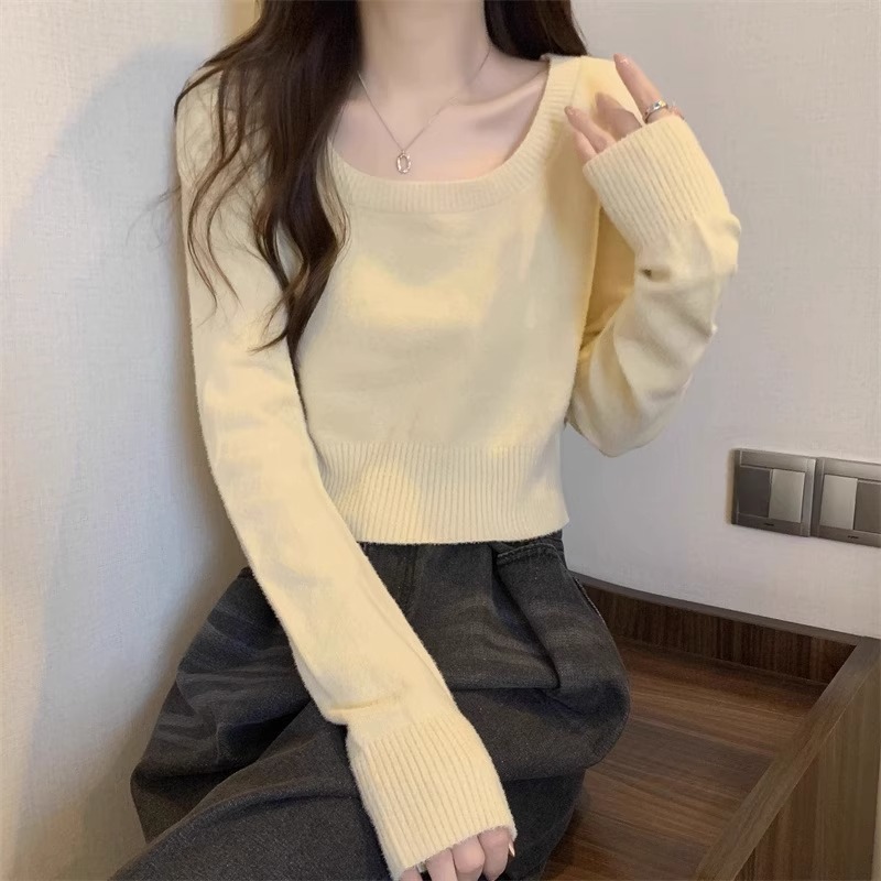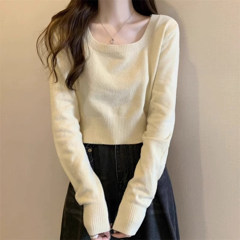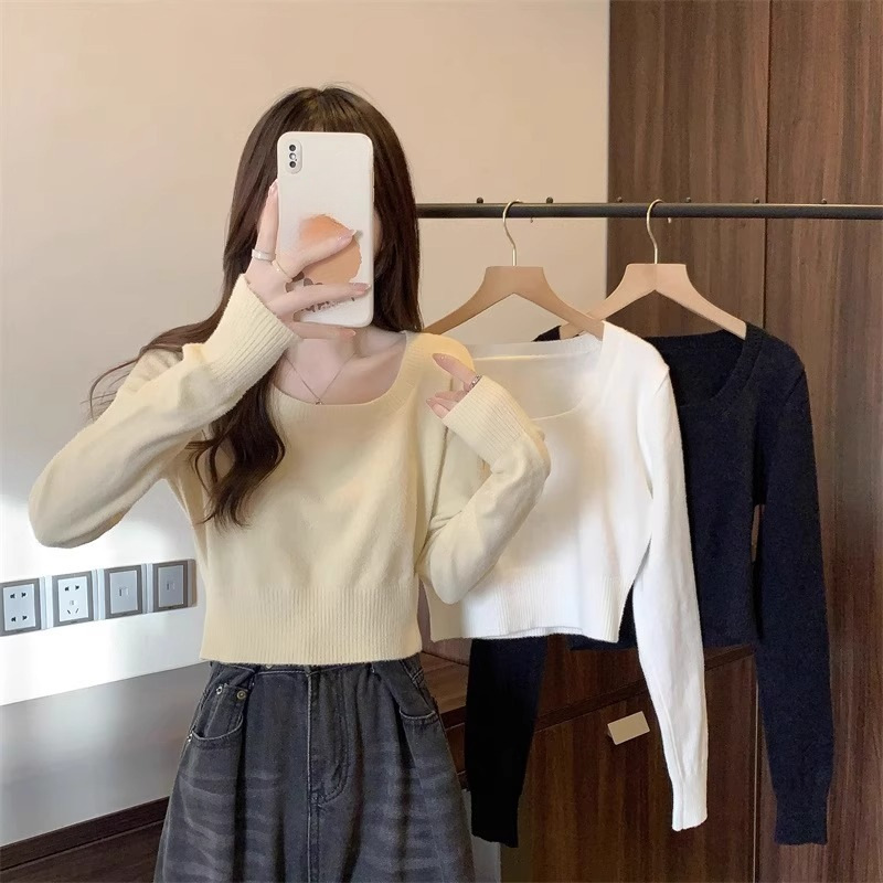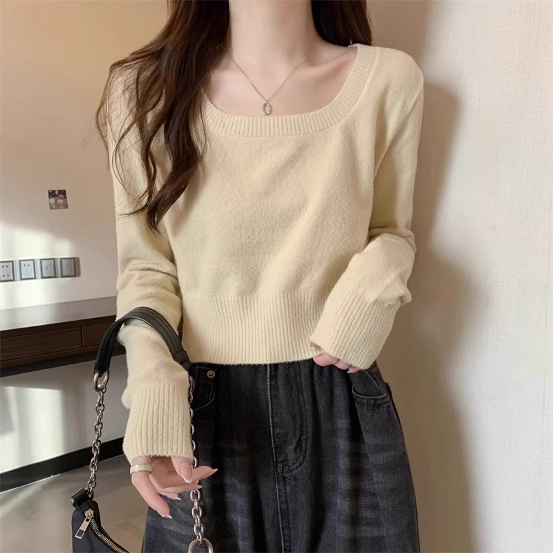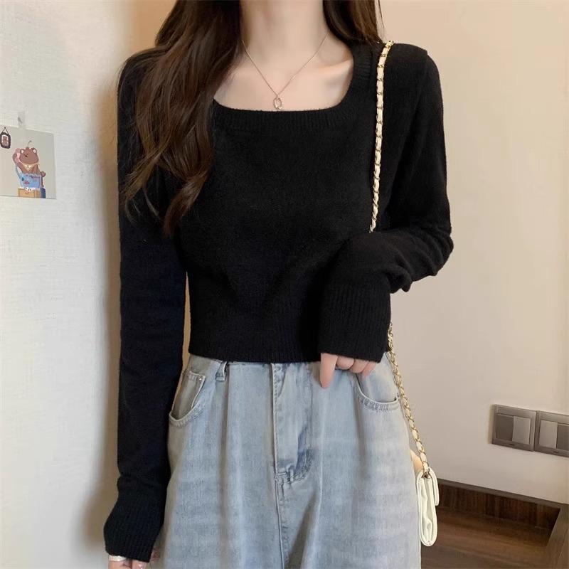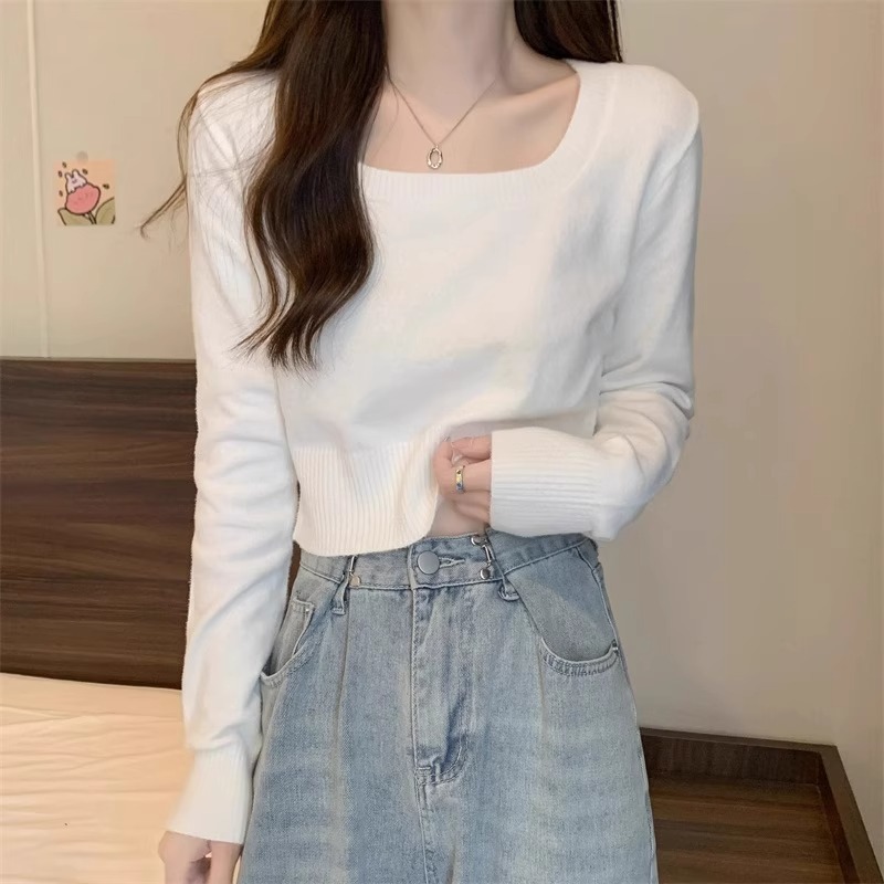 세련된 슬림 스퀘어 칼라베이스 셔츠 여성의 가을과 겨울 2024 새로운 하이 엔드 센스 스웨터 내부 긴팔 스웨터 탑