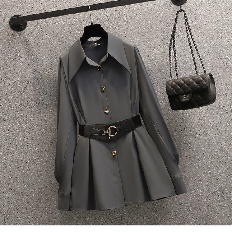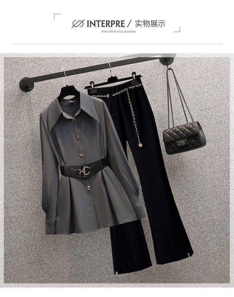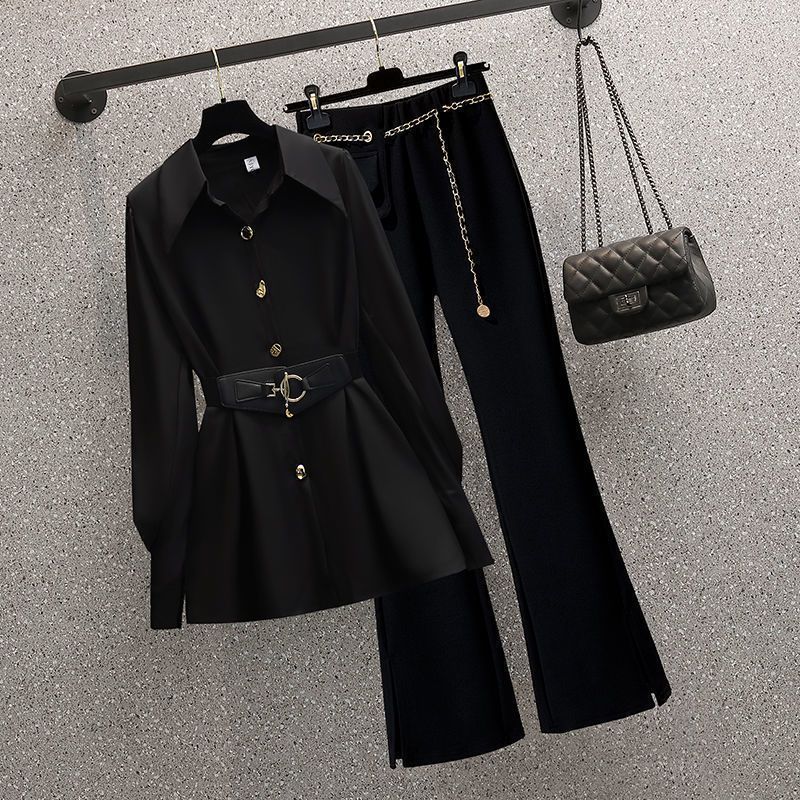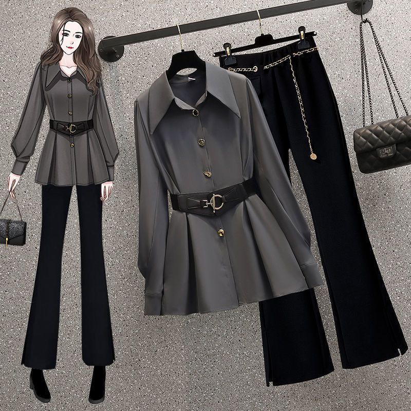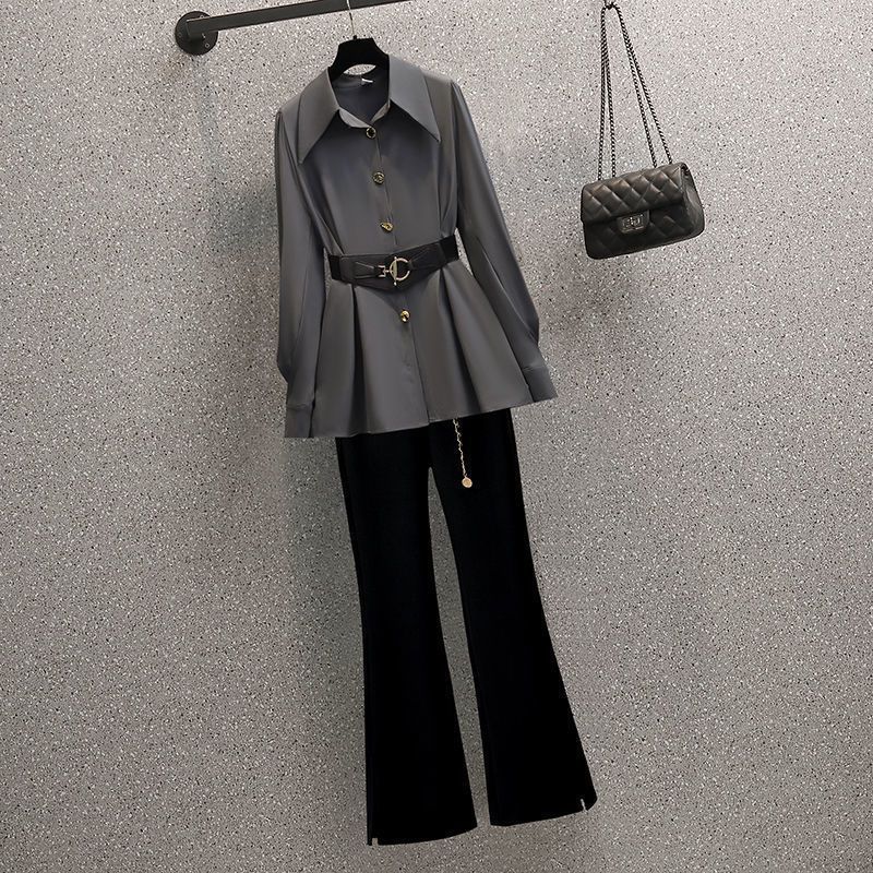 2024 봄과 가을 새로운 한국 스타일 유행 우아한 타이트 허리 셔츠 여성용 느슨한 올매치 세트 유행 바지스토어 가기