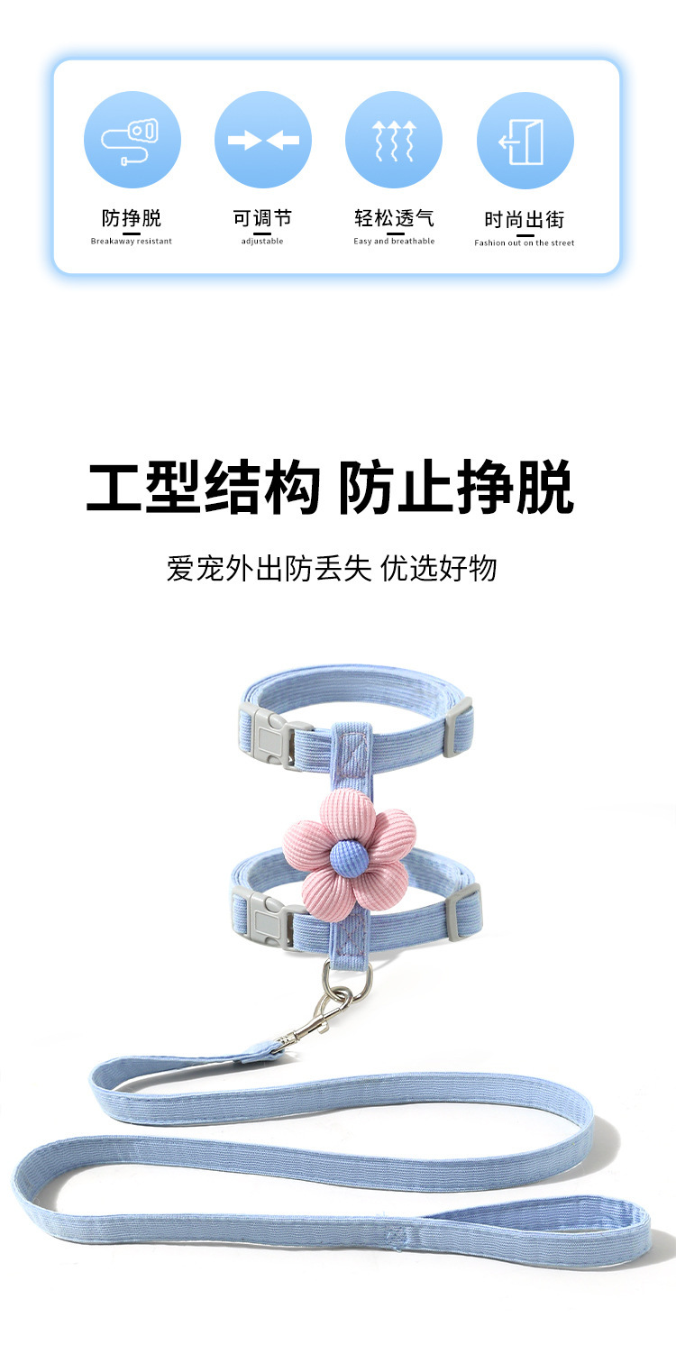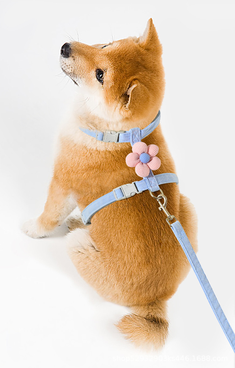 국경 간 꽃 고양이 견인 밧줄 I 형 애완 동물 견인 밧줄 세트 작은 개 견인 밧줄 걷는 밧줄