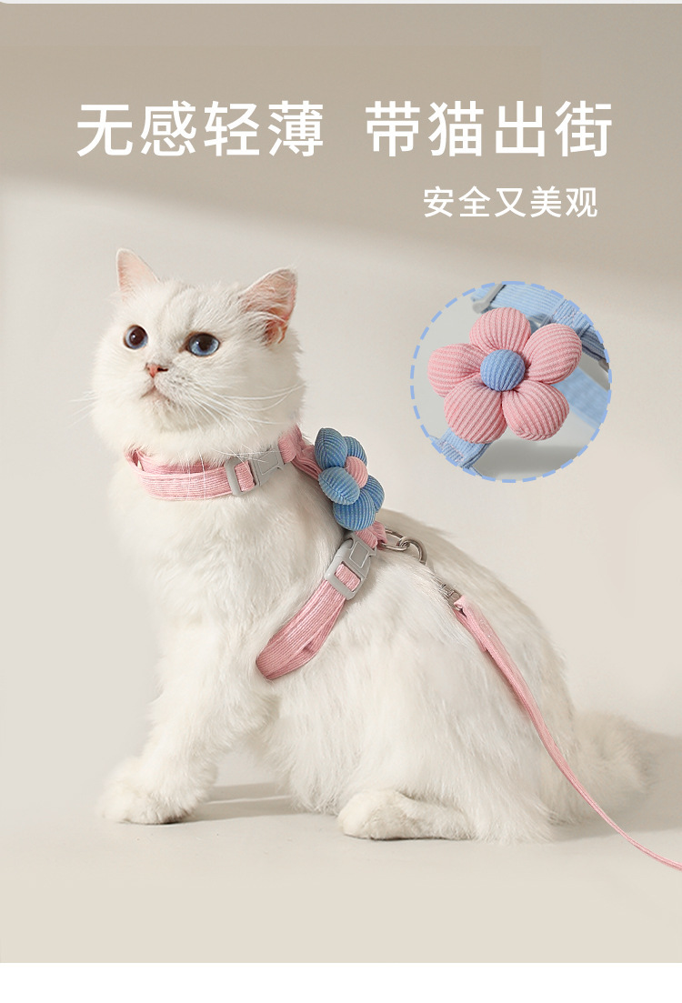 국경 간 꽃 고양이 견인 밧줄 I 형 애완 동물 견인 밧줄 세트 작은 개 견인 밧줄 걷는 밧줄스토어 가기
