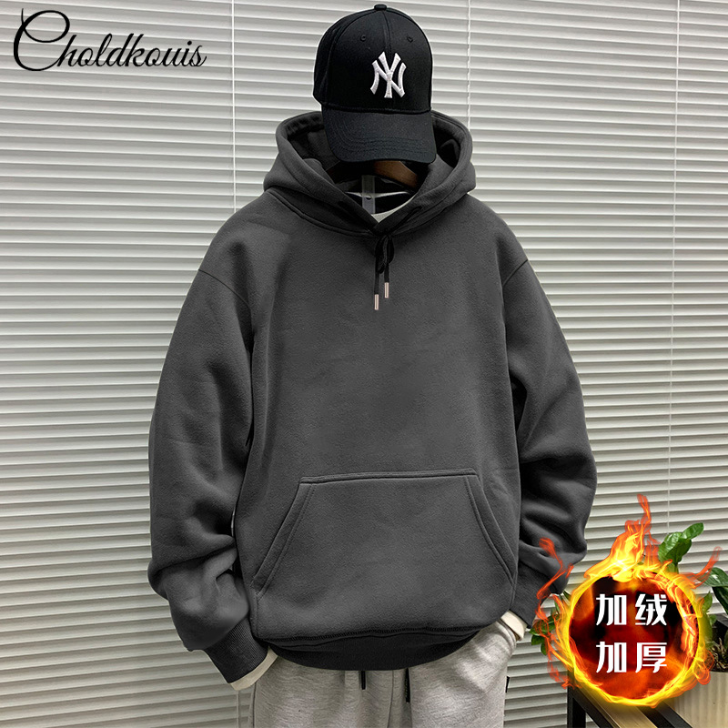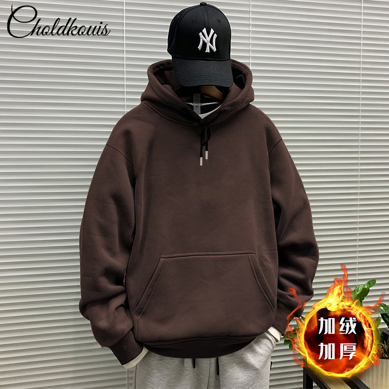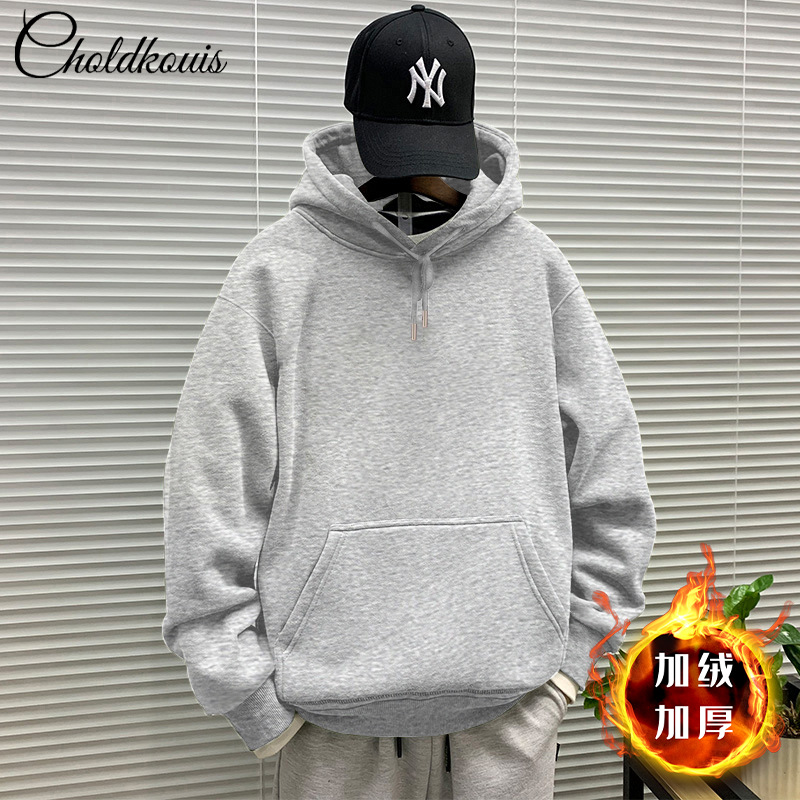 헤비 후드 스웨터 남자 2024 새로운 가을과 겨울 얇은 기모 두꺼운 남자와 여자의 느슨한 후디 패션 커플 재킷스토어 가기