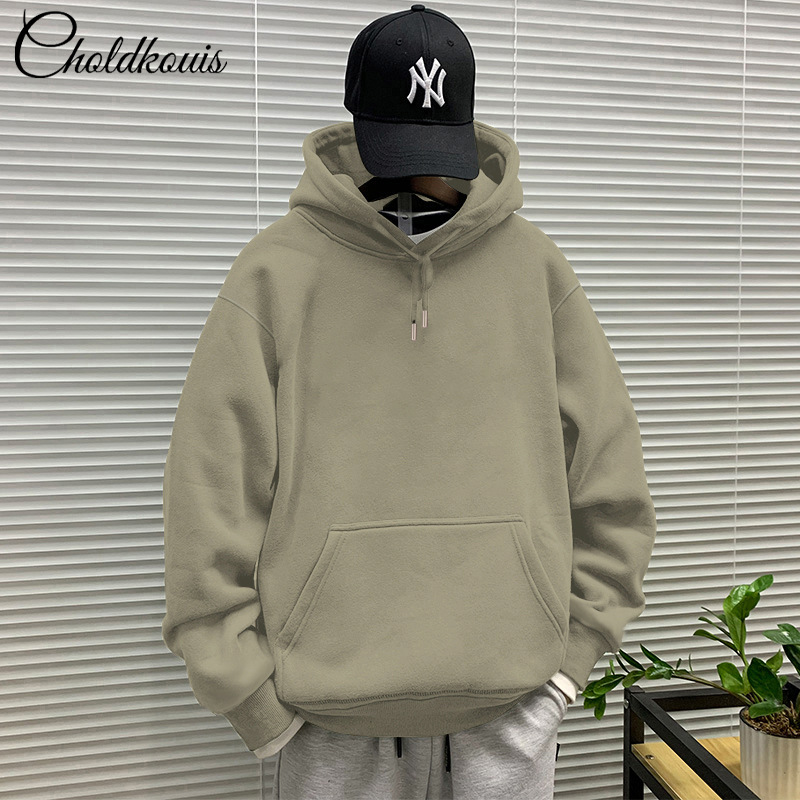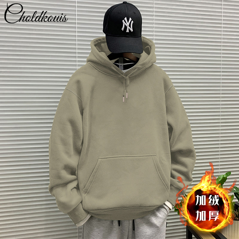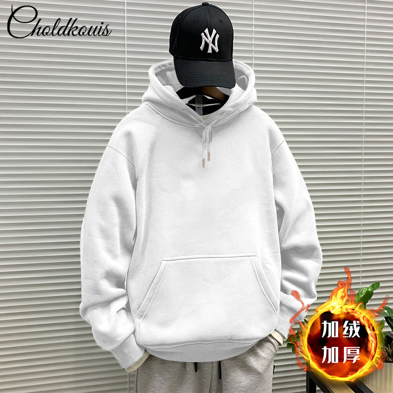 헤비 후드 스웨터 남자 2024 새로운 가을과 겨울 얇은 기모 두꺼운 남자와 여자의 느슨한 후디 패션 커플 재킷