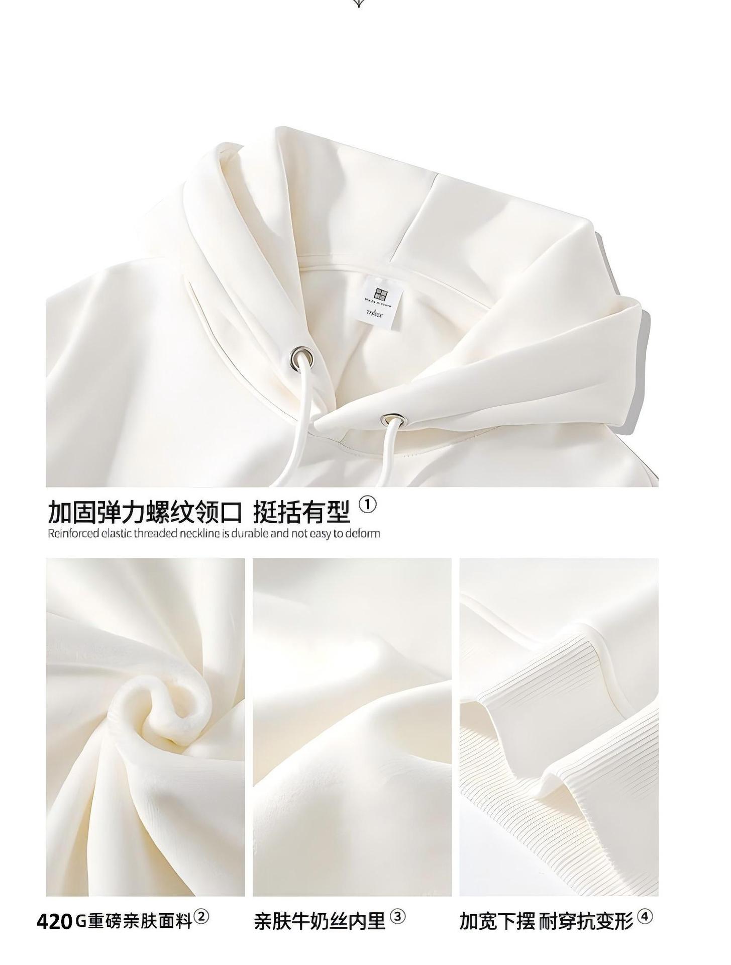 • 화이트 후드 스웨트셔츠 플러스 벨벳 - 솔리드 컬러 [GL]