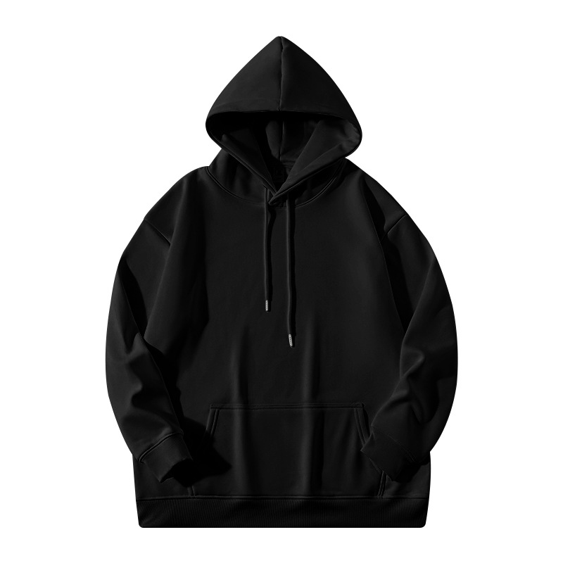 • 블랙 후드 스웨트셔츠 레귤러 스타일 - 솔리드 컬러 [GL]