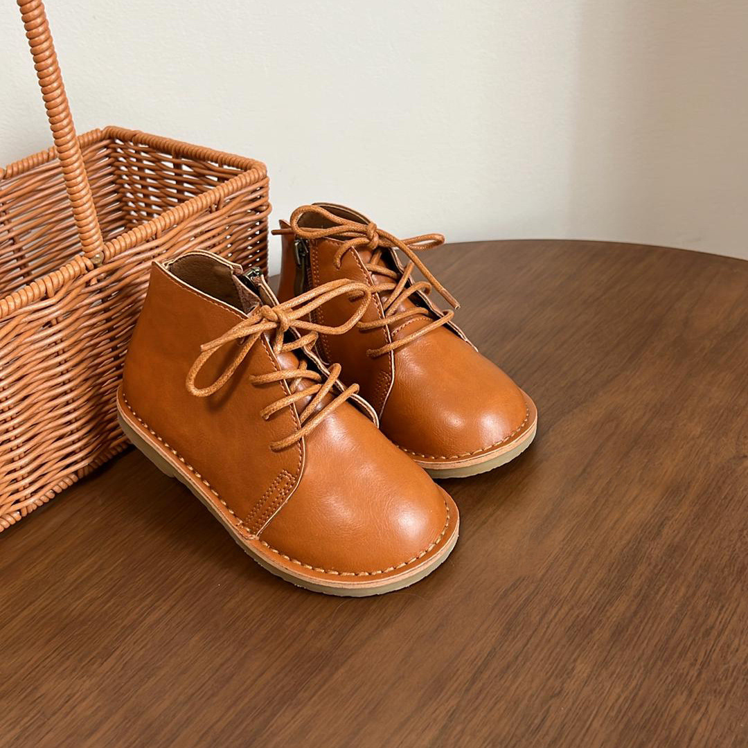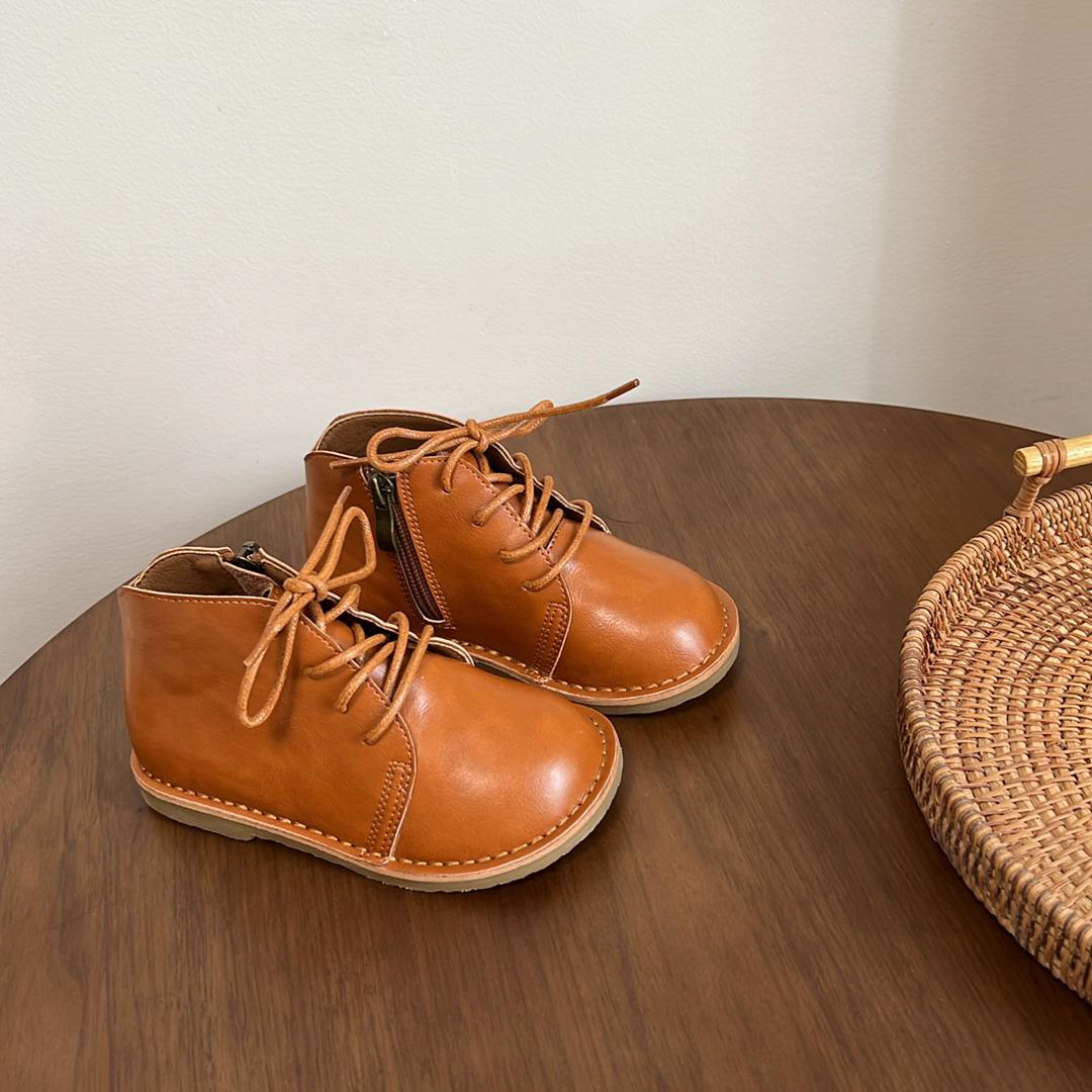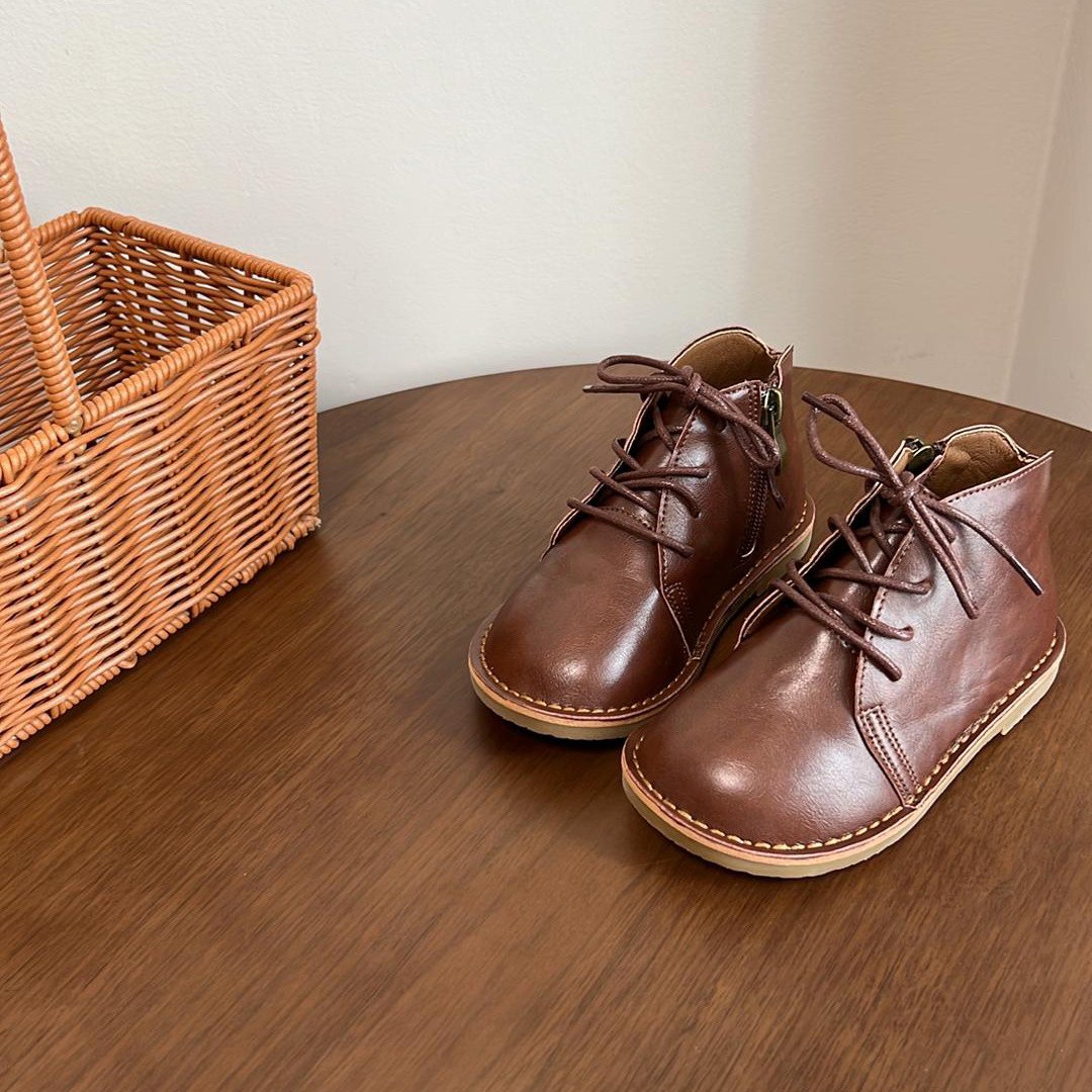 한국 가죽 부츠 2024 가을과 겨울 새로운 빈티지 소녀 모리 스타일 짧은 부츠 소년 소녀 사이드 지퍼 부드러운 바닥 낮은 부츠 조수스토어 가기