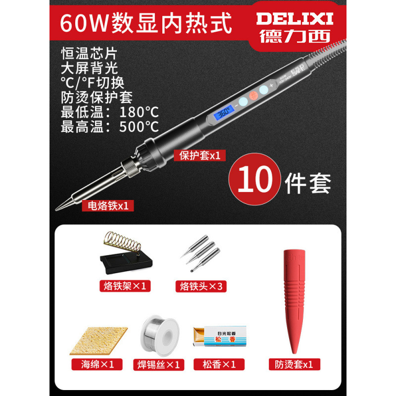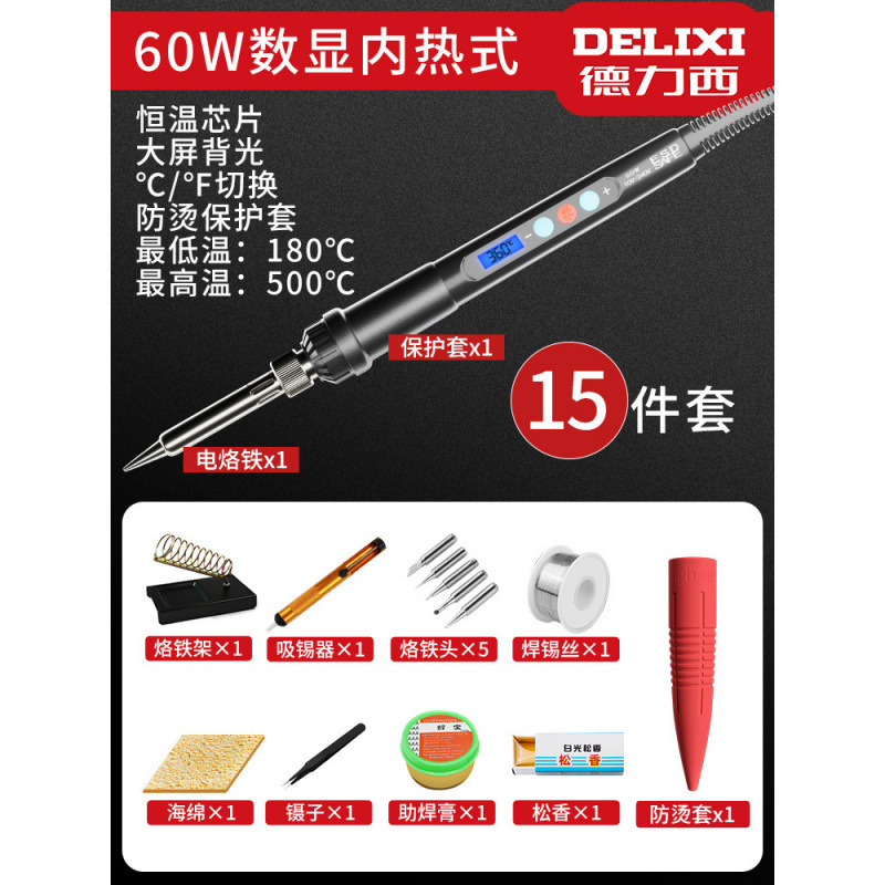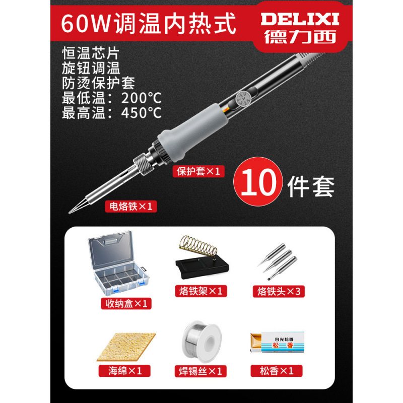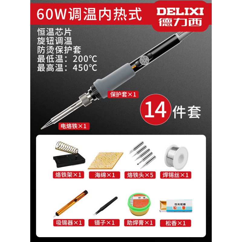 Delixi 전기 납땜 철 일정한 온도 가구 세트 조정 가능한 온도 전기 납땜 펜 솔더 총 높은 전력 유지 보수 용접 Luo 철스토어 가기