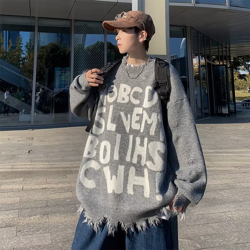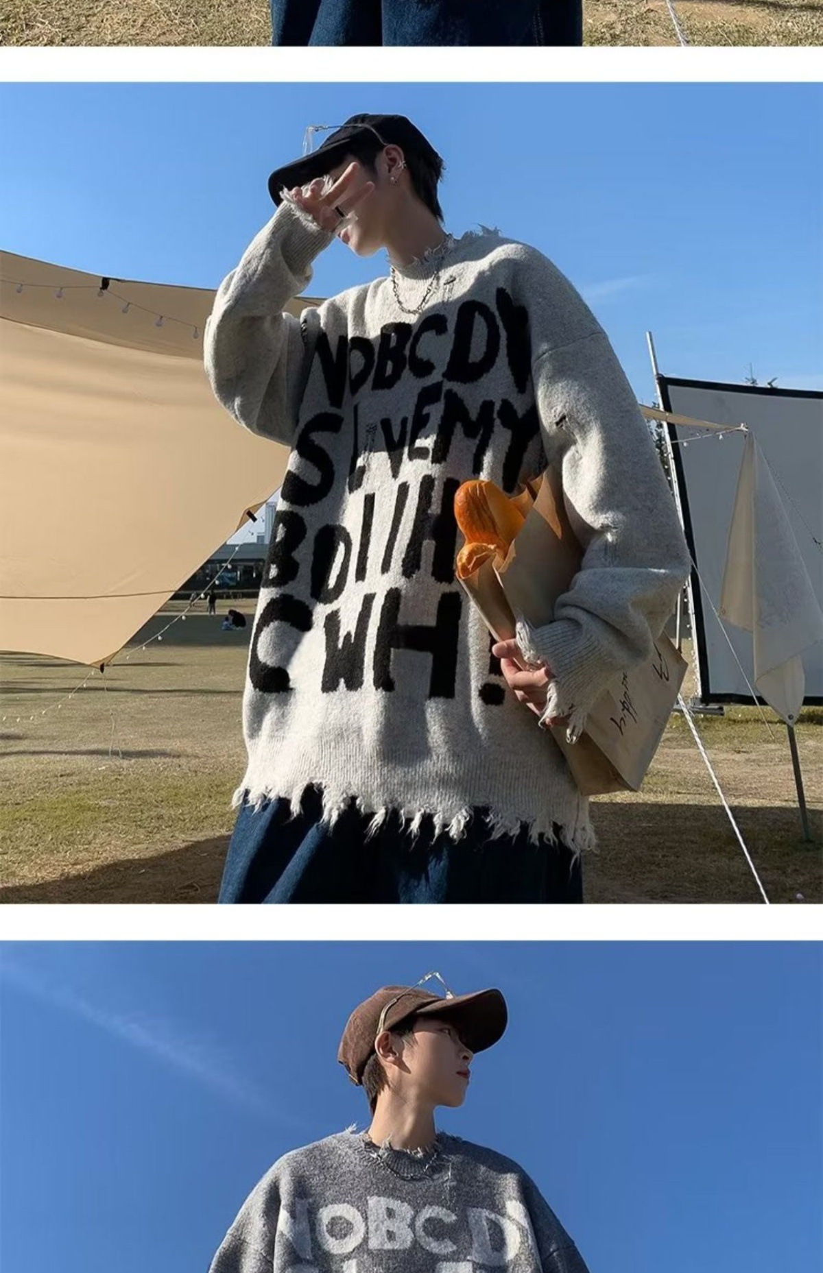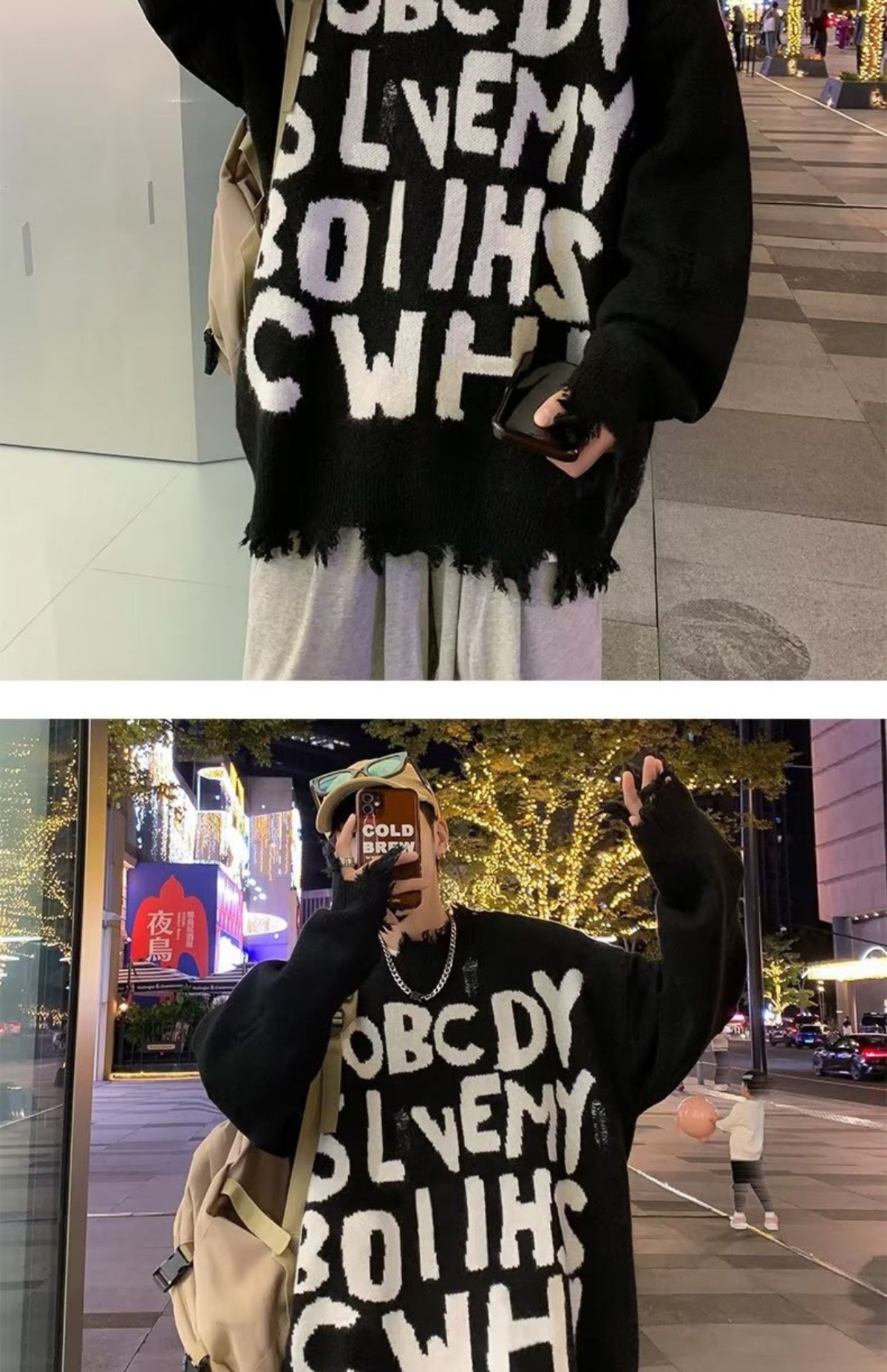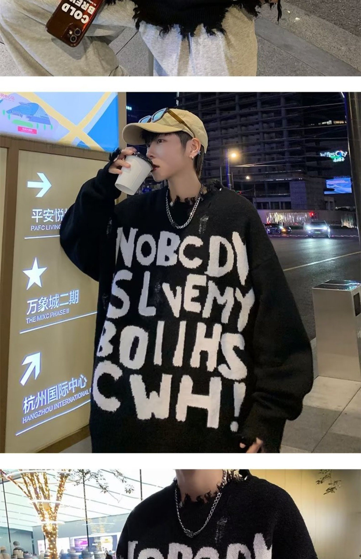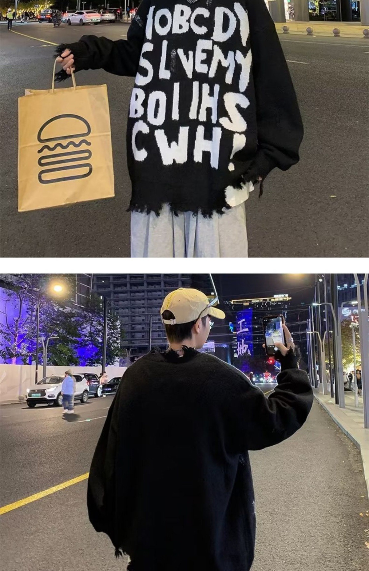 미국식 하이 스트리트 파괴 스웨터 남자의 가을과 겨울 게으른 스타일 고급 패션 브랜드 스웨터 오버 사이즈 재킷스토어 가기