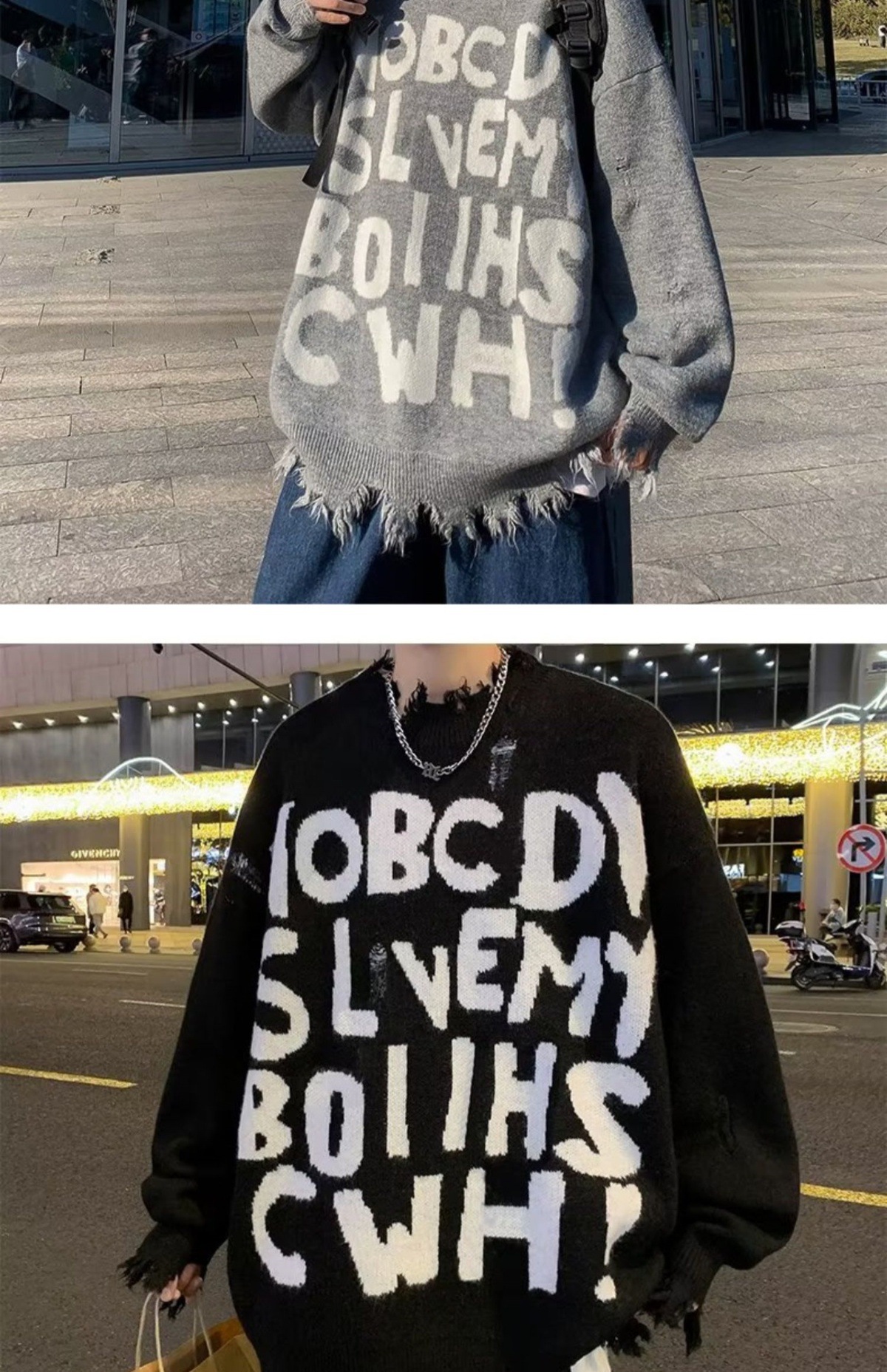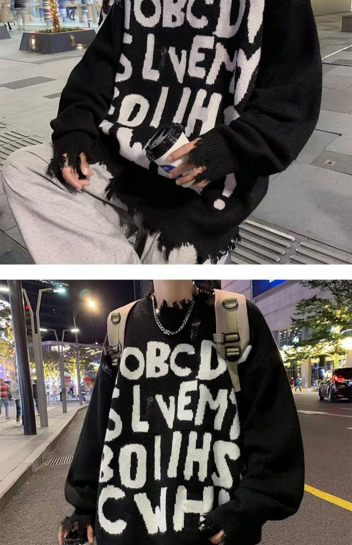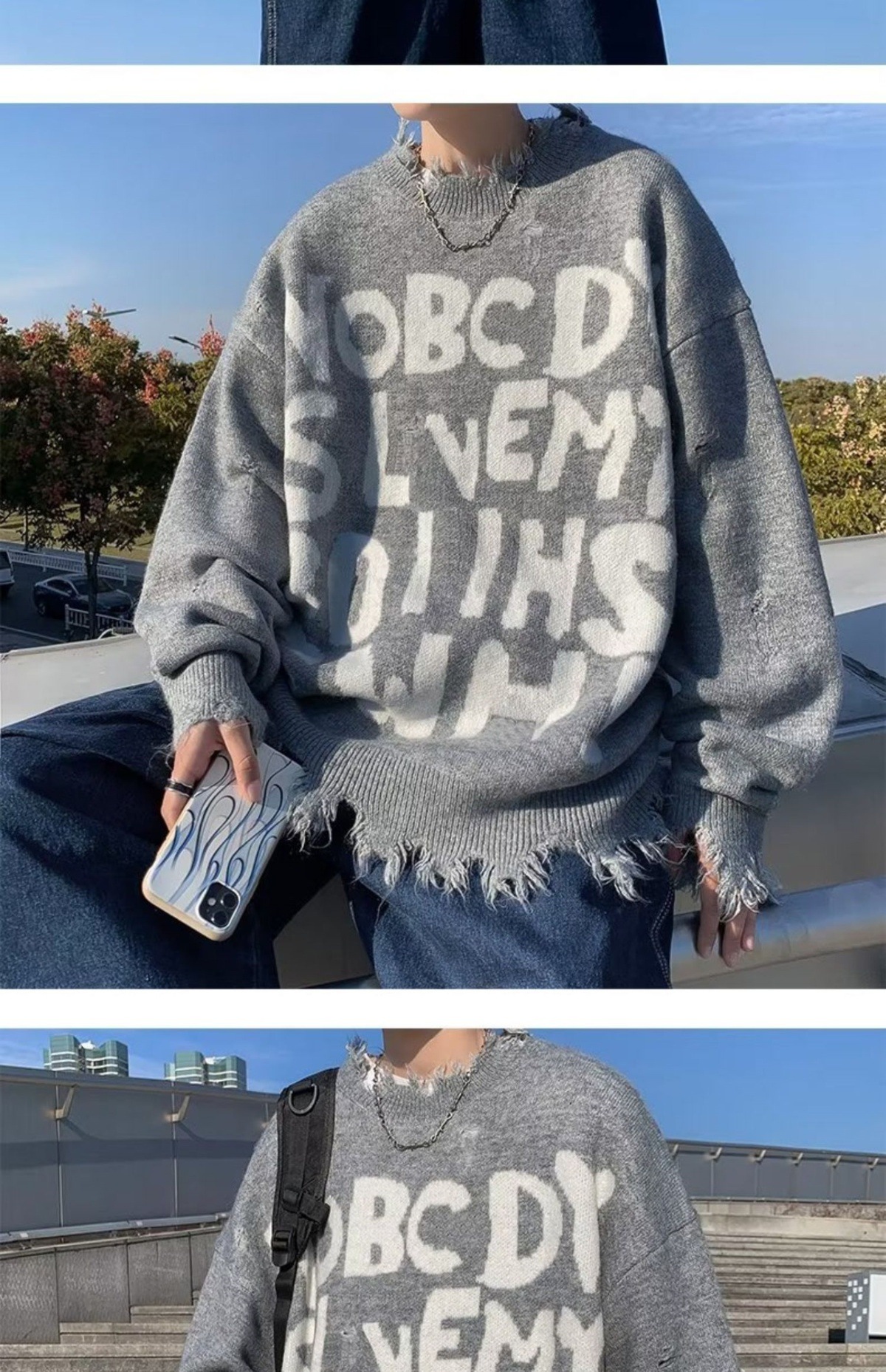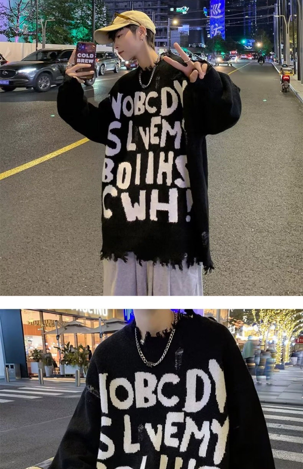 미국식 하이 스트리트 파괴 스웨터 남자의 가을과 겨울 게으른 스타일 고급 패션 브랜드 스웨터 오버 사이즈 재킷스토어 가기