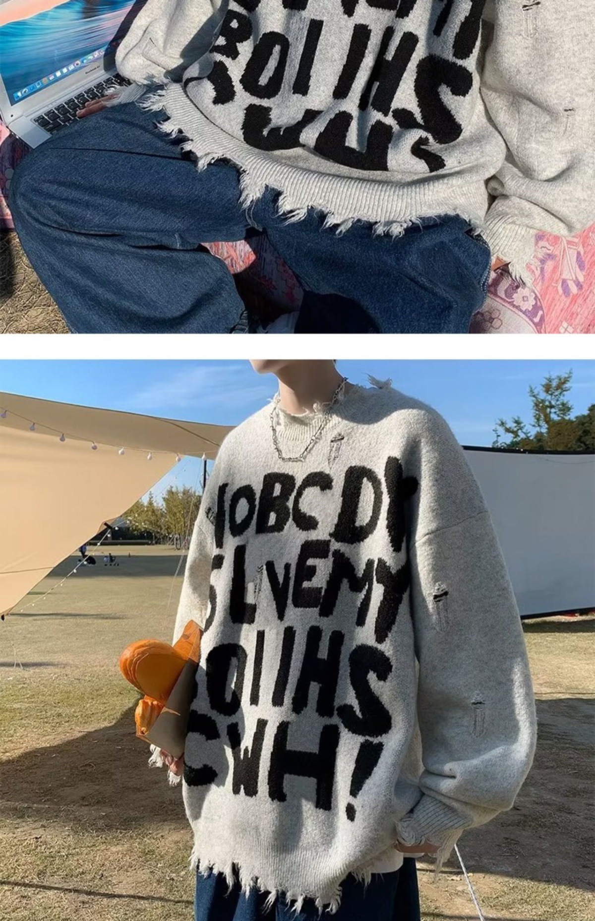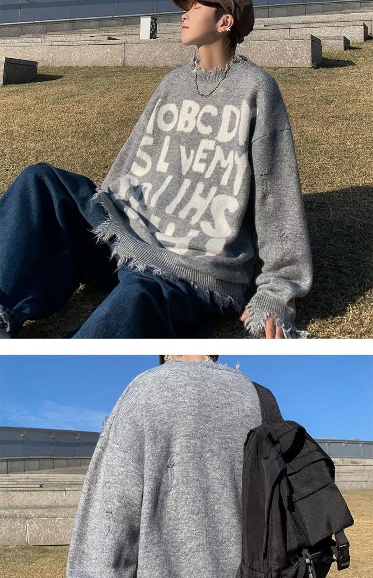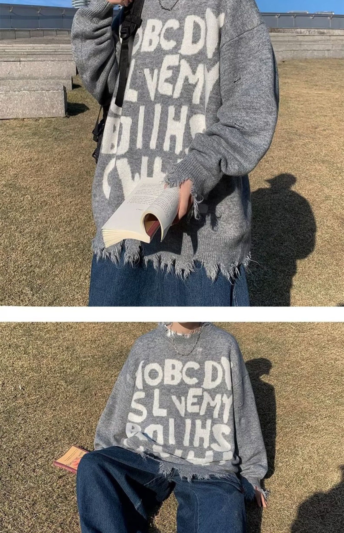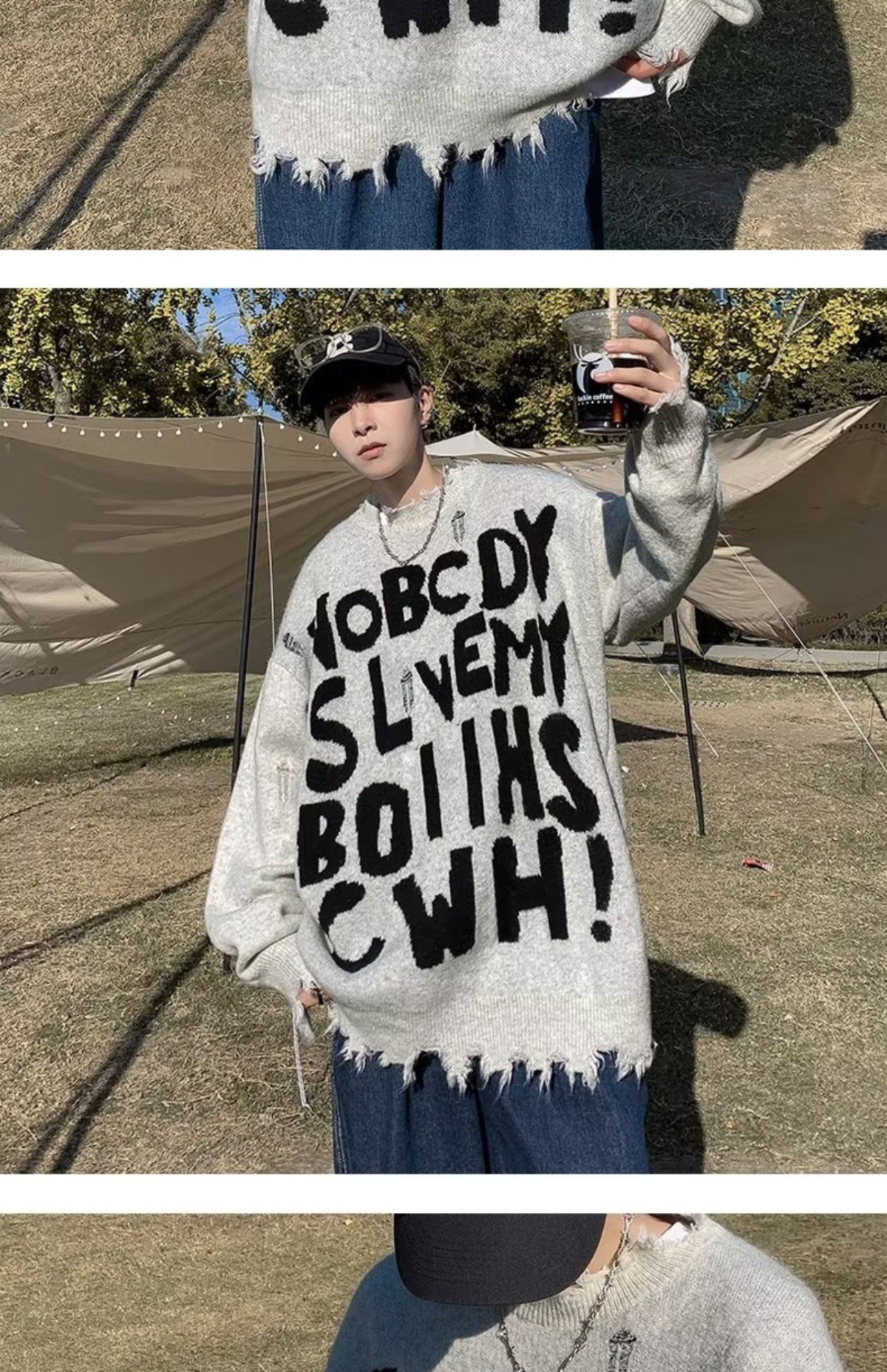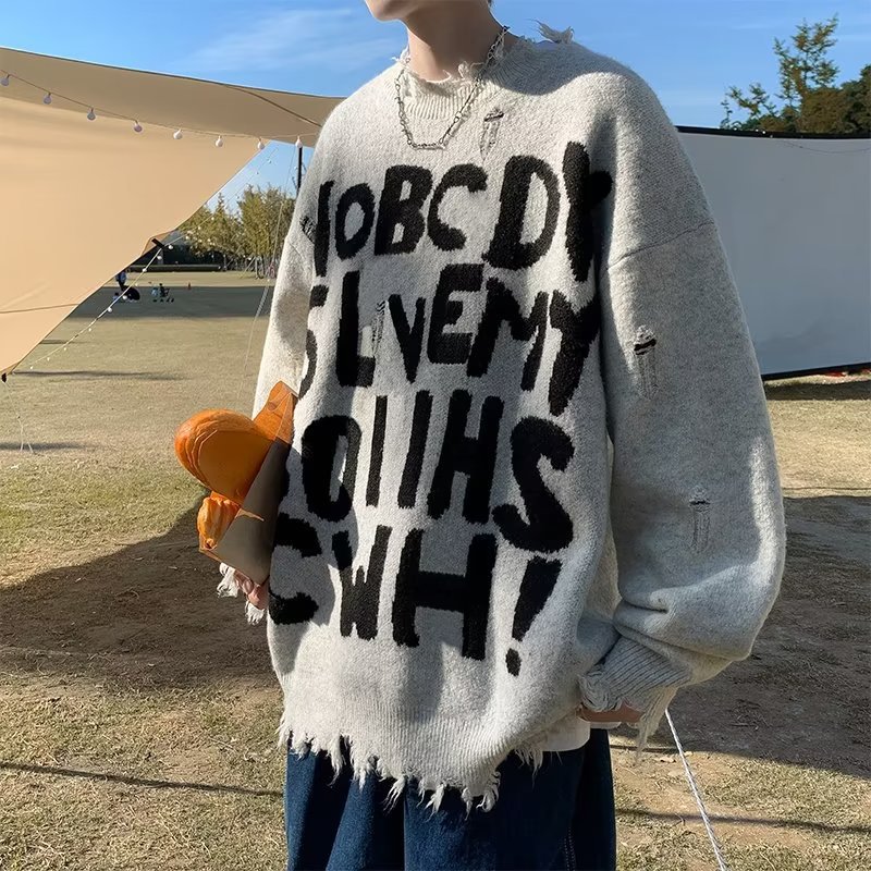 미국식 하이 스트리트 파괴 스웨터 남자의 가을과 겨울 게으른 스타일 고급 패션 브랜드 스웨터 오버 사이즈 재킷스토어 가기