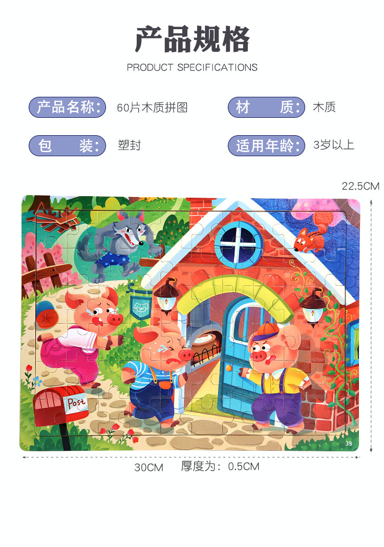 국경 간 도매 60피스 나무 어린이 퍼즐 만화 평면 퍼즐 조립 유아 조기 교육 교구 장난감스토어 가기