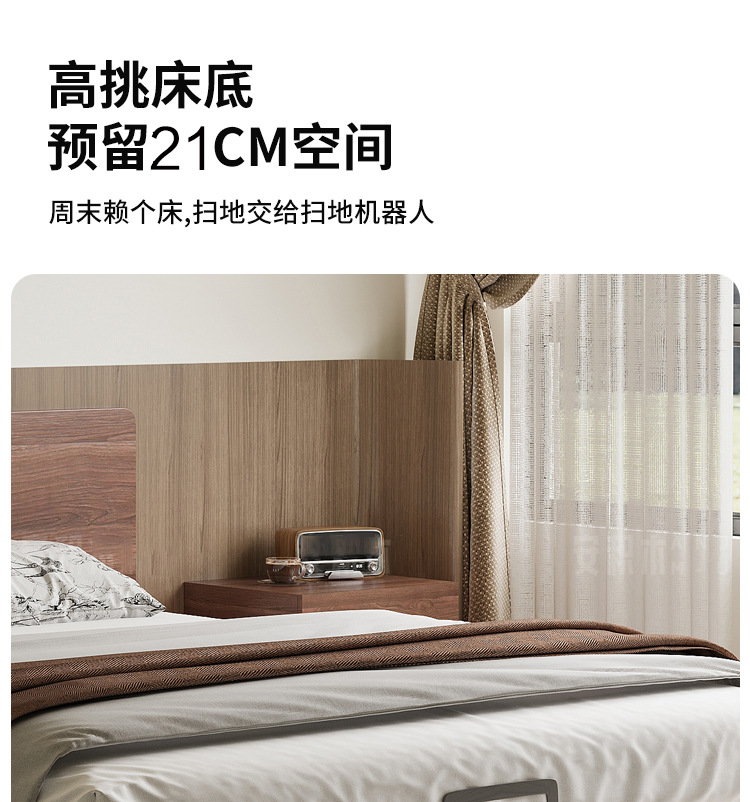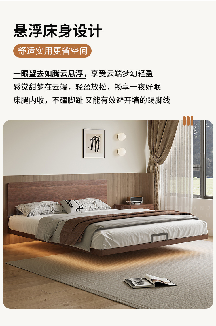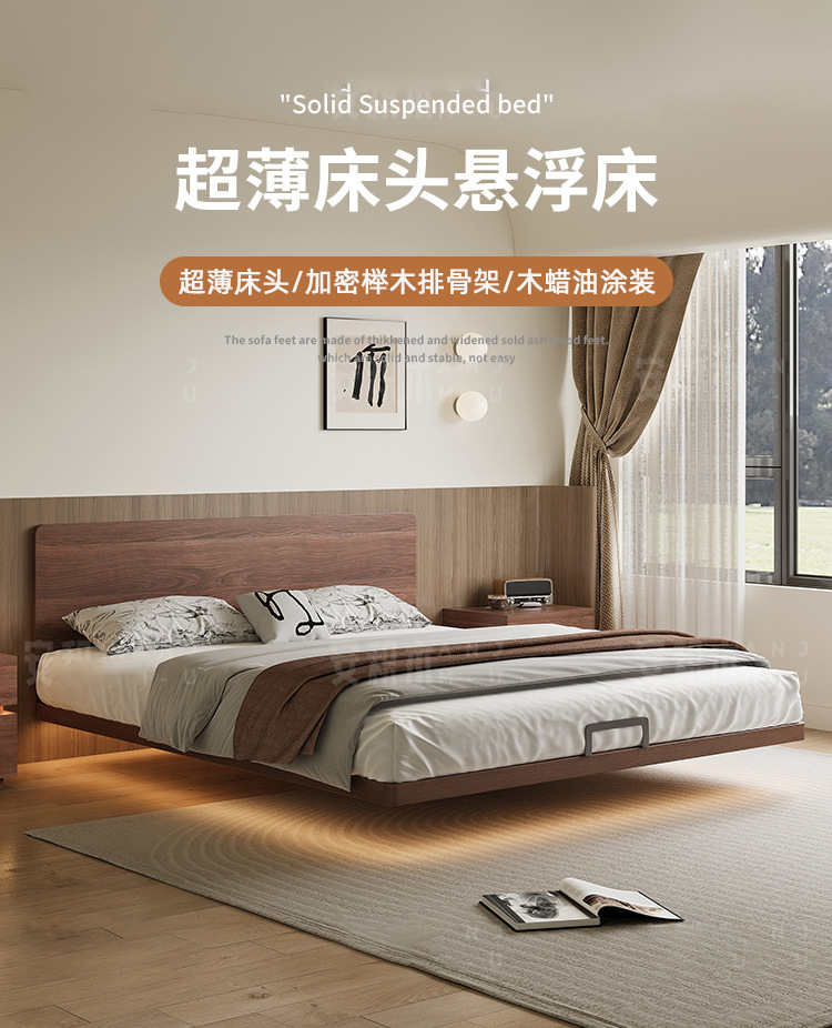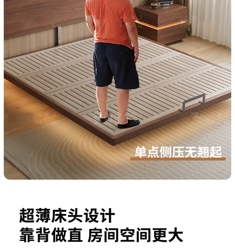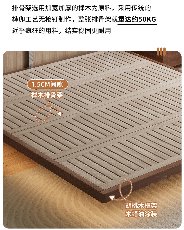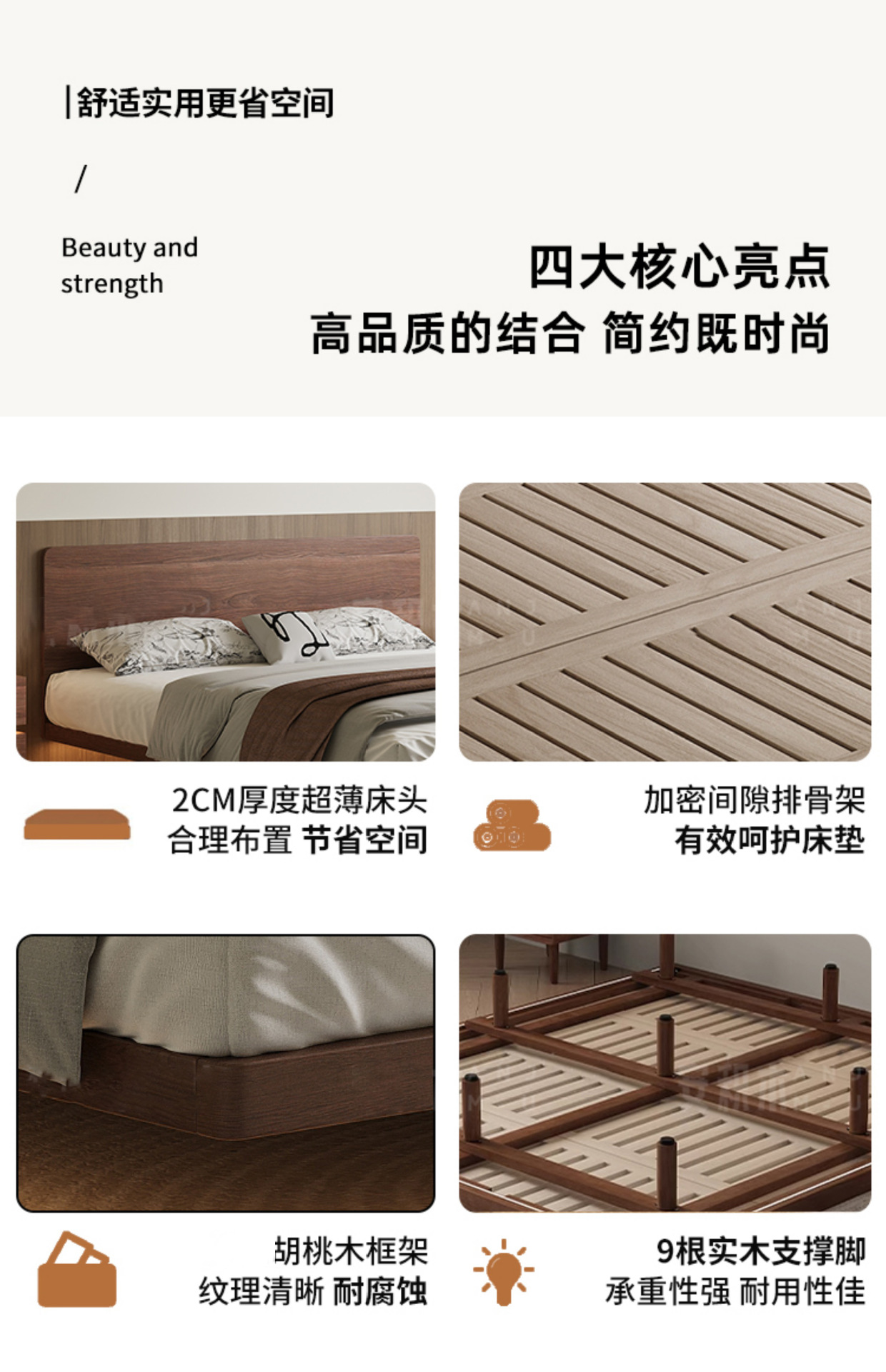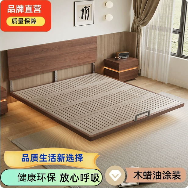 초박형 침대 헤드보드가 없는 침대 호두나무 원목 침대 레트로 스타일 침실 너도밤나무 뼈대 침대 소형 가정용 더블 침대스토어 가기