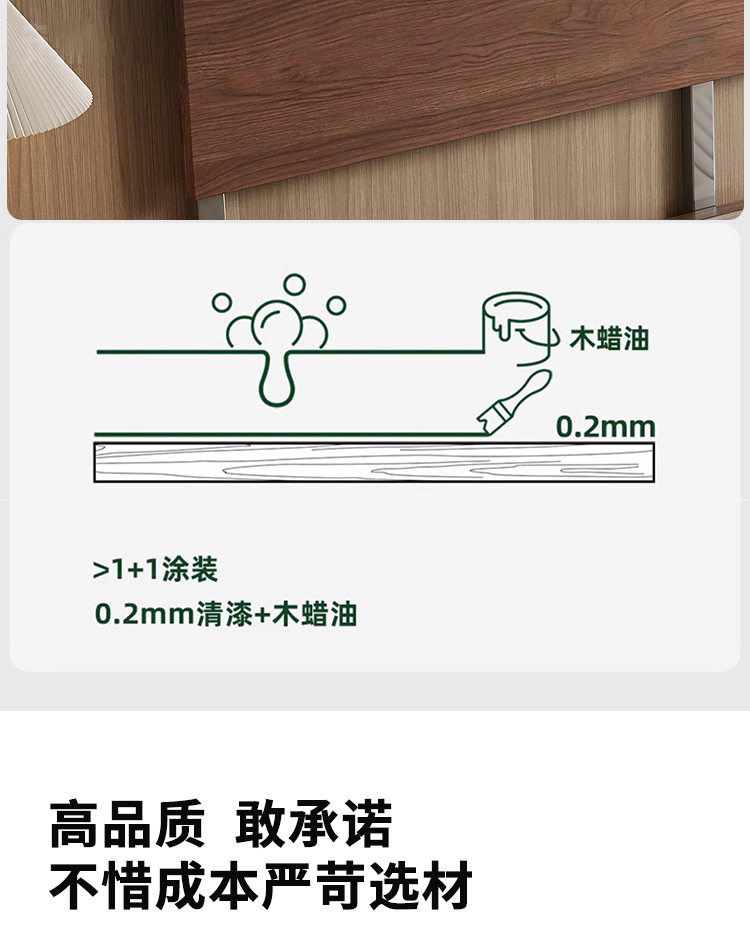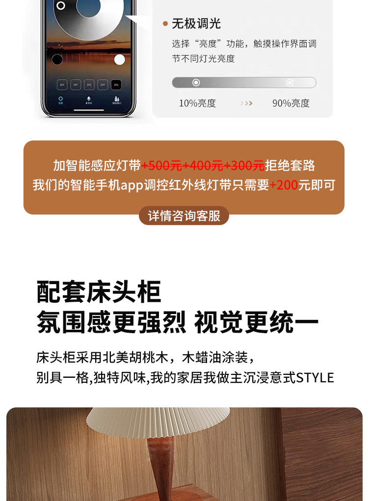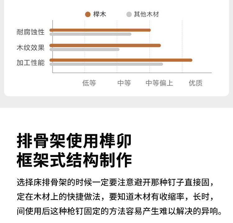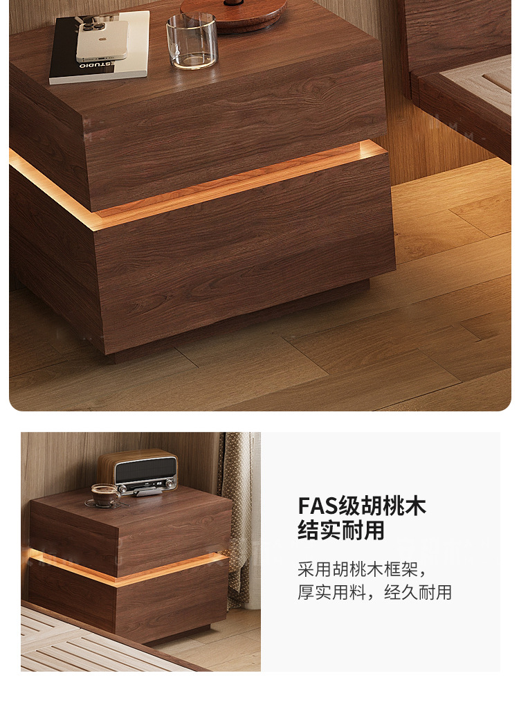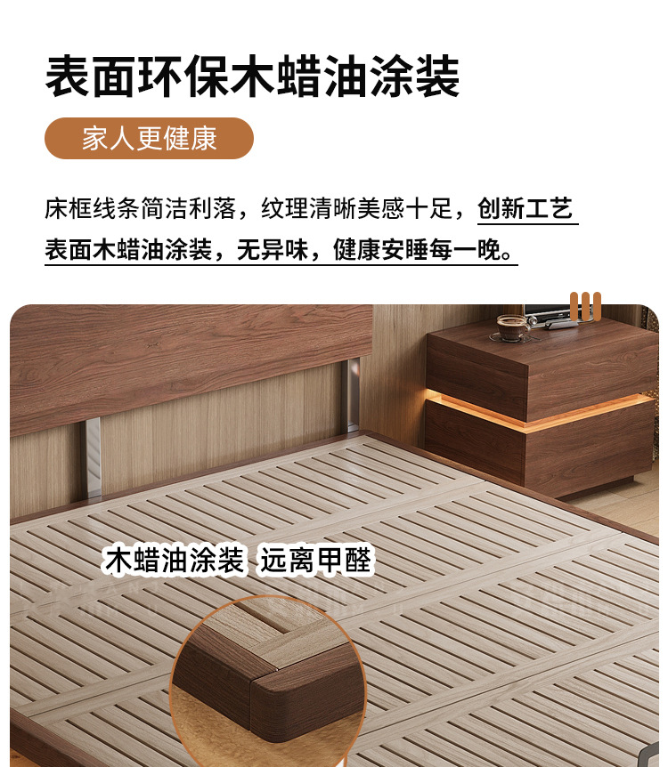 • 올 원목 초박형 침대 옆 [업그레이드된 1.5cm 암호화 행 프레임] + 더블 캐비닛