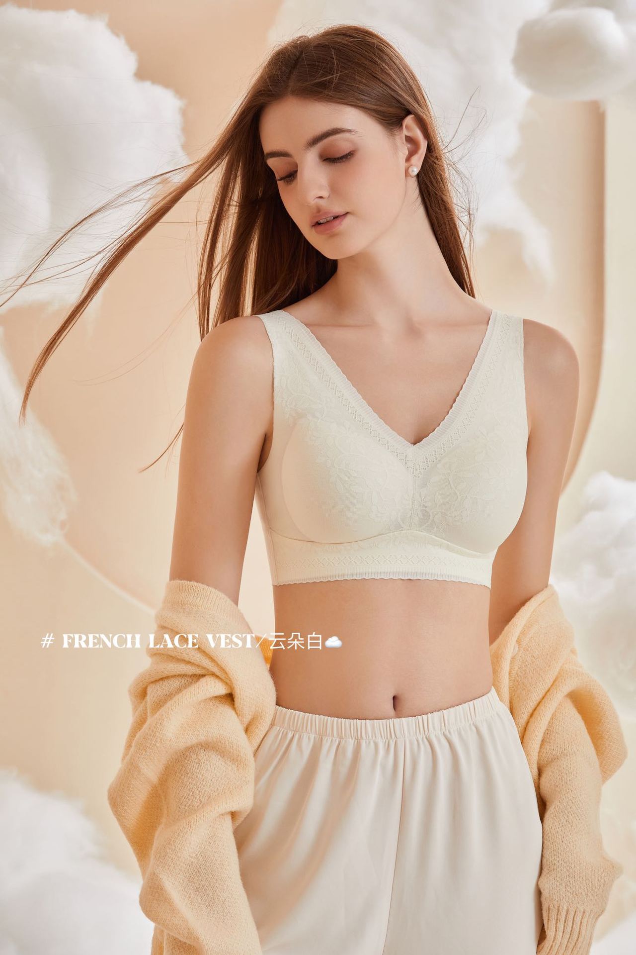 조끼 소프트 지원 브래지어 프랑스 레이스 산소 속옷 여성의 V 넥 메쉬 원활한 푸시 업 통기성 풀오버스토어 가기