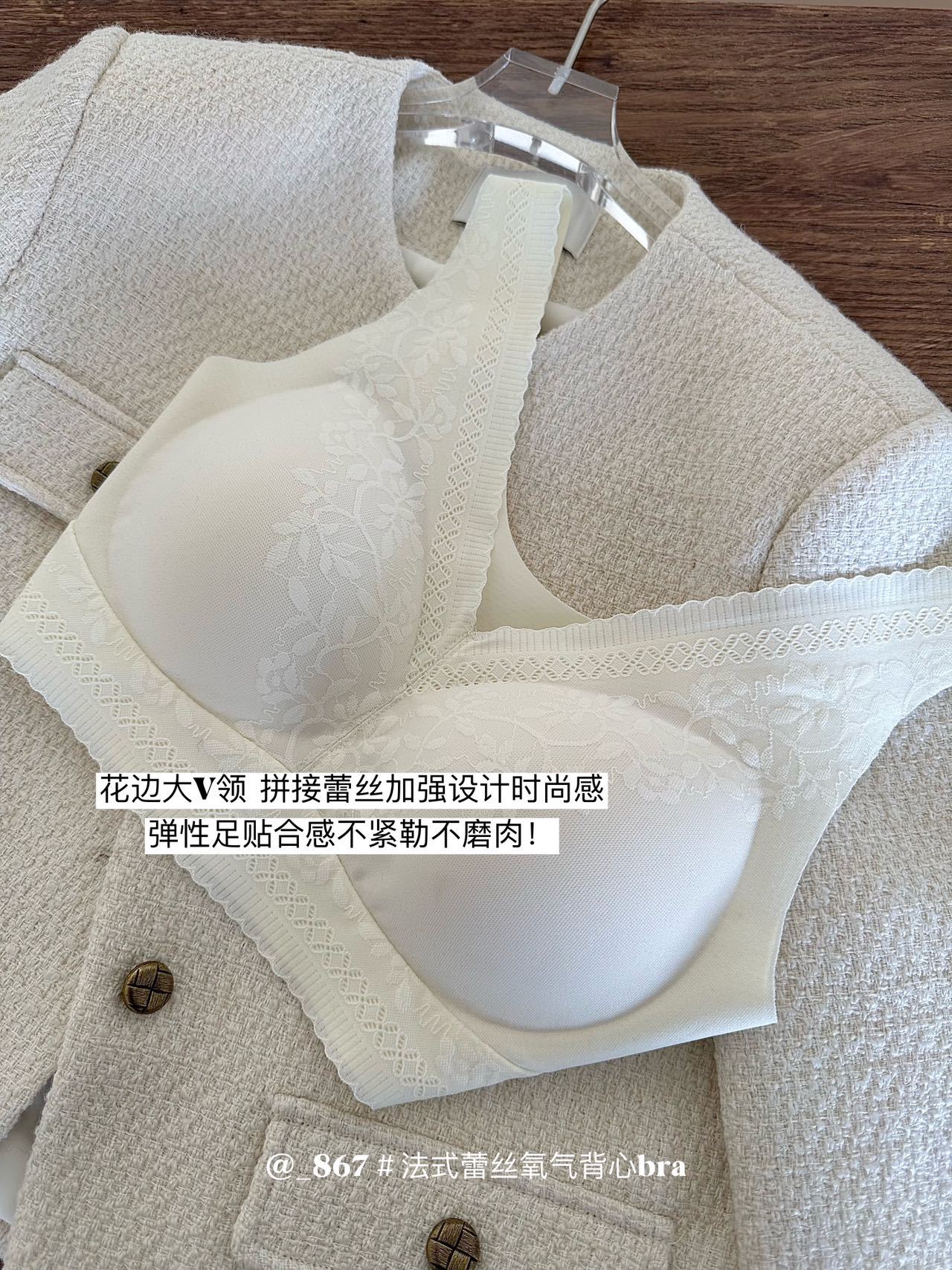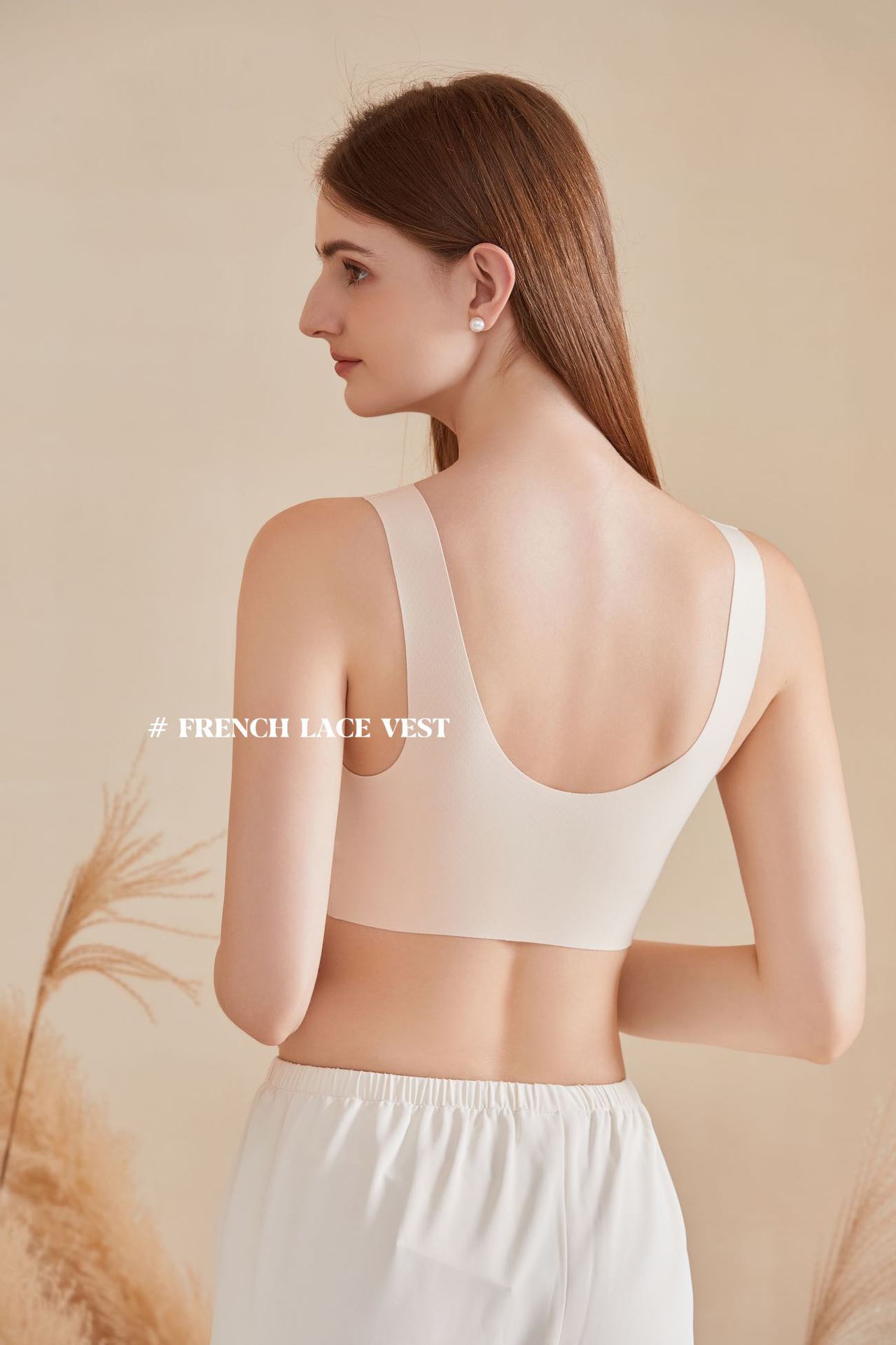 조끼 소프트 지원 브래지어 프랑스 레이스 산소 속옷 여성의 V 넥 메쉬 원활한 푸시 업 통기성 풀오버