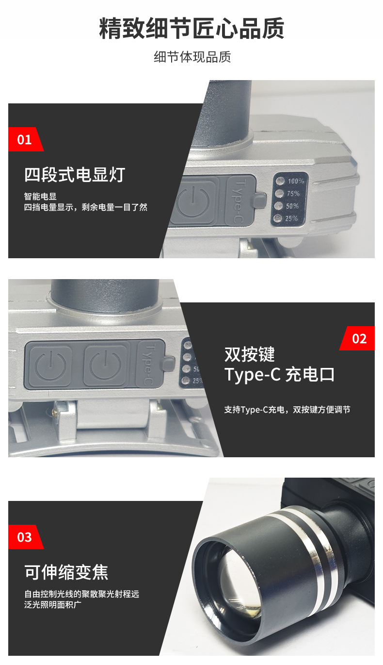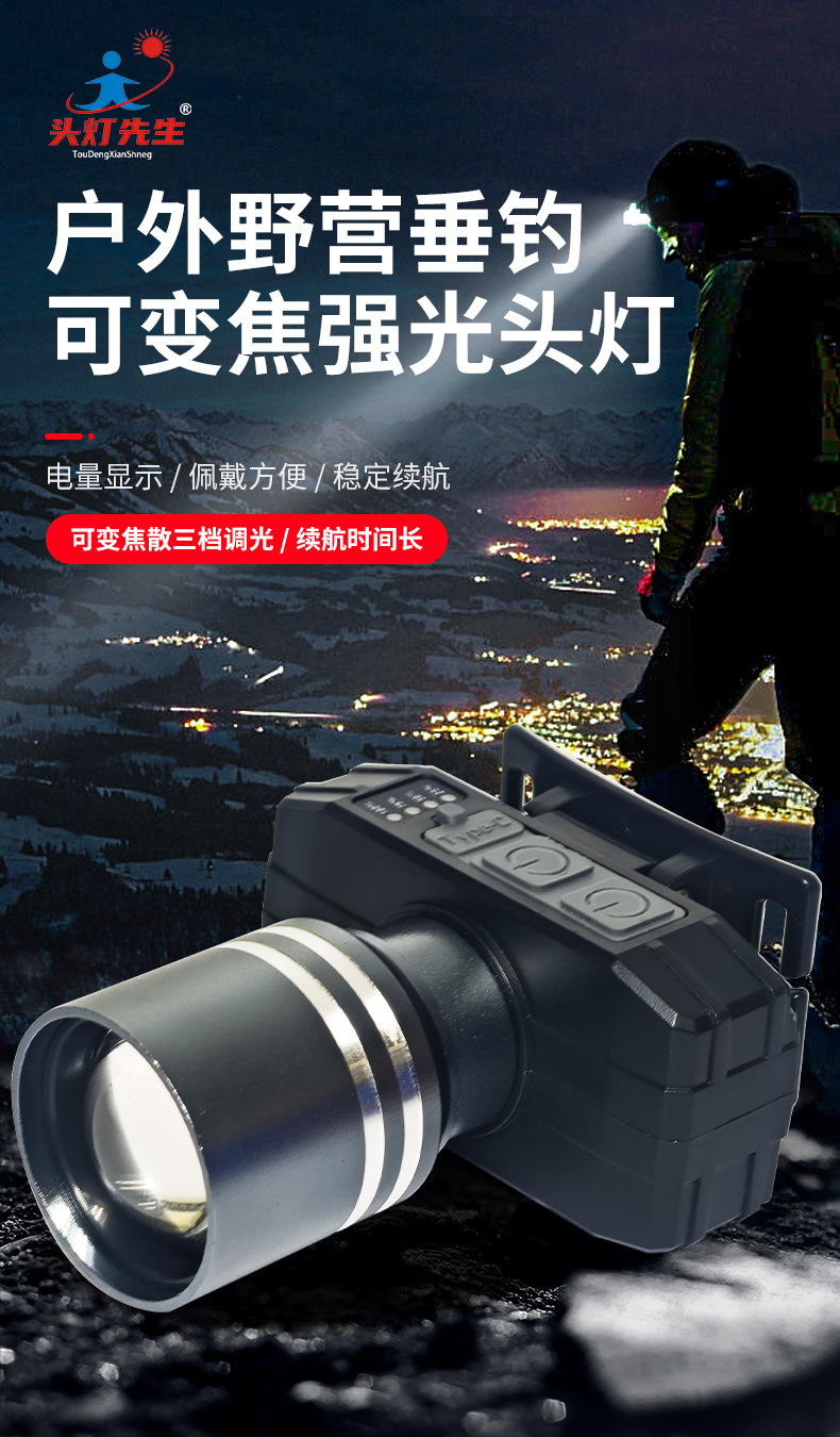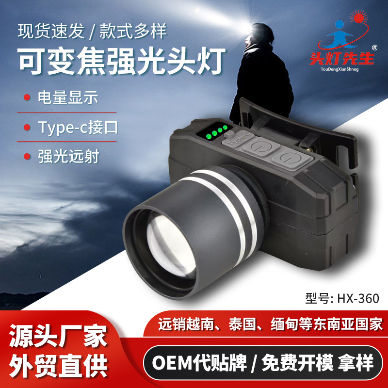 헤드 램프 도매 국경 다기능 망원경 줌 헤드 램프 긴 내구성 강한 빛 알루미늄 합금 야외 조명 헤드 램프