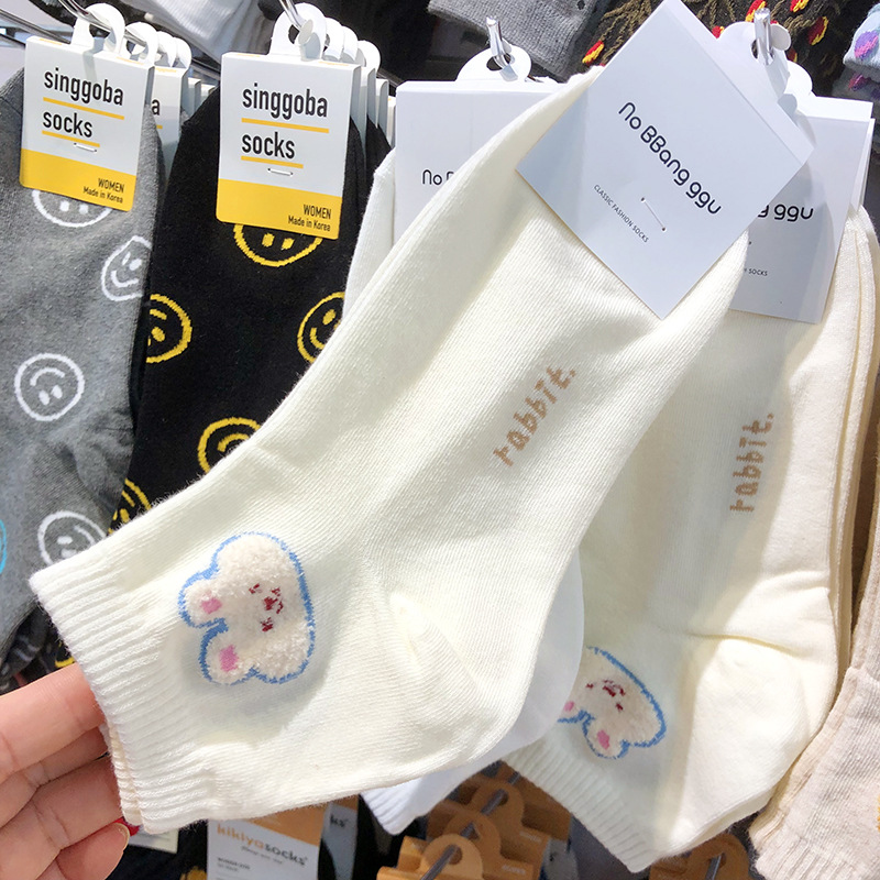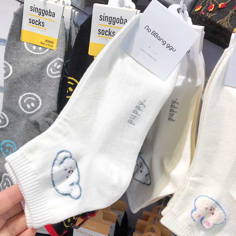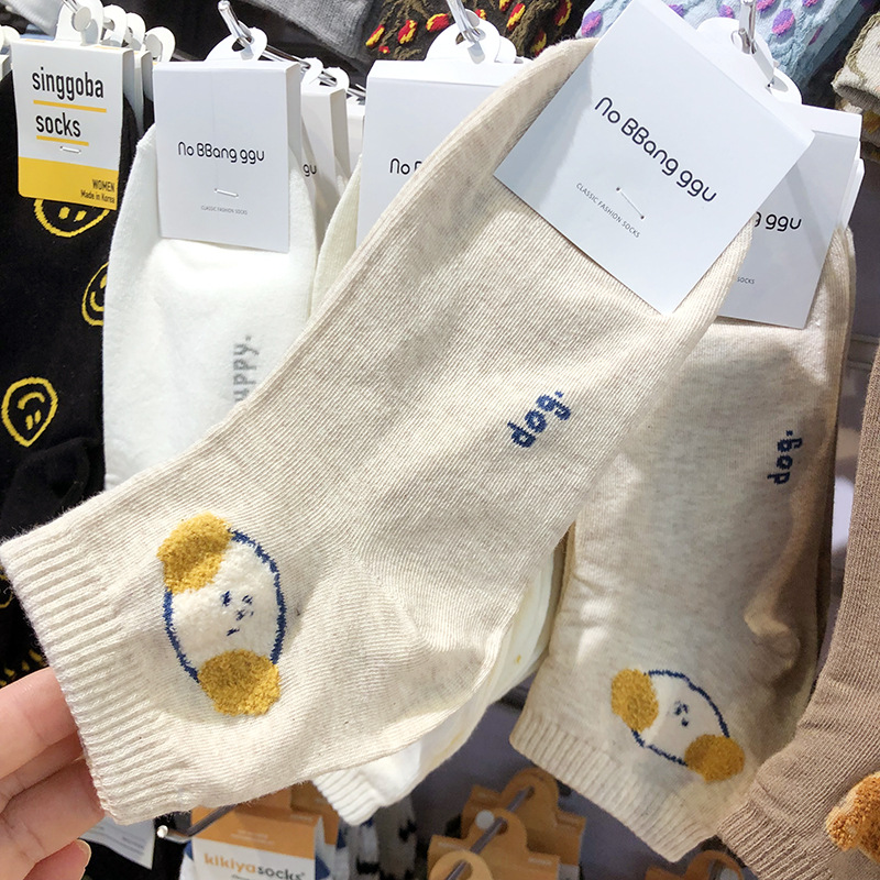 한국 수입한 동대문 양말 귀여운 뒤집기 만화 개 머리 여아 양말 낮은 허리 짧은 튜브 빗질면 양말스토어 가기
