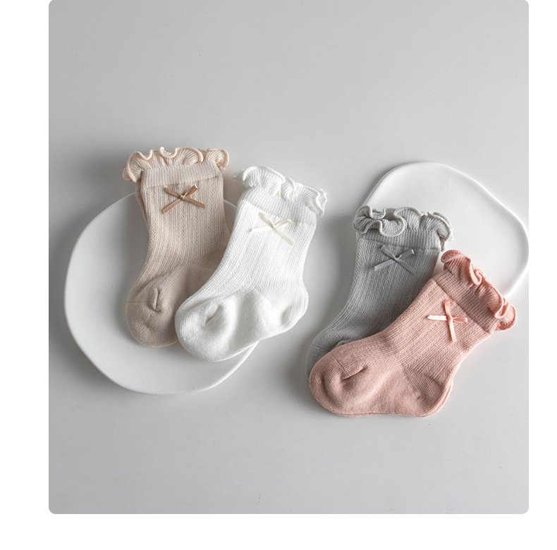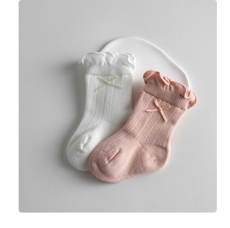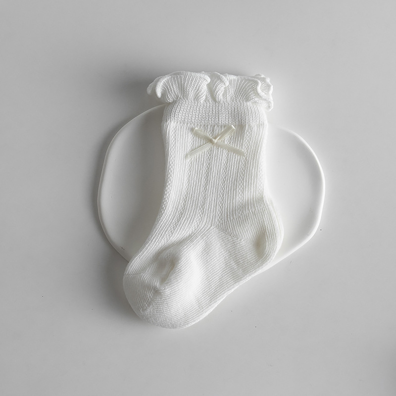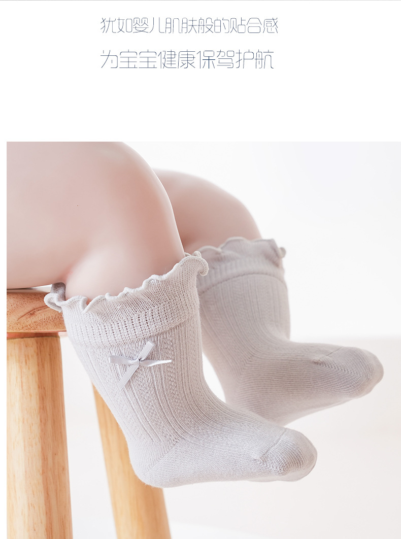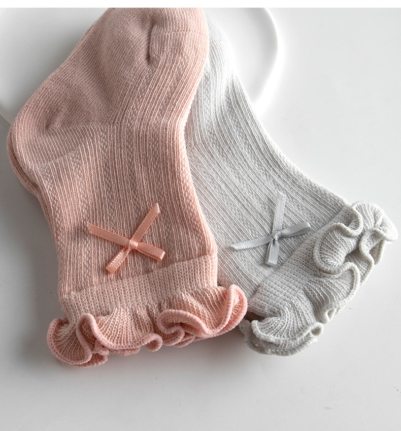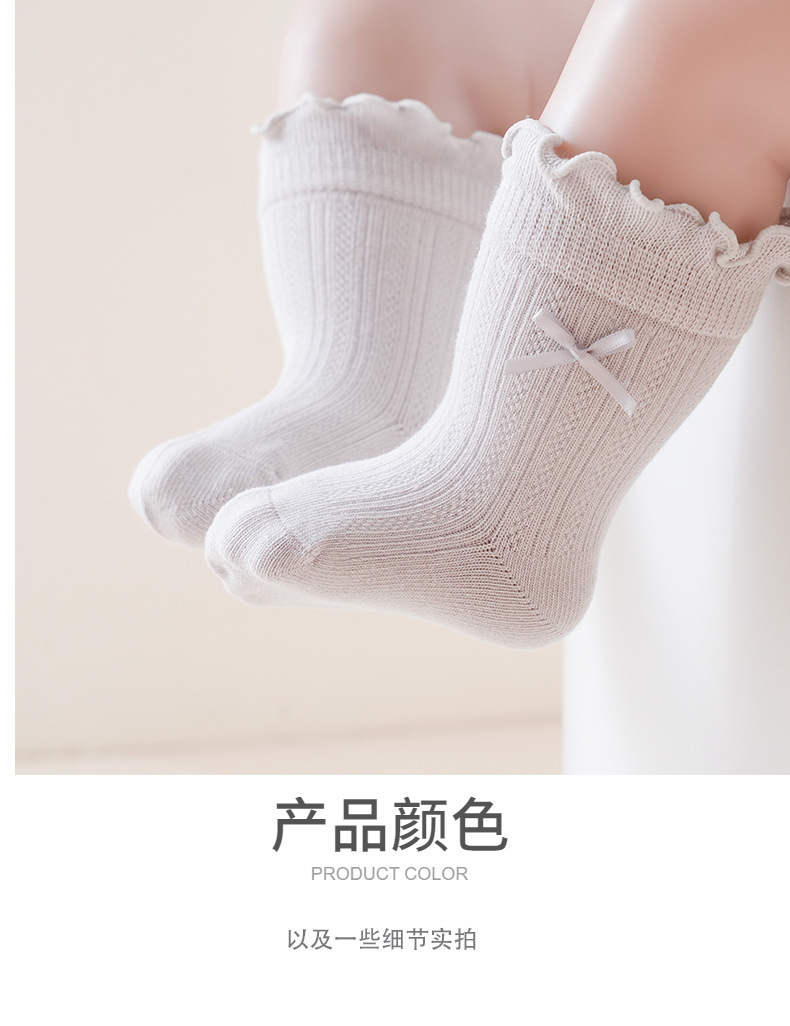 宝宝日系泡泡口中筒袜春夏薄款网眼女棉袜甜美蝴蝶结跨境婴儿袜子